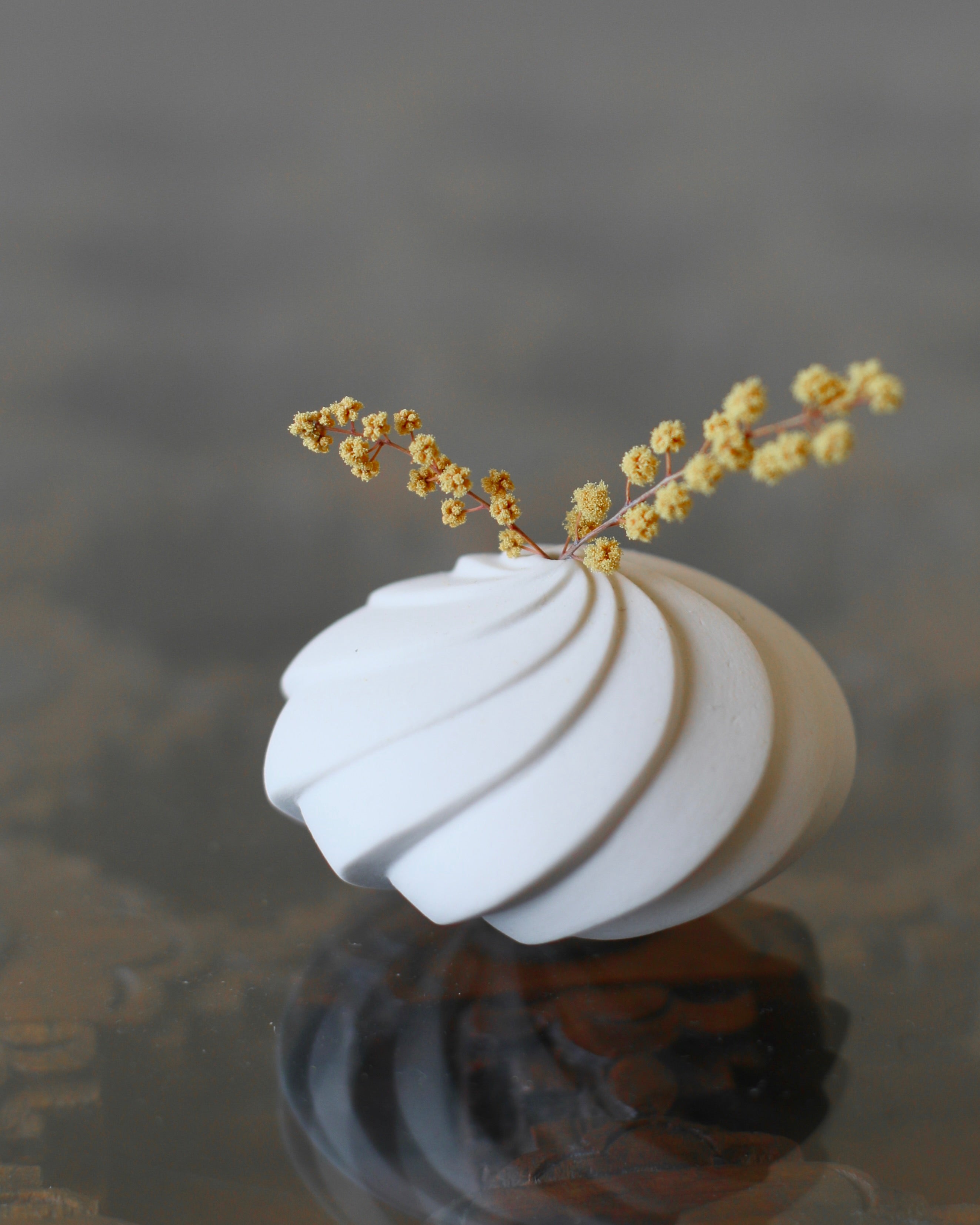 Hand thrown on the wheel Masako's beautiful small nest vase's have a smooth surface, created by mixing glaze into porcelain and polishing. Inspired by nature and the movements within it each piece is then hand carved with soft lines, giving them unique yet subtle character.