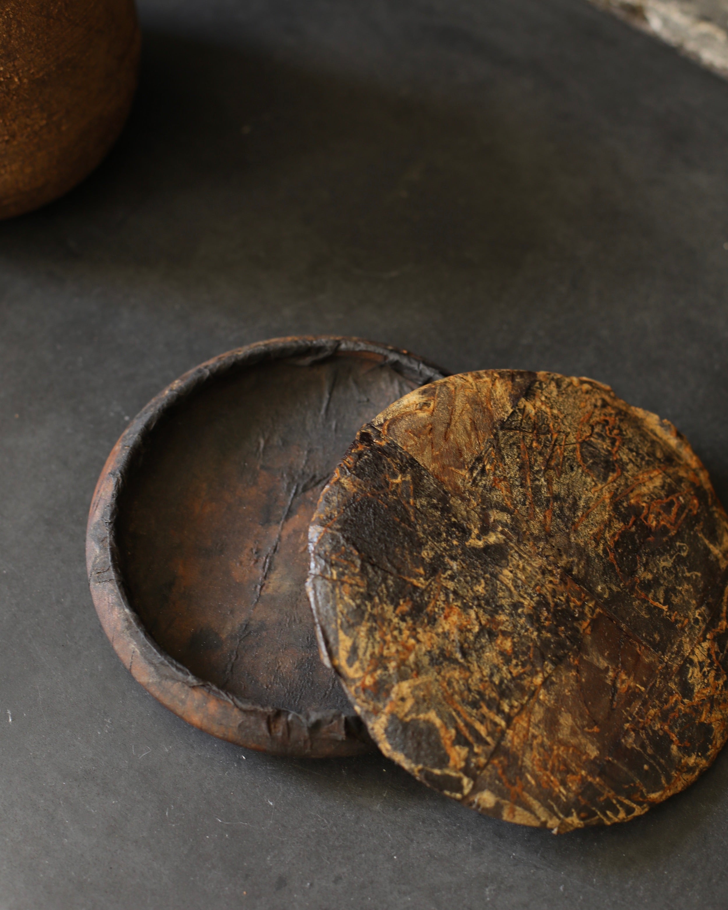 The essence of artist Masami Tokuda’s powerful work is trusting intuition and listening to the senses. Each piece is crafted by hand and completely one-of-a-kind. Tokuda applies layers of lacquer to achieve intriguing textures, honouring the natural characteristics of the wood. A clear dedication to traditional Japanese materials, he applies kiurushi, kurourushi, shirourushi, sukiurushi, jinoko and tonoko to his wood works- various types of lacquers and clays. Tokuda carefully dyes the wood, using natural plant dyes such as indigo, iron and persimmon tannin. This multidisciplinary, layered process results in unique surfaces that transform into true works of art.