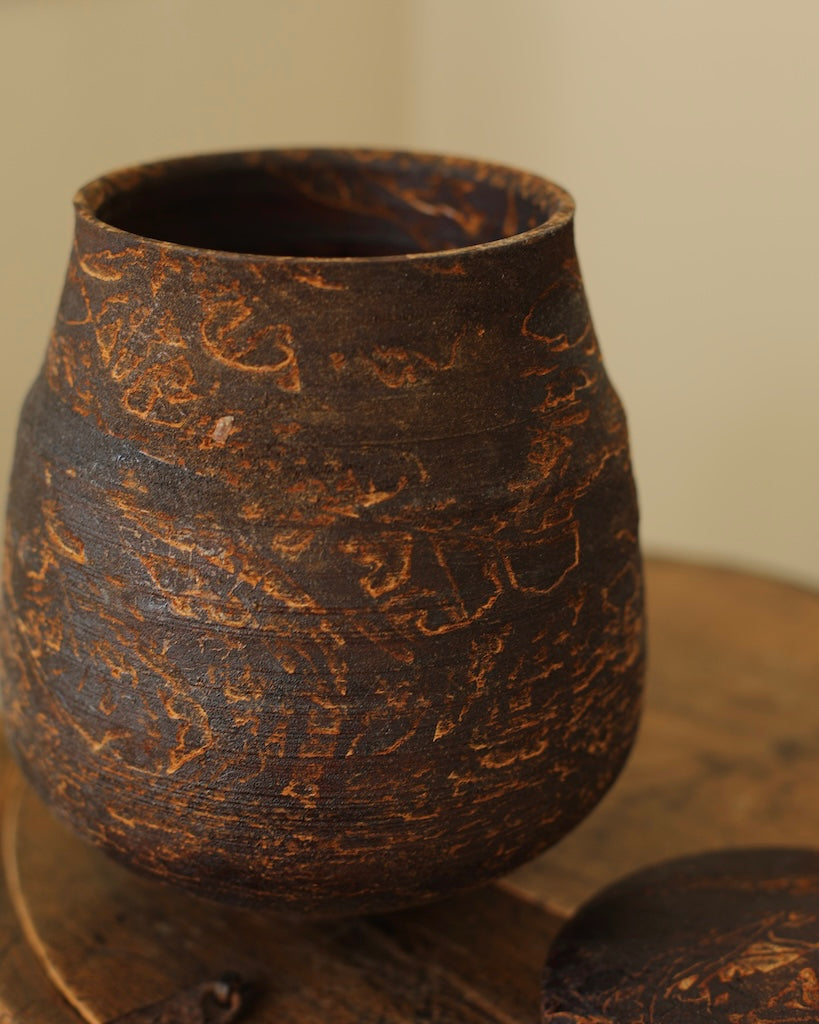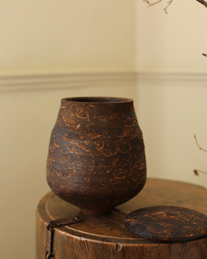 The essence of artist Masami Tokuda’s powerful work is trusting intuition and listening to the senses. Each piece is crafted by hand and completely one-of-a-kind. Tokuda applies layers of lacquer to achieve intriguing textures, honouring the natural characteristics of the wood. A clear dedication to traditional Japanese materials, he applies kiurushi, kurourushi, shirourushi, sukiurushi, jinoko and tonoko to his wood works- various types of lacquers and clays. Tokuda carefully dyes the wood, using natural plant dyes such as indigo, iron and persimmon tannin. This multidisciplinary, layered process results in unique surfaces that transform into true works of art.