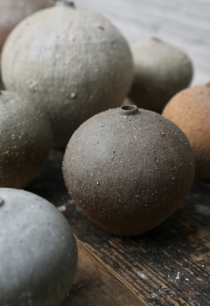 Originally inspired by English and French stoneware jars, Mizuyo began creating their miniature forms, gradually changing their designs and surface decoration.
