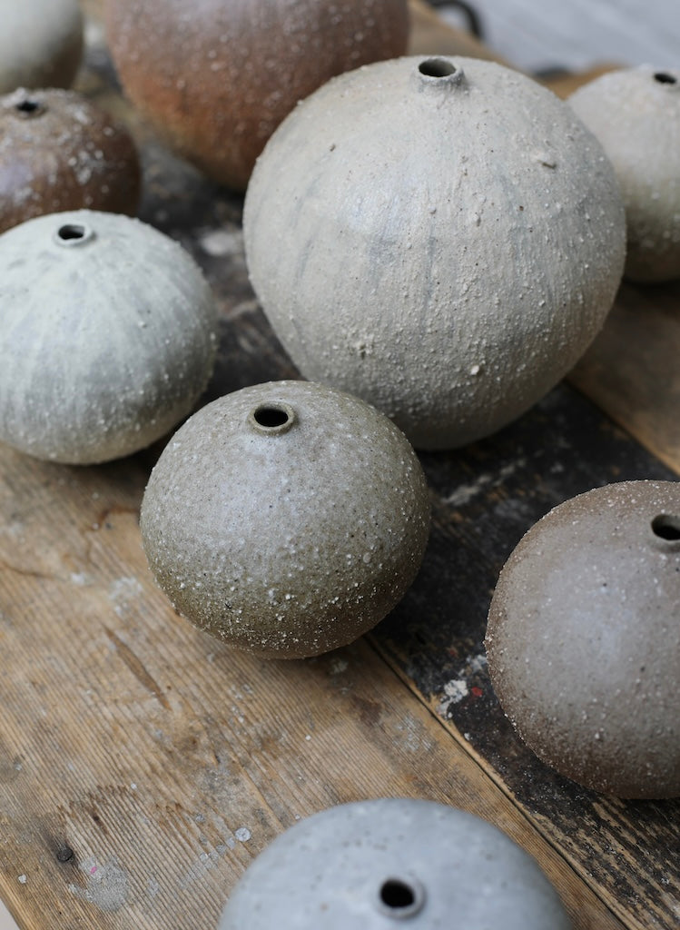 Originally inspired by English and French stoneware jars, Mizuyo began creating their miniature forms, gradually changing their designs and surface decoration.