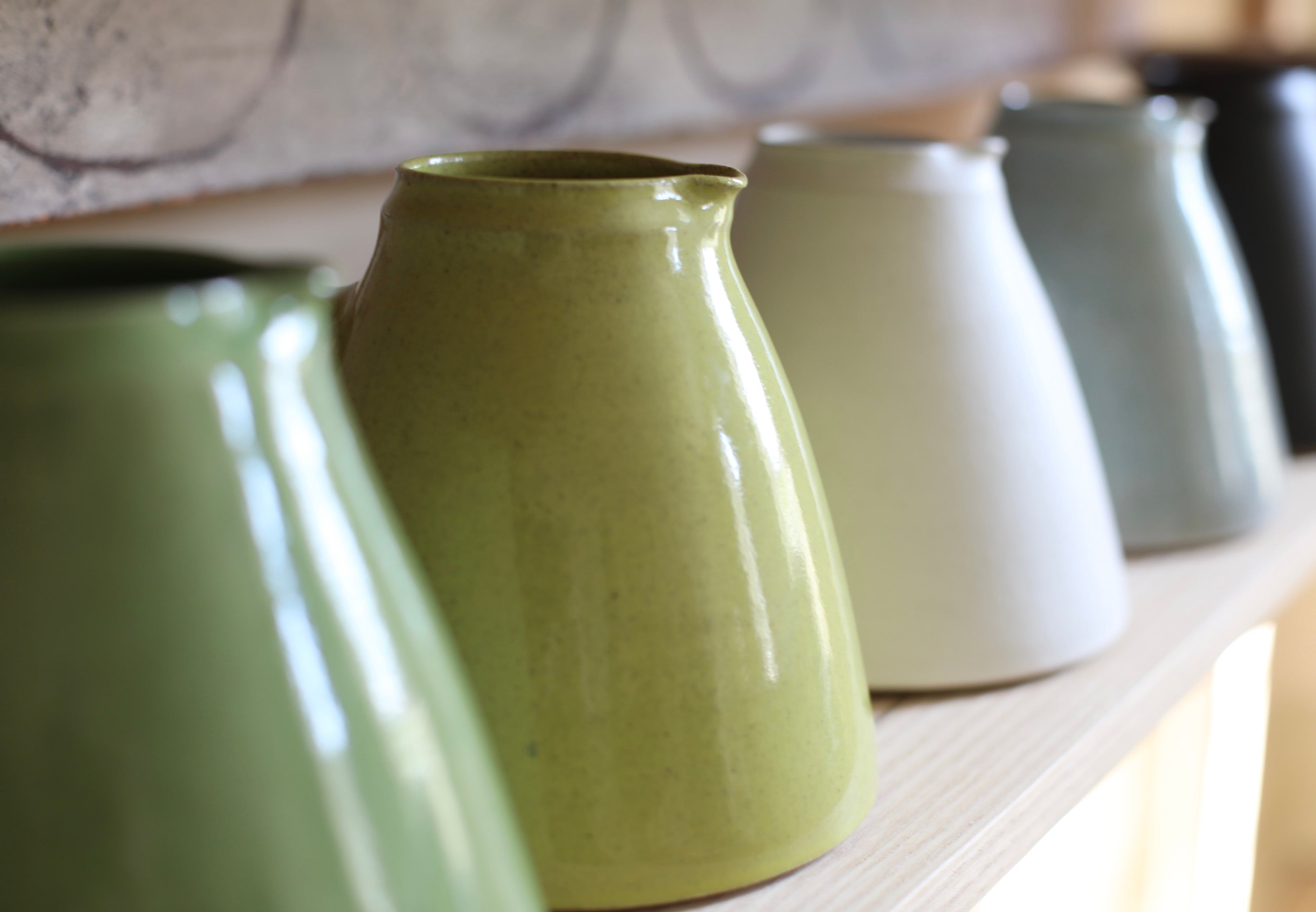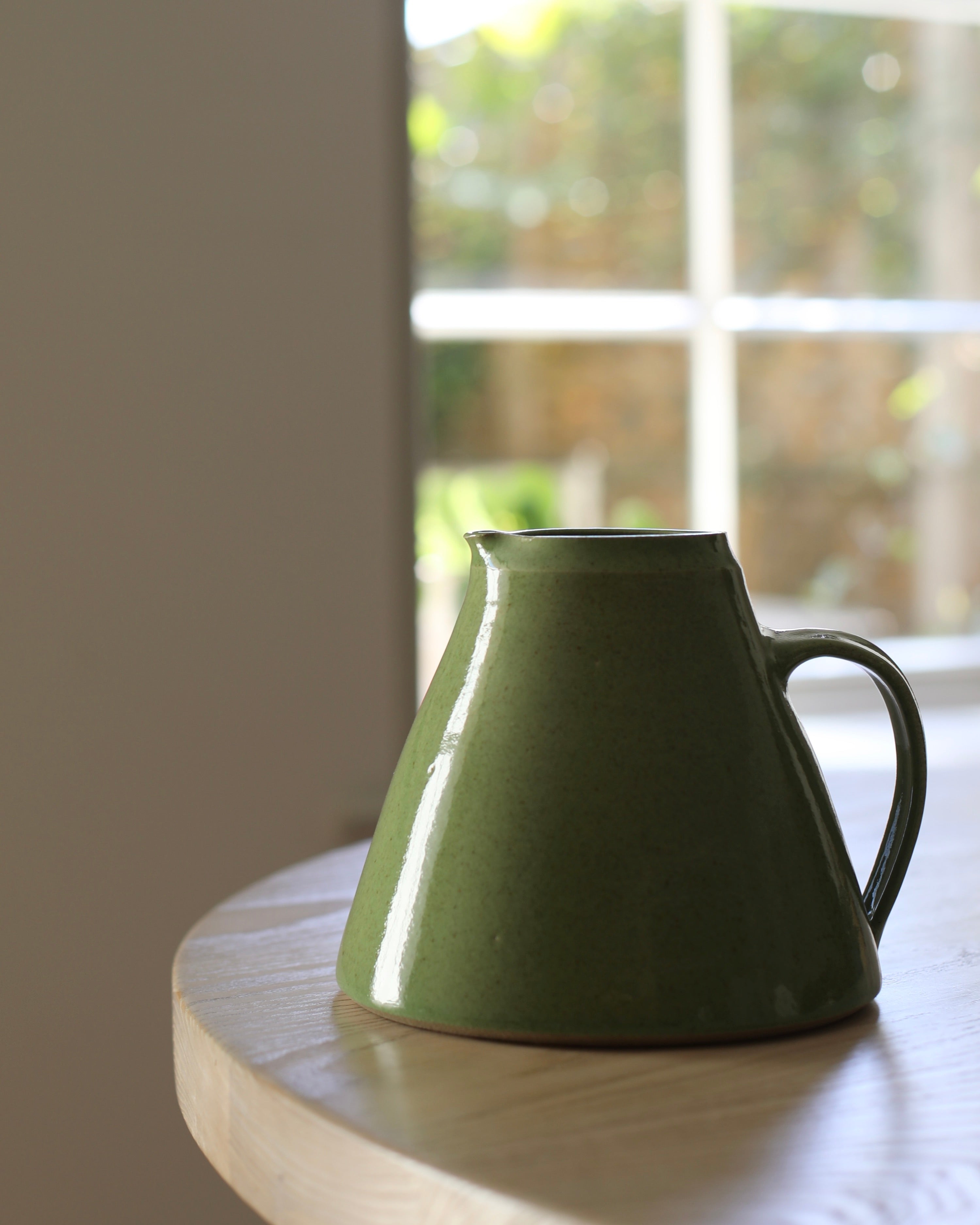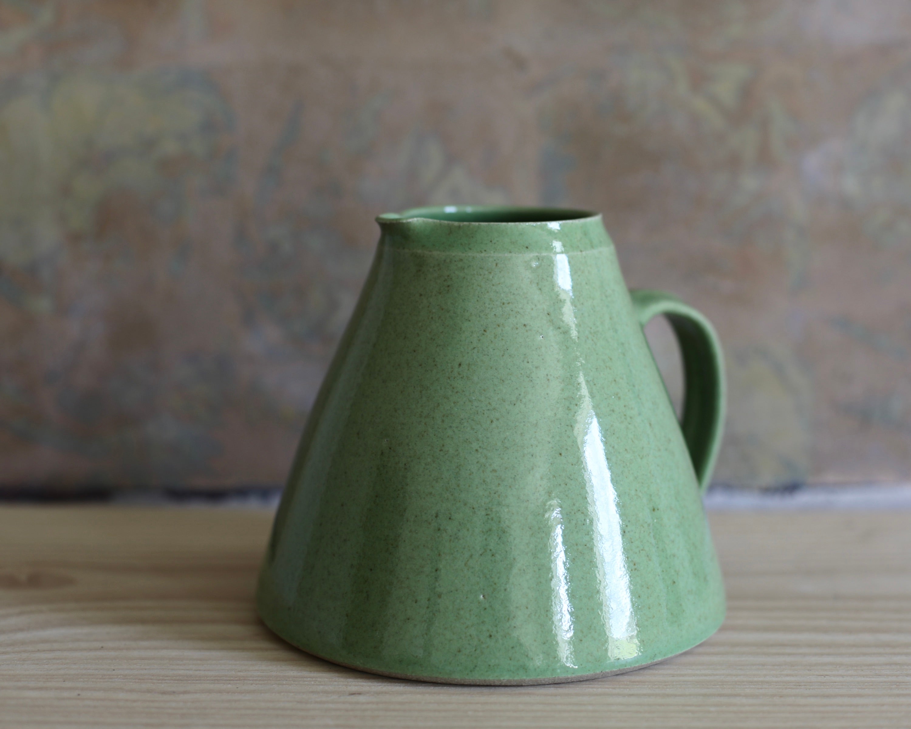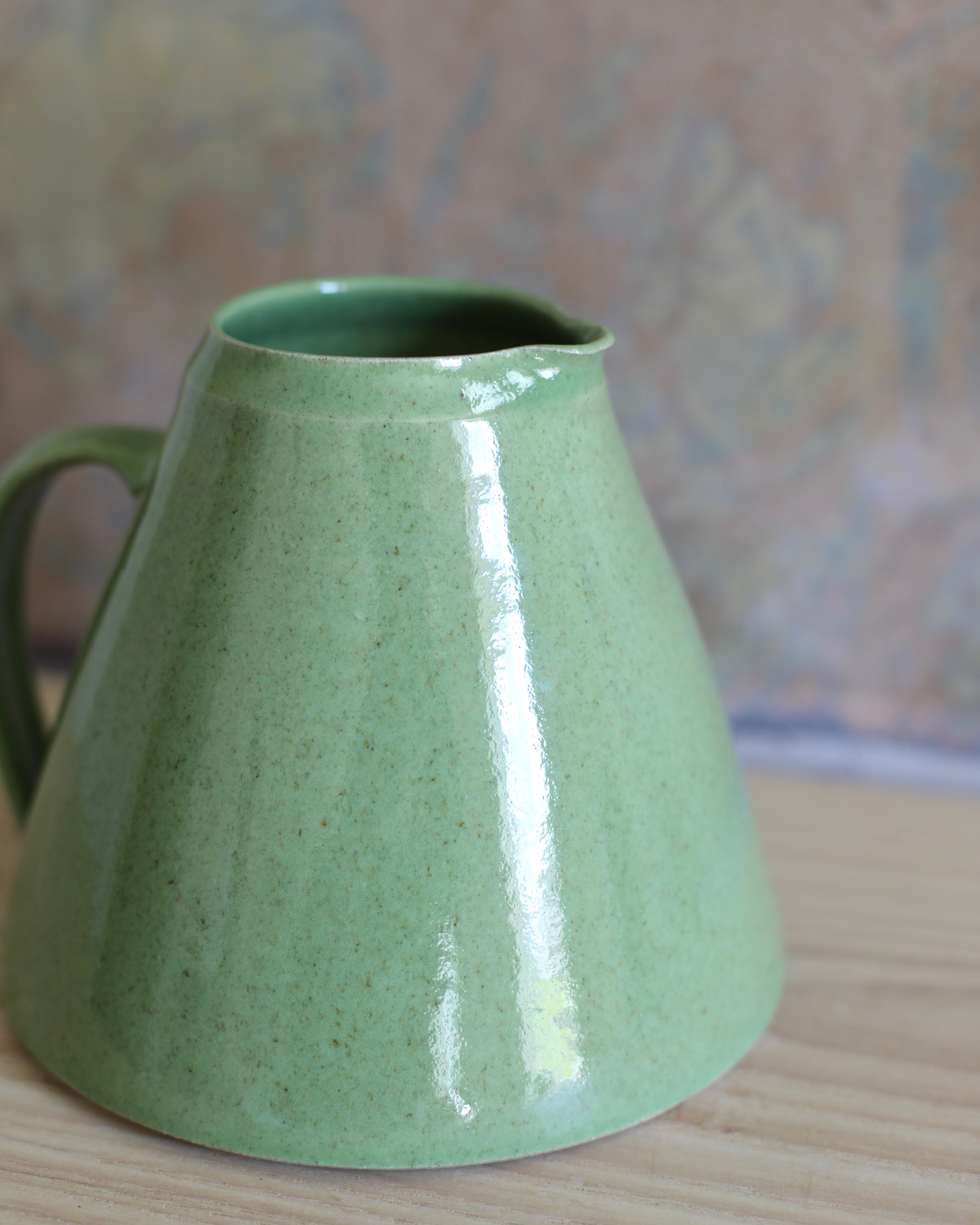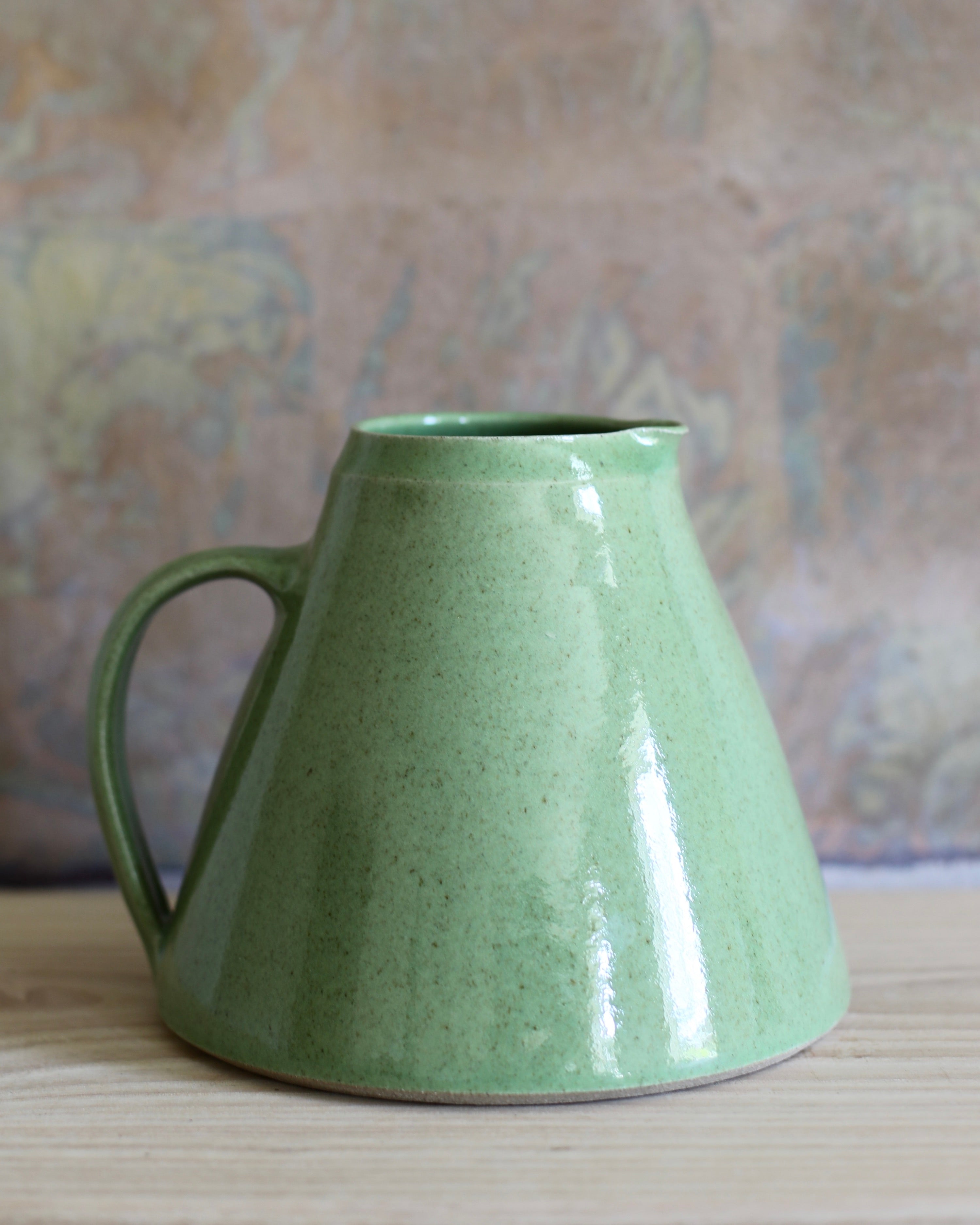 Nicola Tassie Wide-bellied jug in Glossy Fleck Grass Green