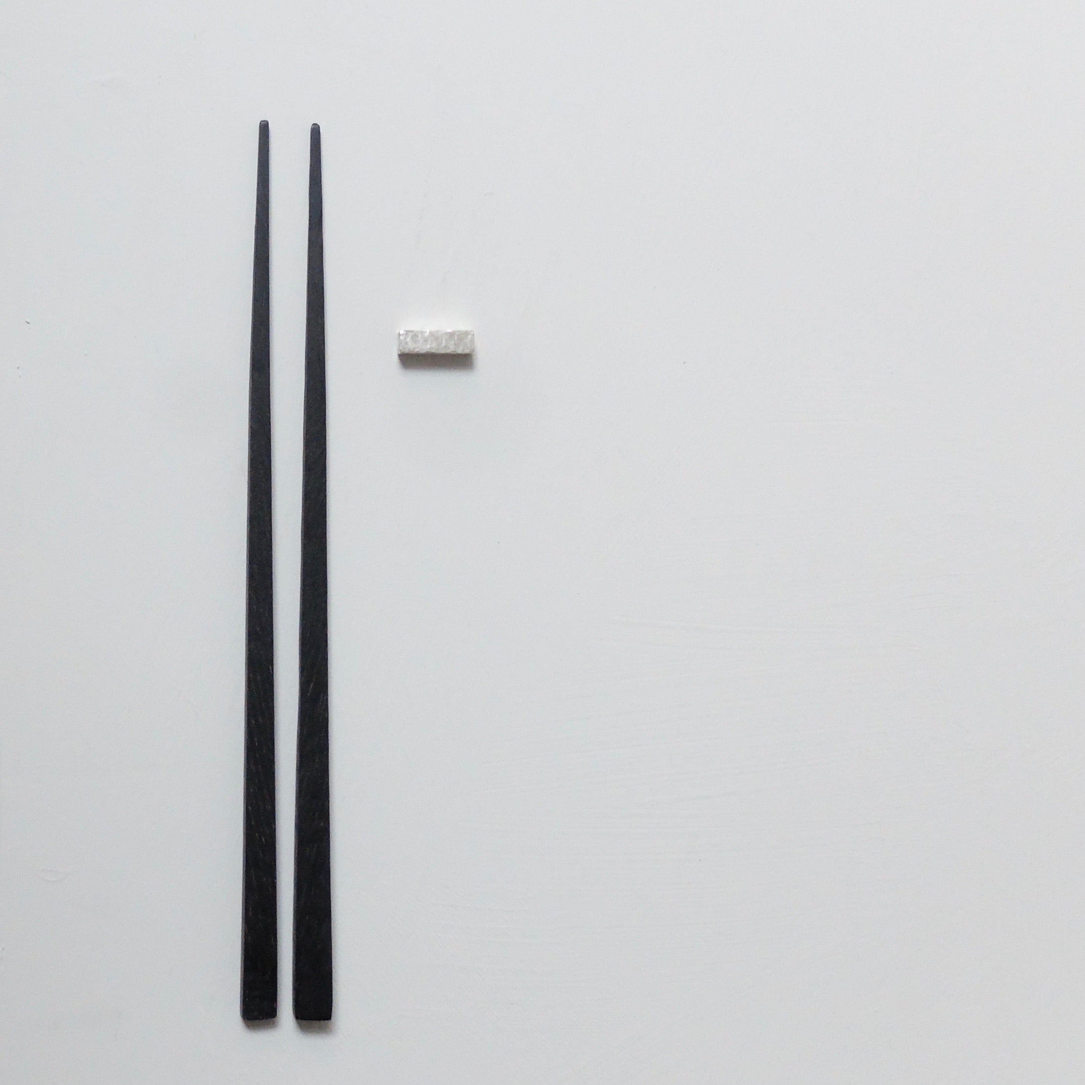Dark wooden thin chopsticks with silver rest.