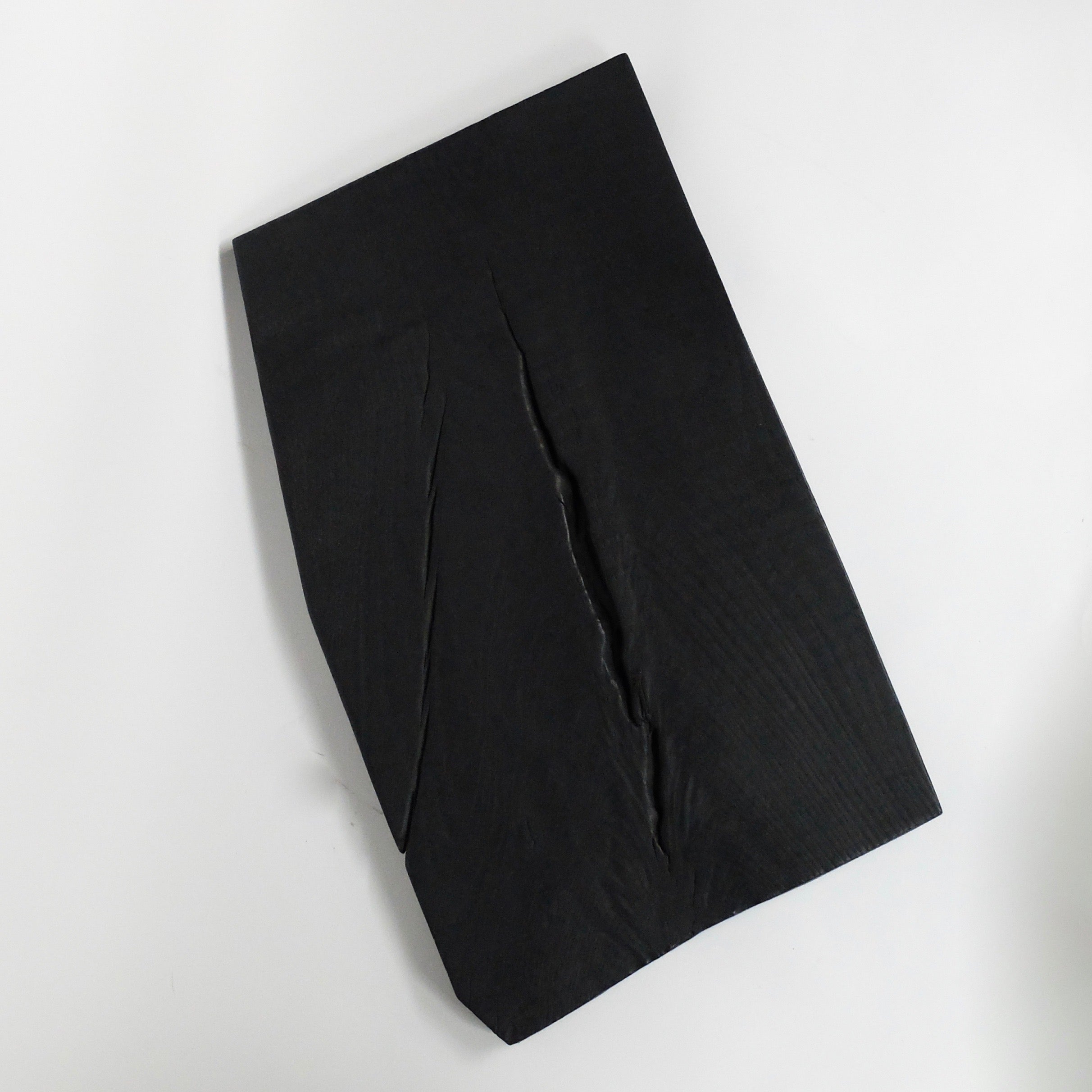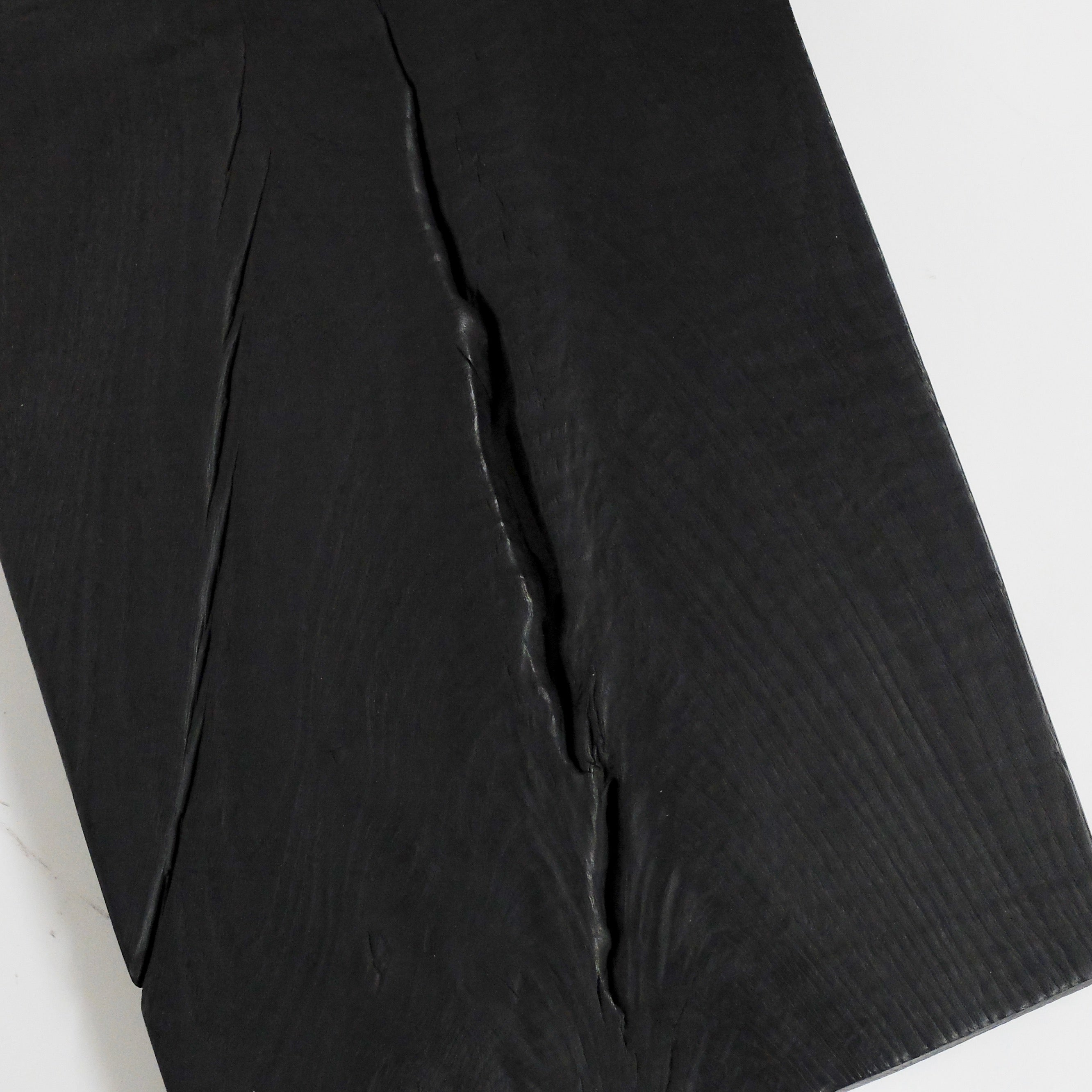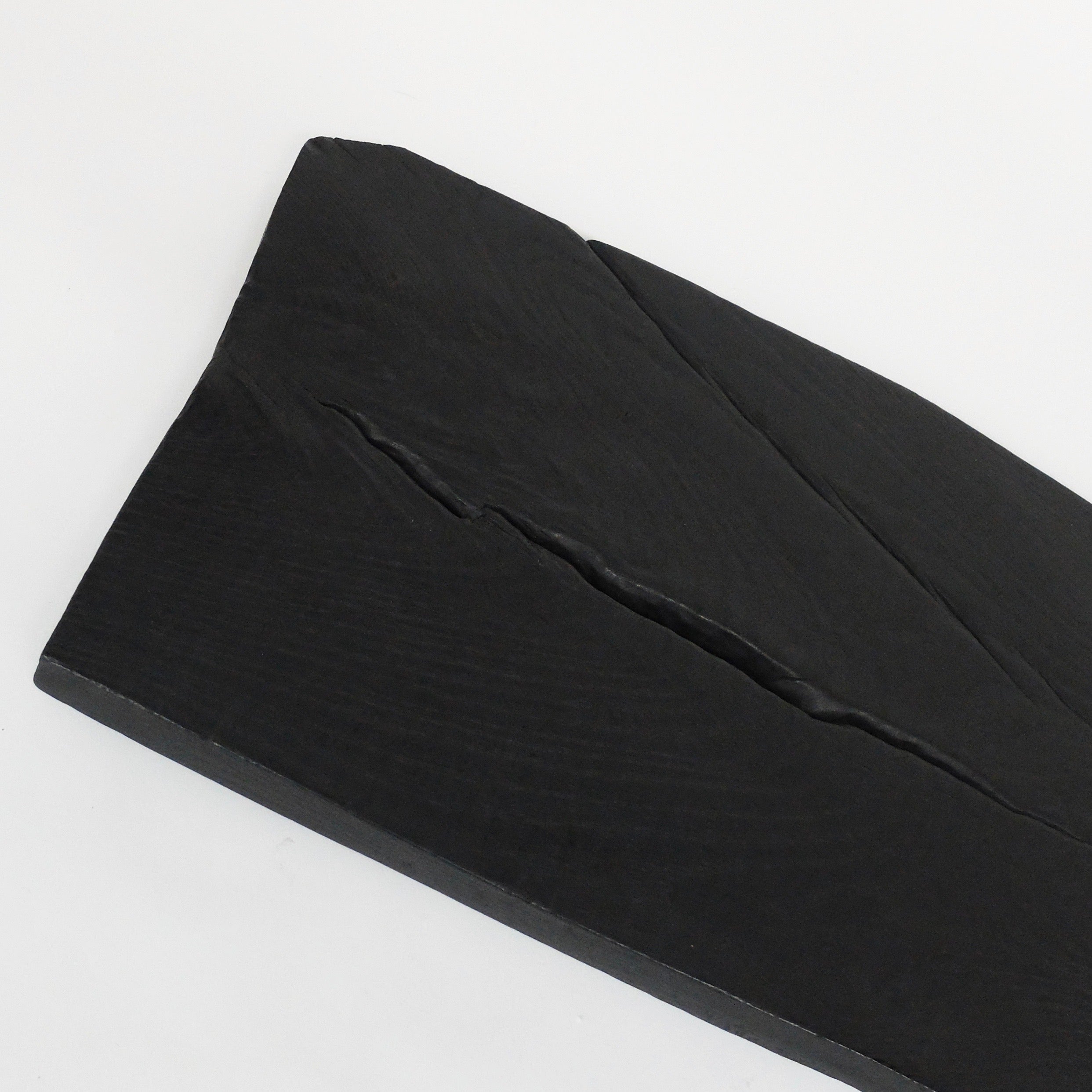 This striking altar piece by Pacha Designs demonstrates the power of a simple material uplifted to its full potential. The naturally shaped English oak has been burnt and charred, giving it its beautiful rich dark colour, highlighting the grain and texture of the wood and the organic undulation of the woods edge. The feet’s circle and square design counterbalance each other, and seem to lead to a meeting of the ancient and the modern that underpin this piece’s ingenuity.
