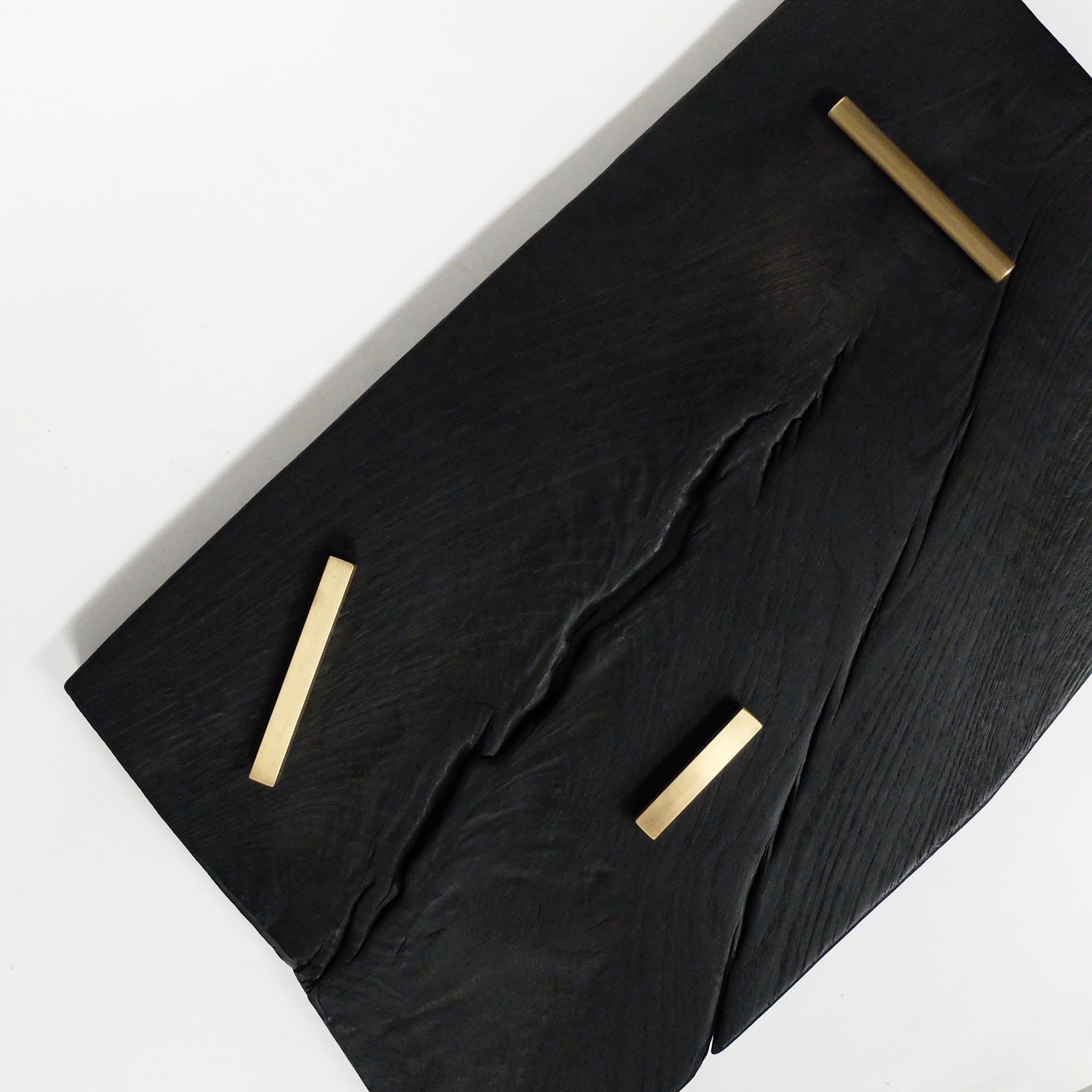 Pacha Design Organic tray with scars & cracks in Burnt English Oak with brass feet 26