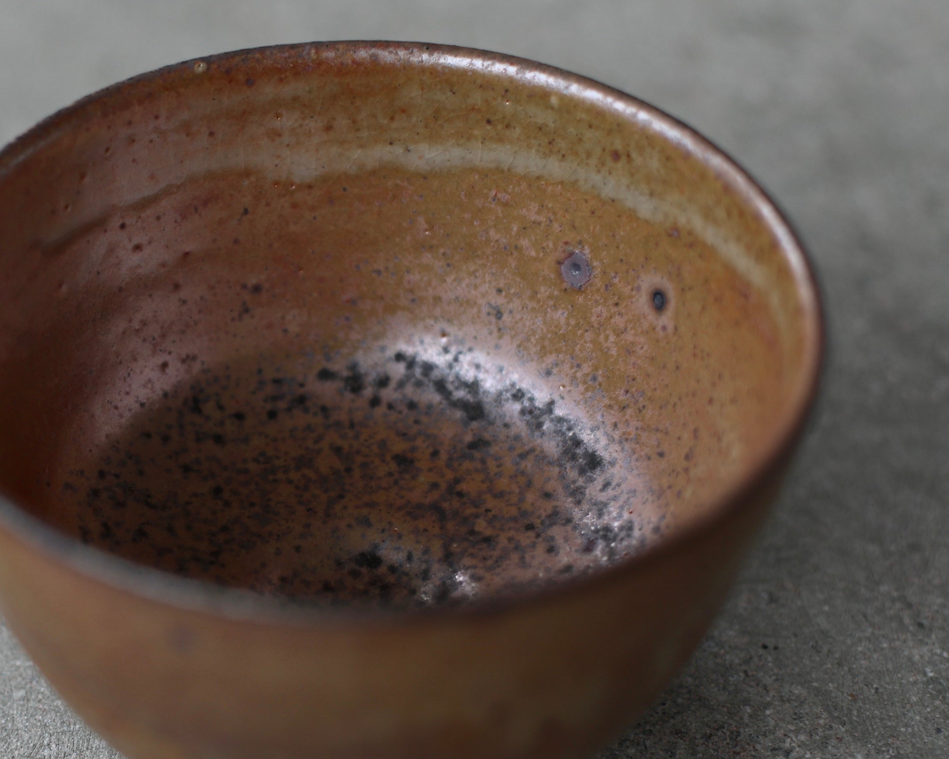 Crafted from Cornish stoneware, this larger-sized chawan features a golden Shino glaze, enriched with a heavy amount of ash from the Anagama firing. The result is a dynamic interplay of bright natural tones, with subtle hints of matte and metallic shine that highlight the beauty of the glaze. Each piece reflects the raw, organic elegance of the firing process, making it a unique and functional work of art.