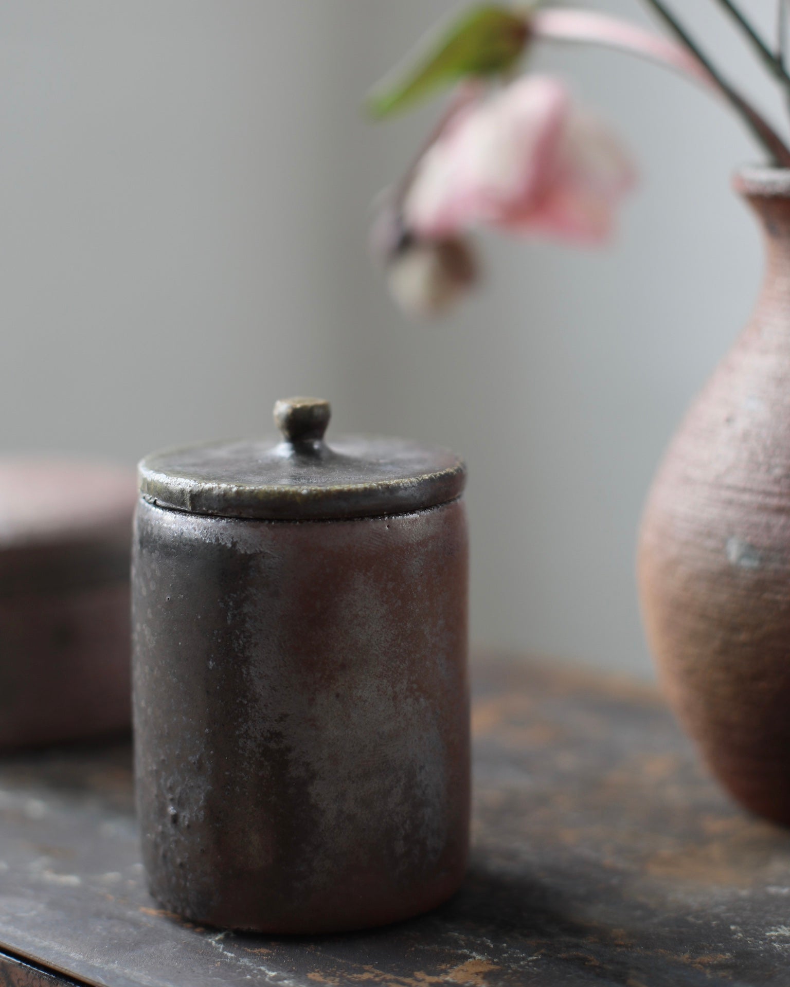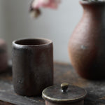 Crafted from Cornish stoneware, this container features a Shino-glazed exterior that highlights the natural tones and textures of the clay. The dark Shino liner adds a subtle contrast, enhancing the organic beauty of each piece.