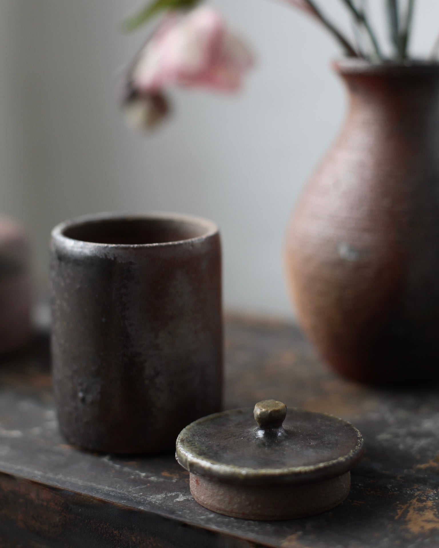 Working together under the name Popalini & Jezando, Pop Wilkinson and Jez Anderson make collaboratively designed pots, with a particular focus on teaware. They take influence from the traditional pottery of North Devon, which is where they are both from, and also from the subtle understated forms they admired whilst researching wood-firing in Japan