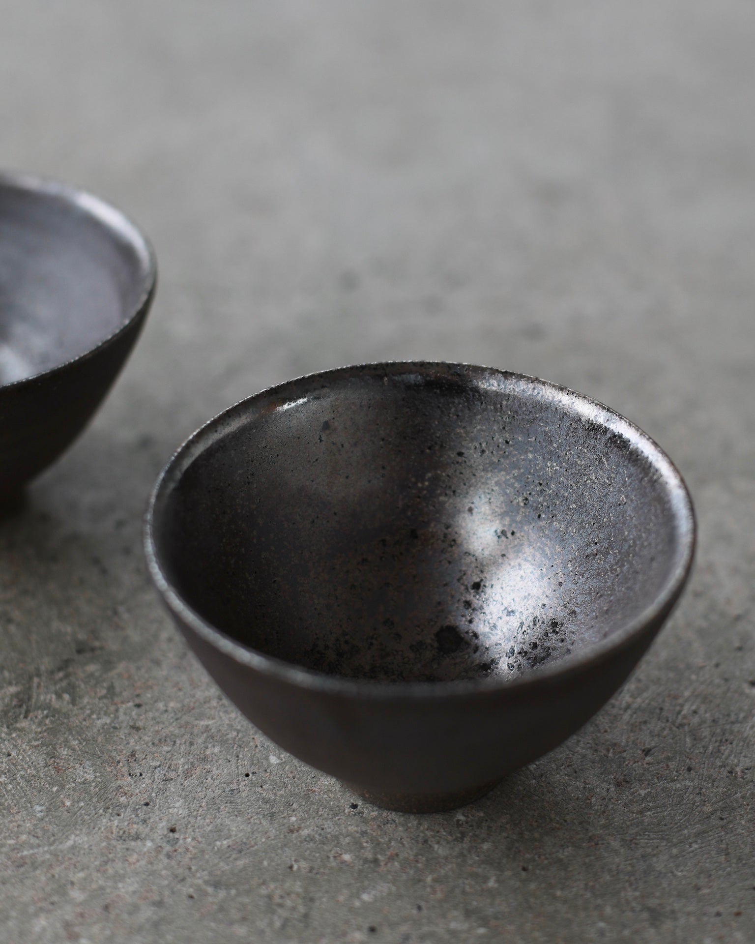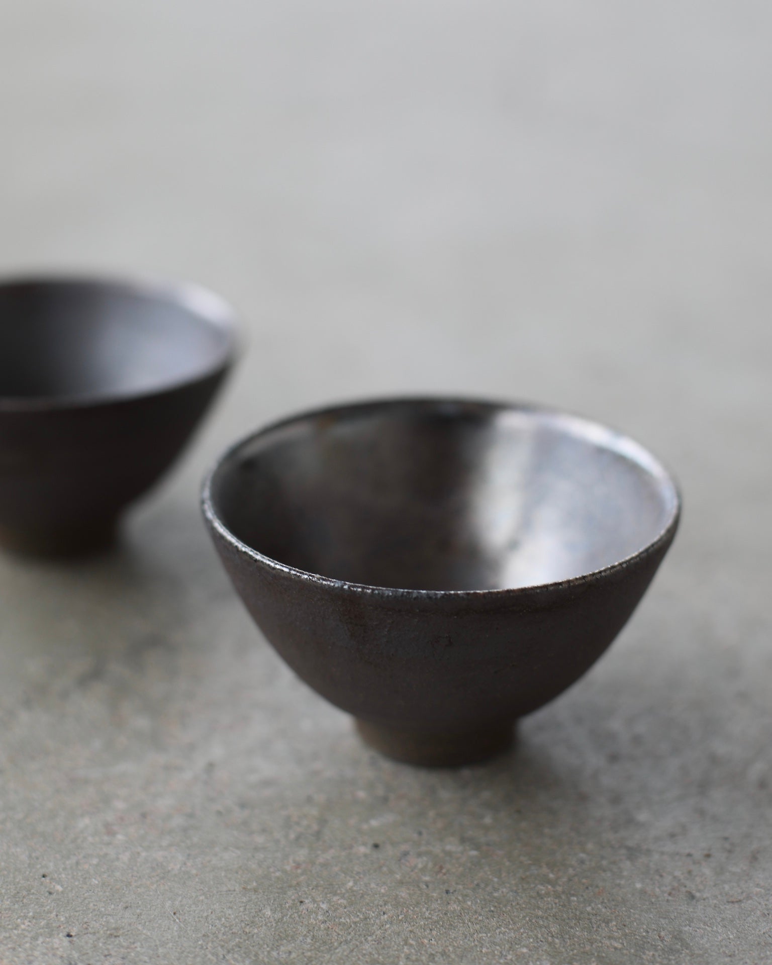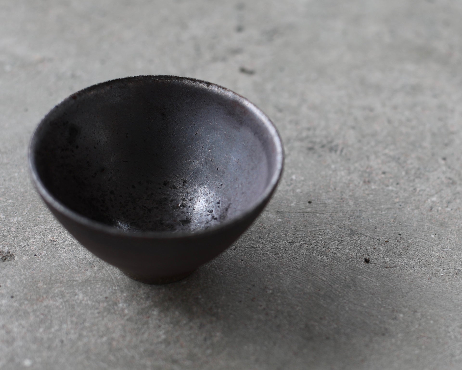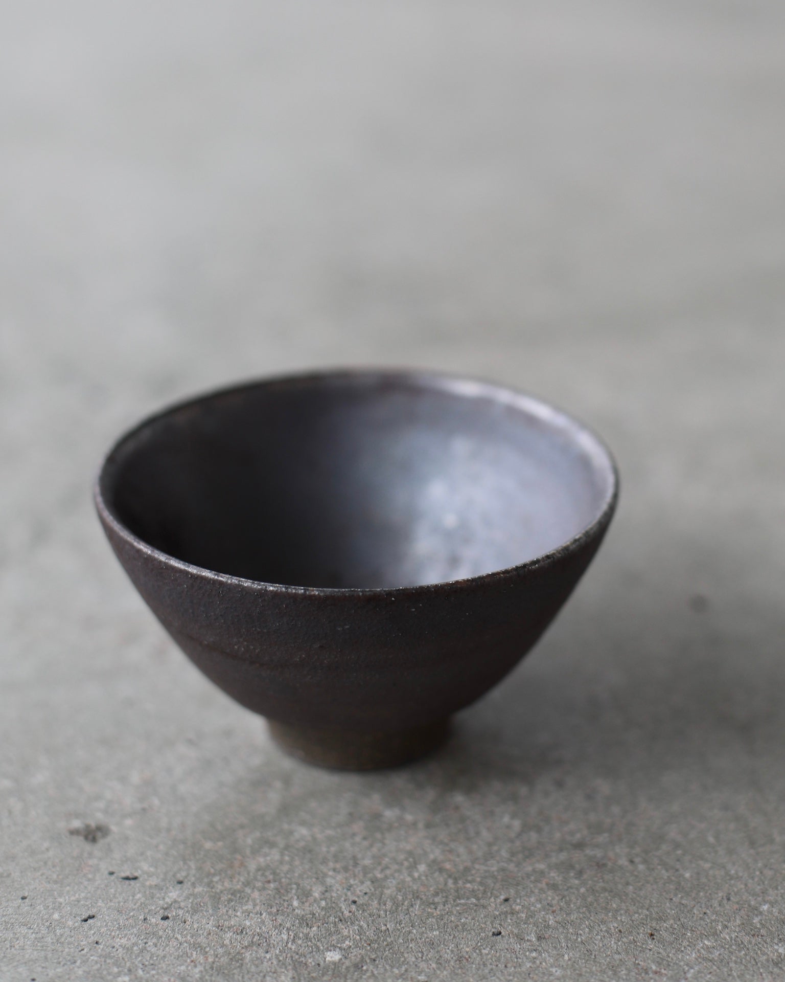 Crafted from Cornish stoneware, this footed bowl features an iron-wash exterior, enriched with subtle ash deposits that catch the light with a gentle shimmer. Inside, a dark Shino liner with a metallic effect contrasts beautifully with the matte exterior