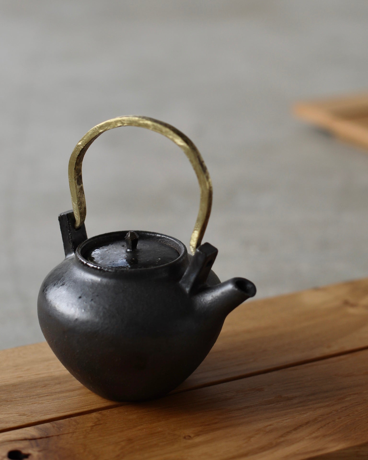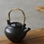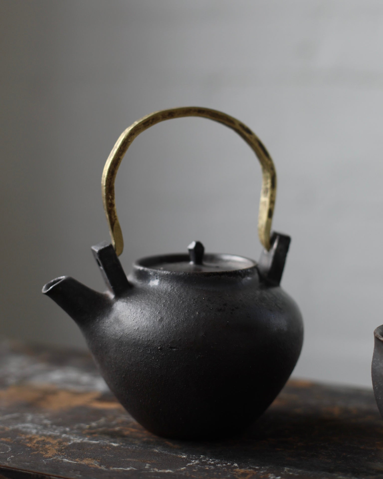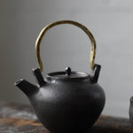 Crafted from Cornish stoneware, this teapot features a dark iron-wash exterior. Inside, a dark Shino liner provides a rich contrast. Fired in the Anagama kiln, the teapot is complemented by a brass handle, adding an elegant touch to its natural, earthy aesthetic. The piece radiates timeless charm and craftsmanship, perfect for both function and display.