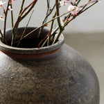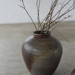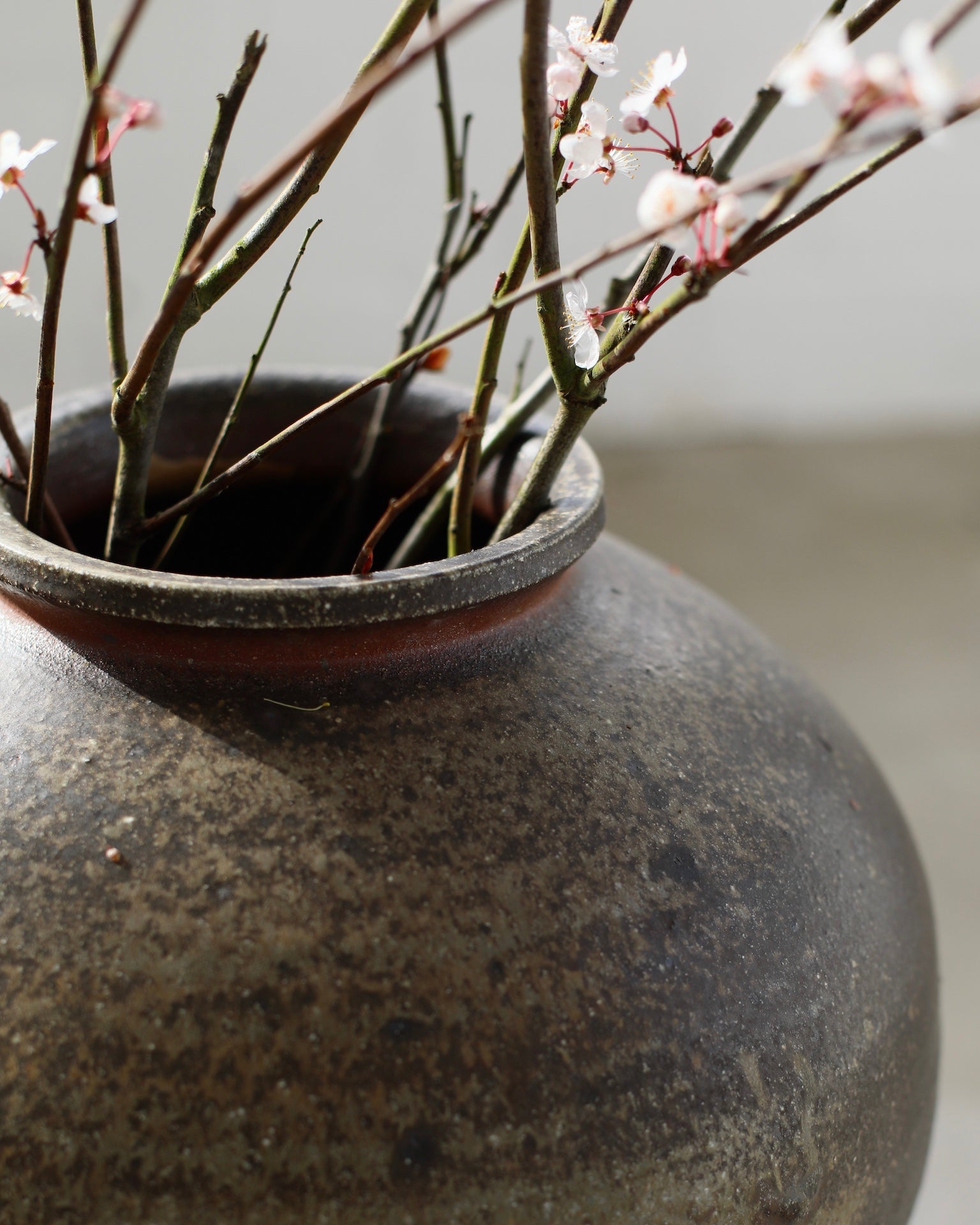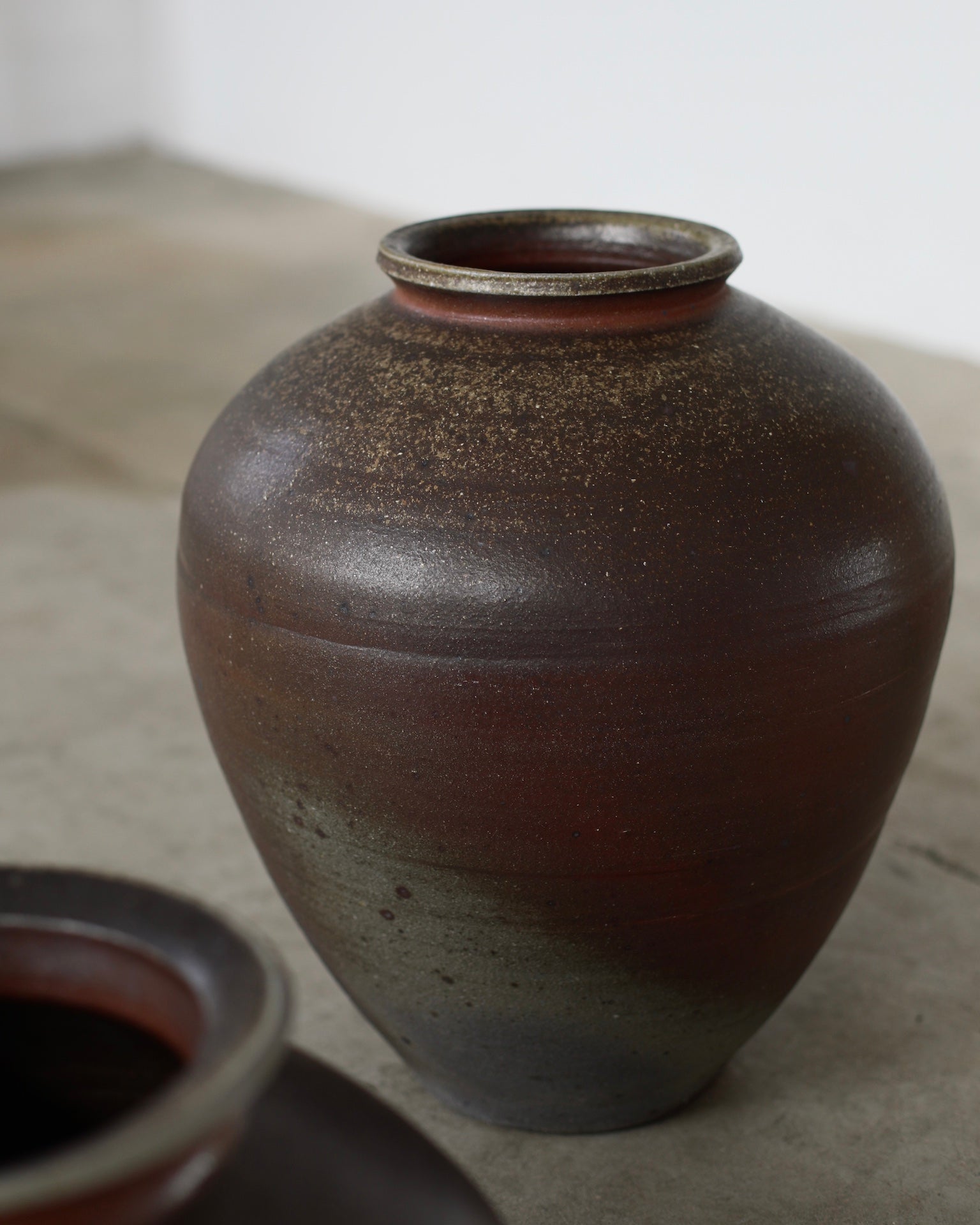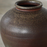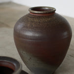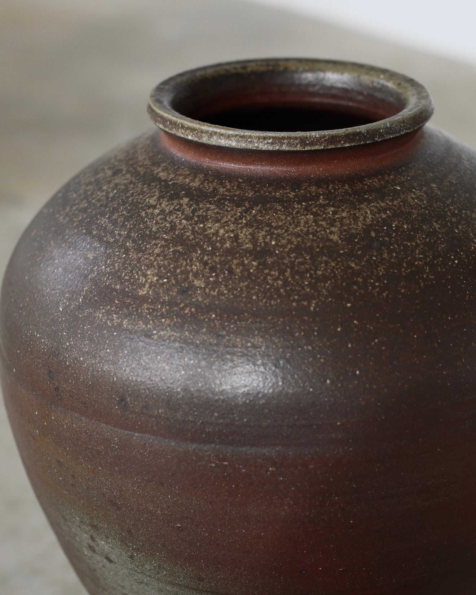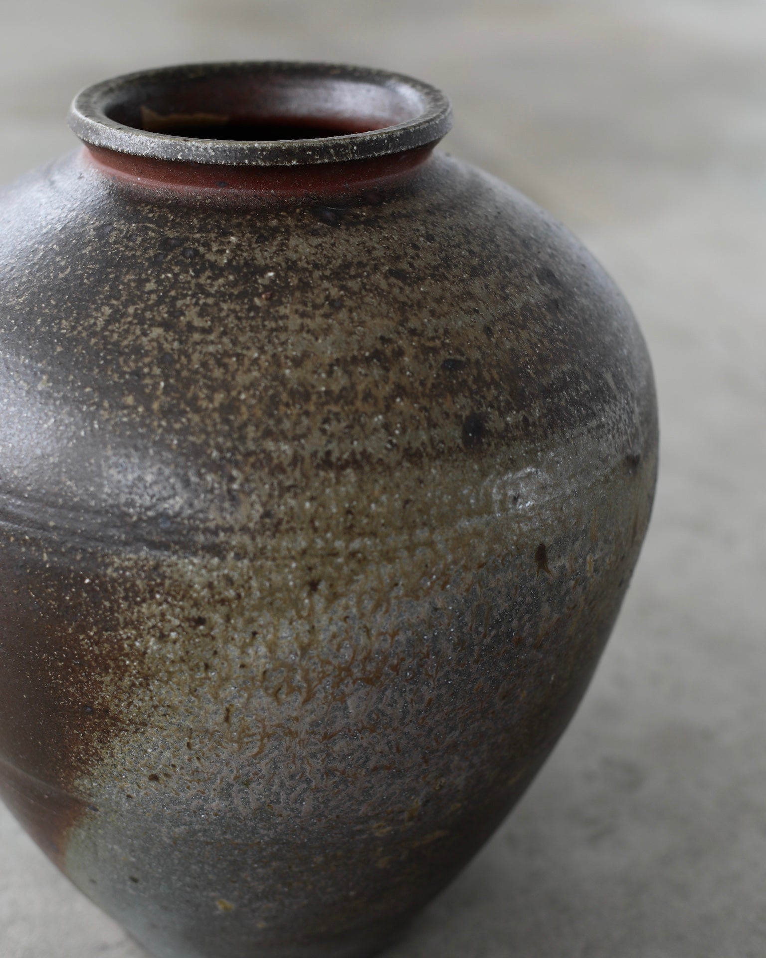 This striking Tsubo jar, crafted from Cornish stoneware, showcases the beauty of an unglazed surface adorned with heavy ash deposits from the Anagama firing process. The deep, earthy tones evoke a sense of natural elegance, with the jar’s large, round body that curves in towards the opening. The interplay of texture and form creates a harmonious balance between simplicity and depth, making this piece both timeless and captivating.