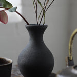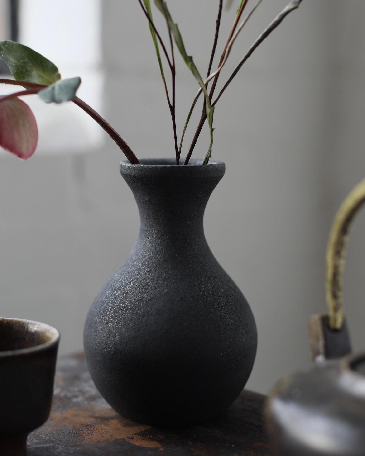 Crafted from unglazed Cornish stoneware and fired in the traditional Anagama kiln, this round vase evokes a subtle hourglass shape. The surface is a rich, deep earthy tone, embodying the natural beauty of the clay with an iron wash.