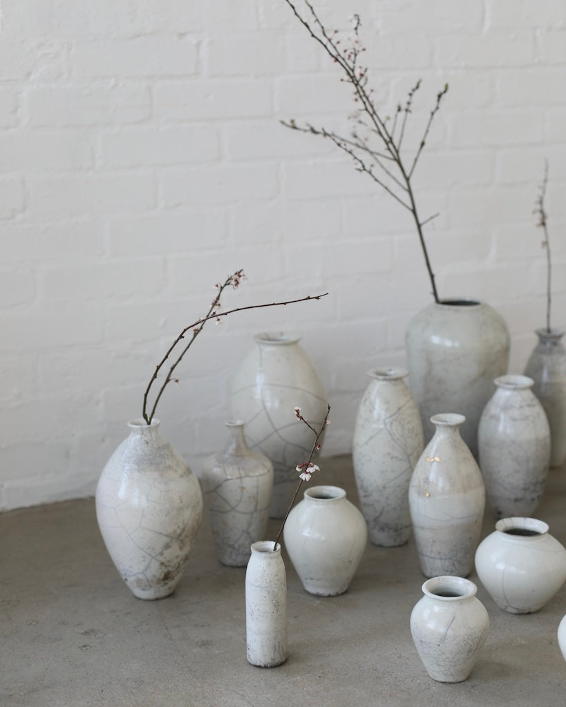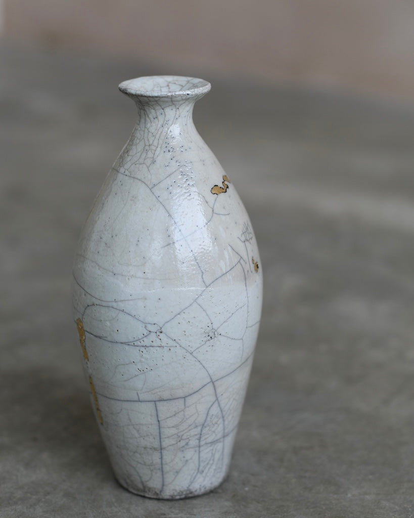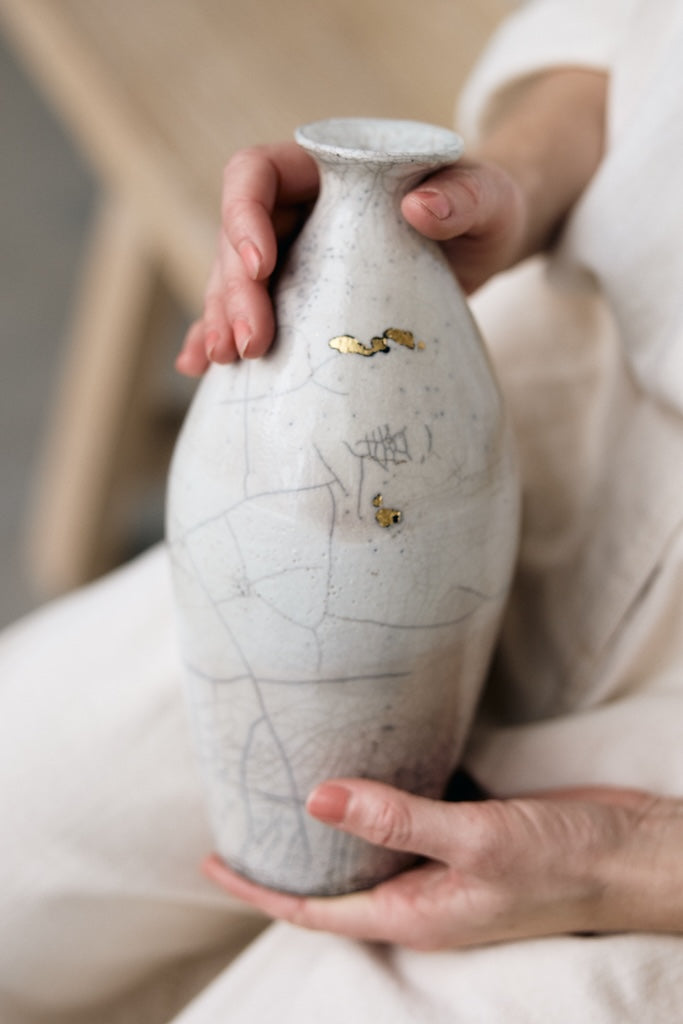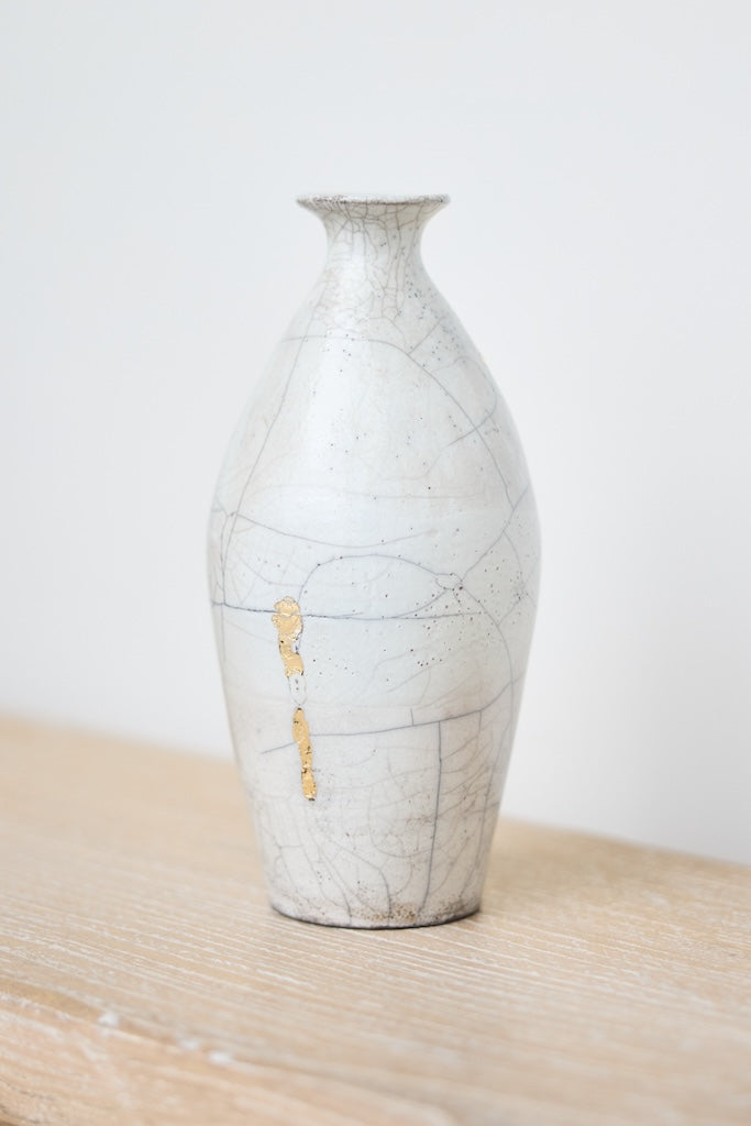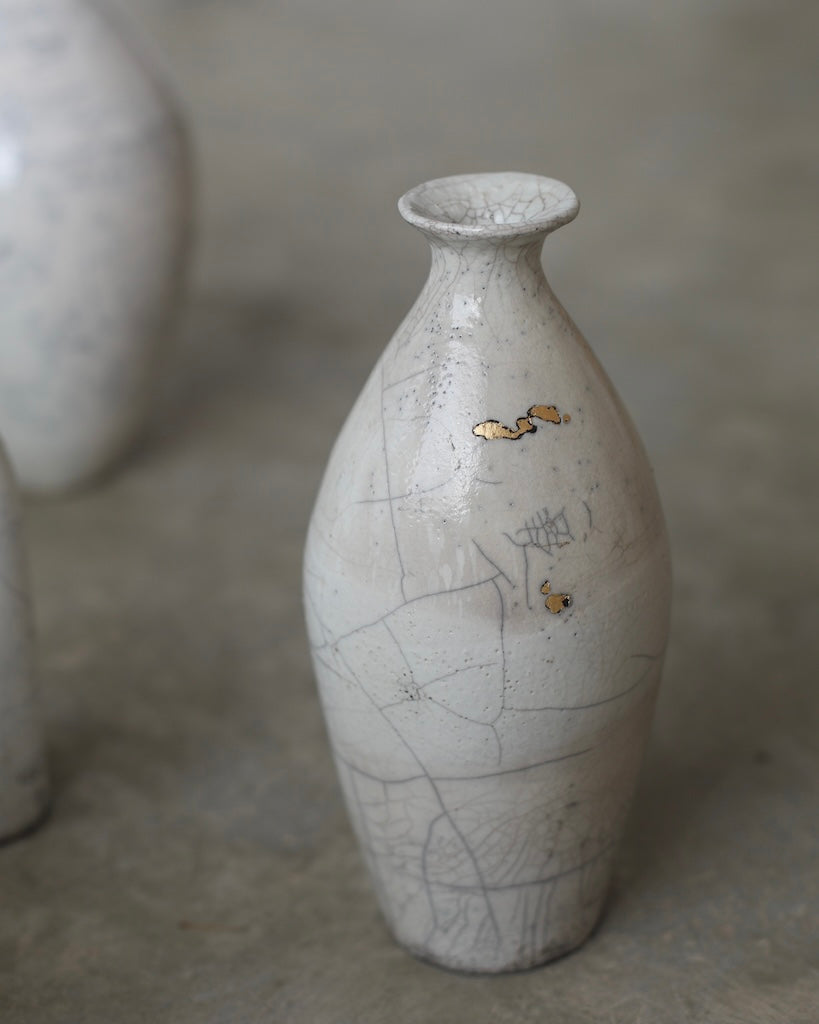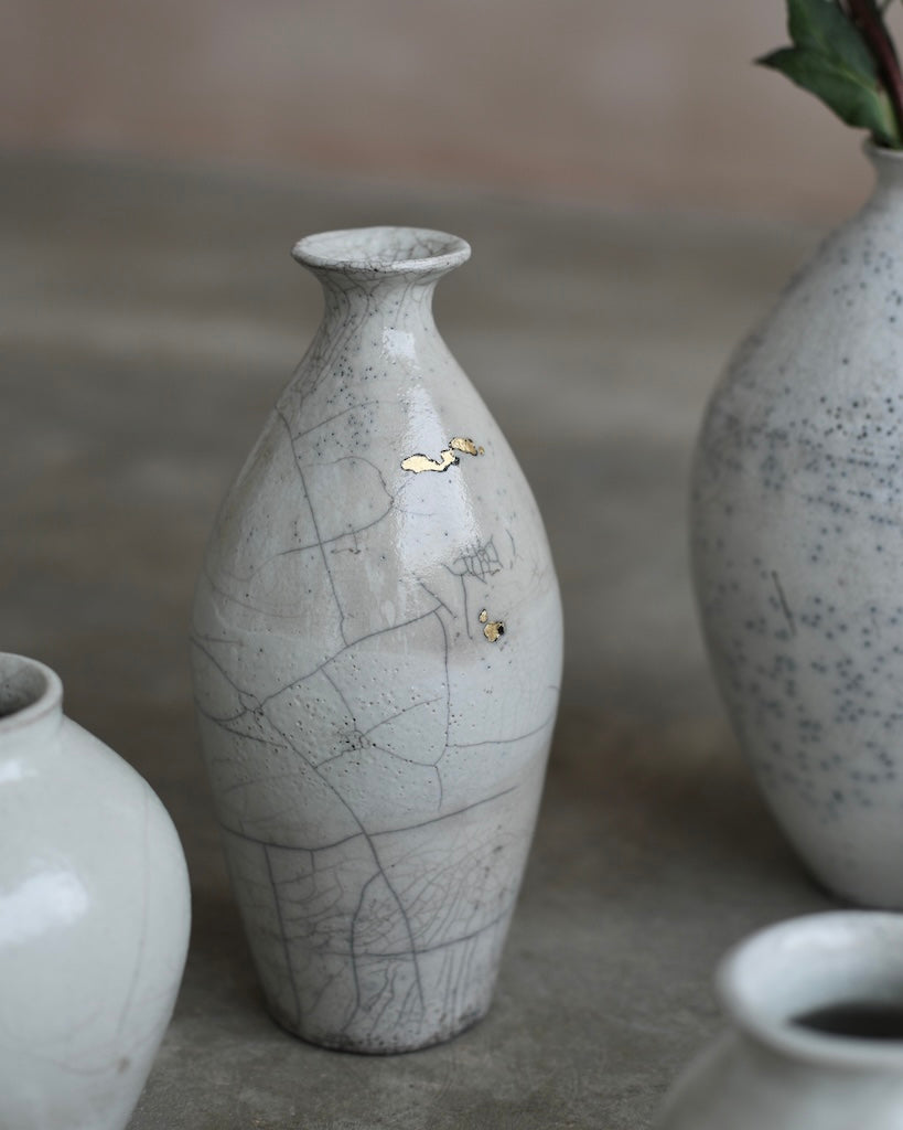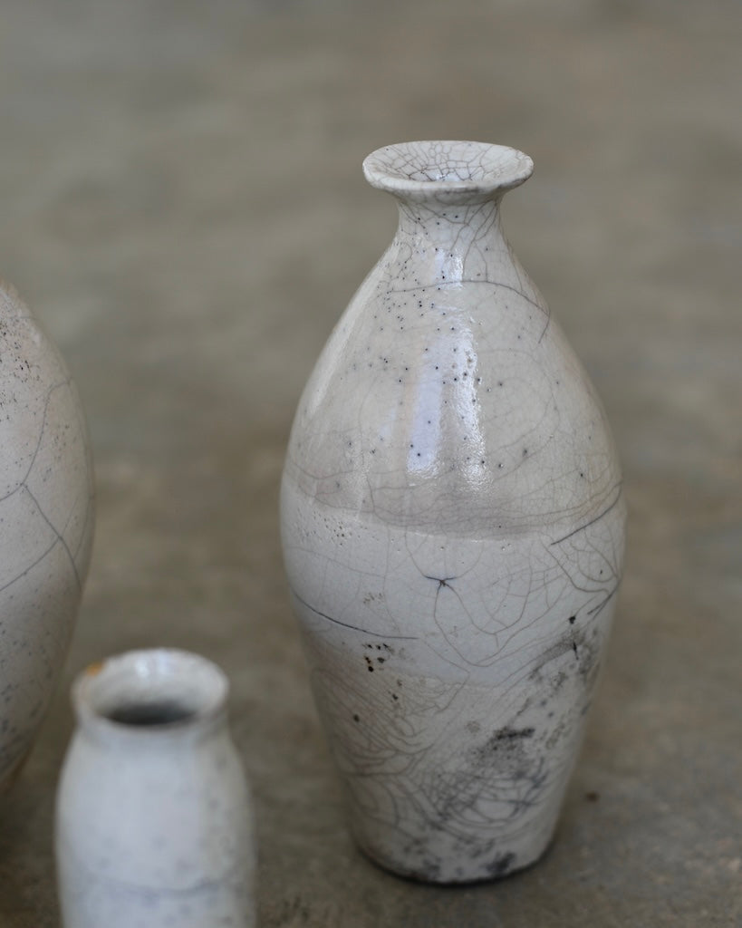 Rhona Frances is a ceramic artist based on the south coast of Cornwall, specialising in minimalist vessels with soft, feminine forms. Working with stoneware clay, Frances builds each piece slowly using the hand-building technique of coiling, allowing form to evolve through quiet repetition. Central to her practice, and in contrast to the calm, measured construction of her vessels, is the raku firing process; an inherently volatile and unpredictable method. The resulting crackle surfaces act as delicate records of fire, smoke, and transformation. The philosophy of non-attachment is fundamental to Frances’s work; some vessels are lost during firing, and this acceptance of fragility has become an integral part of her artistic outlook.