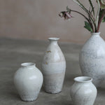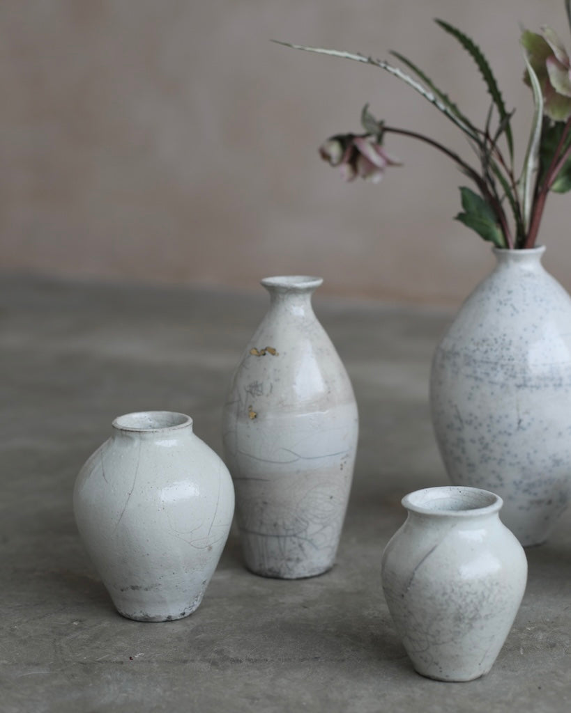 Rhona Frances is a ceramic artist based on the south coast of Cornwall, specialising in minimalist vessels with soft, feminine forms. Working with stoneware clay, Frances builds each piece slowly using the hand-building technique of coiling, allowing form to evolve through quiet repetition. Central to her practice, and in contrast to the calm, measured construction of her vessels, is the raku firing process; an inherently volatile and unpredictable method. The resulting crackle surfaces act as delicate records of fire, smoke, and transformation. The philosophy of non-attachment is fundamental to Frances’s work; some vessels are lost during firing, and this acceptance of fragility has become an integral part of her artistic outlook.