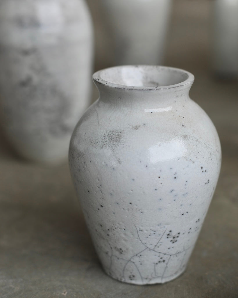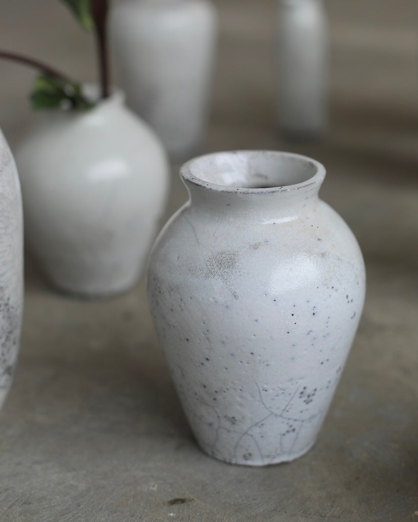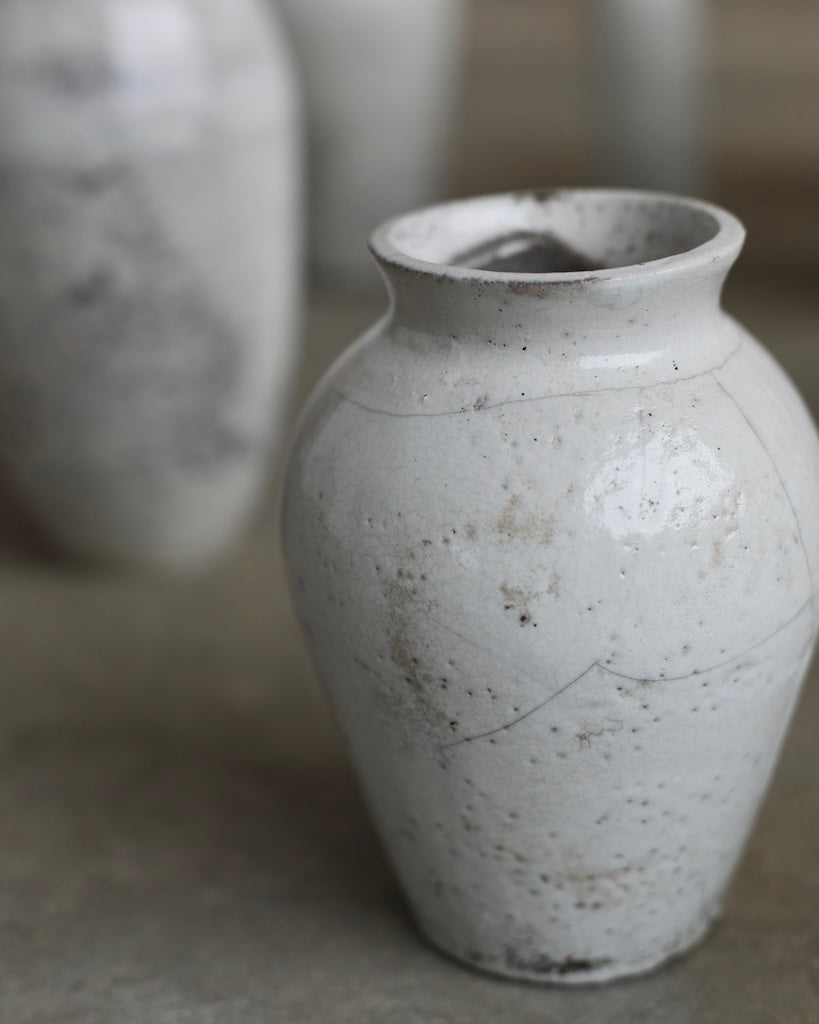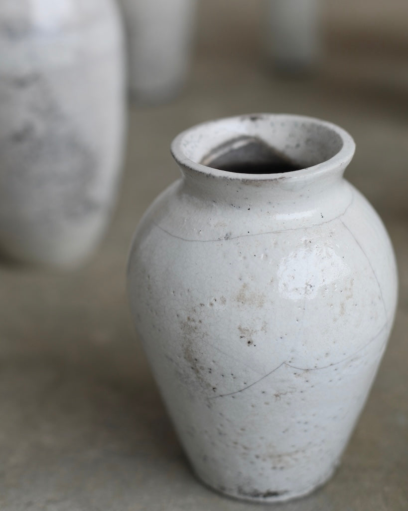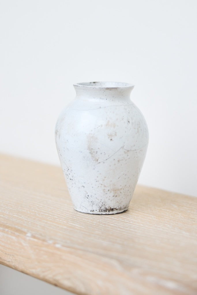 The softly rounded silhouette conveys balance and composure, while fine crackles within the glaze surface reveal the clay’s natural response to the intensity of firing. Rather than concealing these variations, they are embraced as part of the vessel’s story, suggesting resilience within fragility. A restrained palette and subtle tonal shifts enhance its calm presence, inviting closer observation and an appreciation of its refined details.
