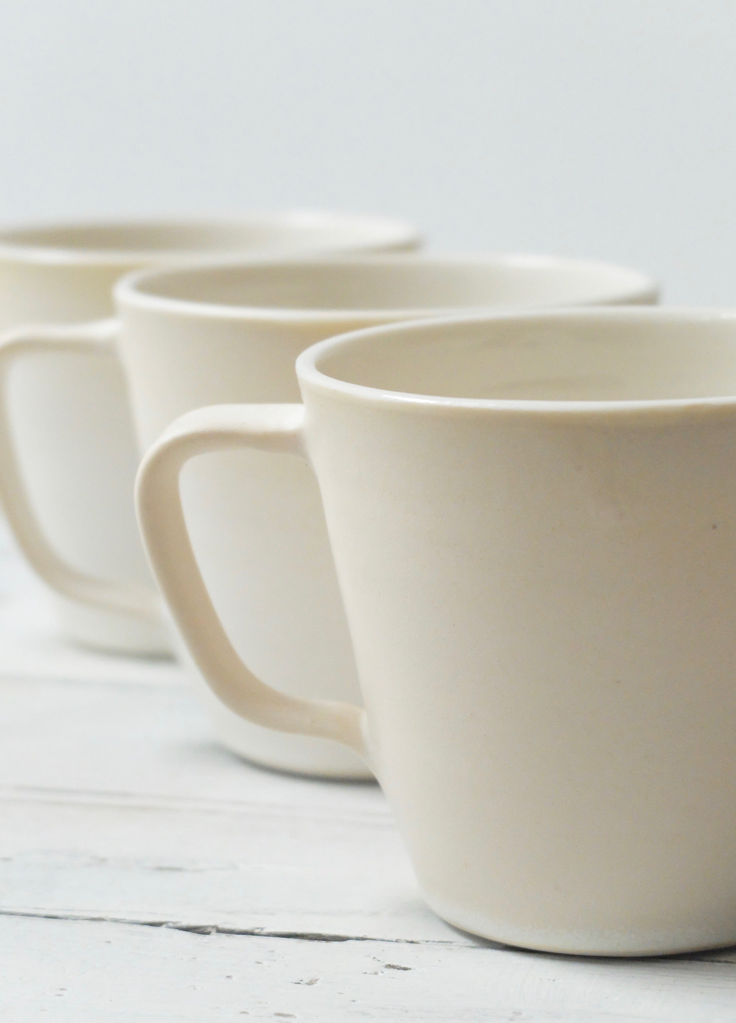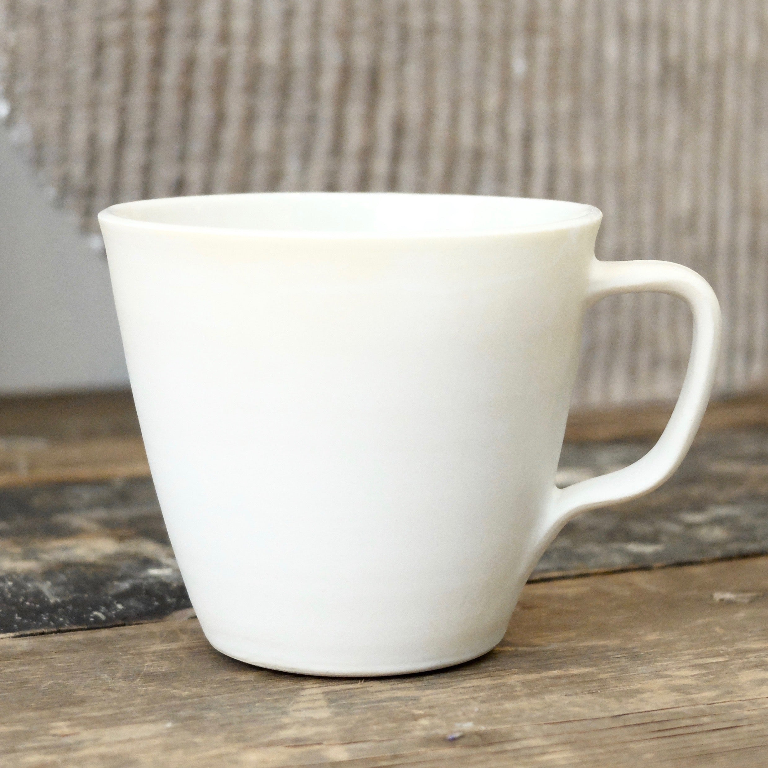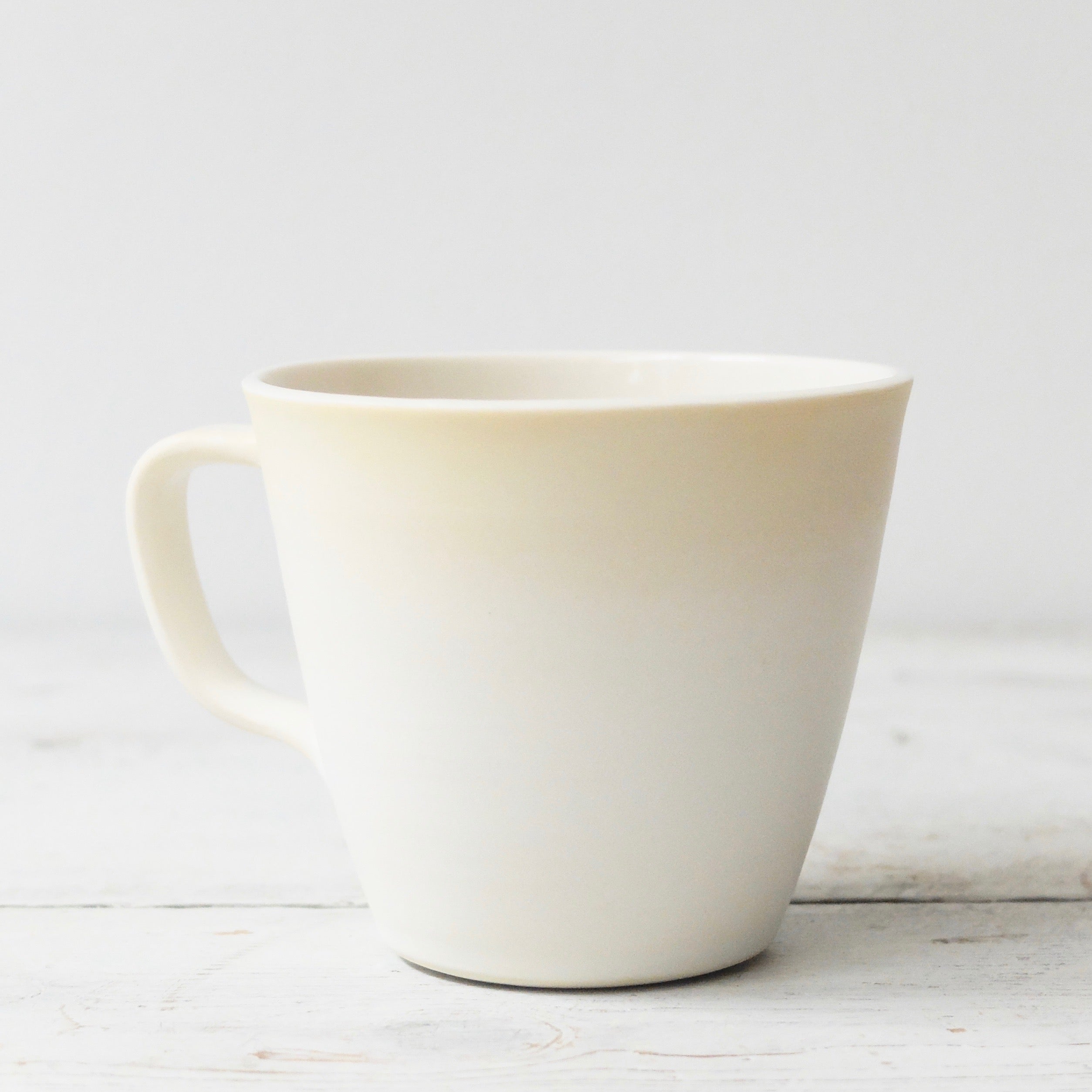 Material: Porcelain mug with soft ochre tone fading from the rim.