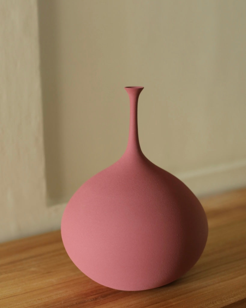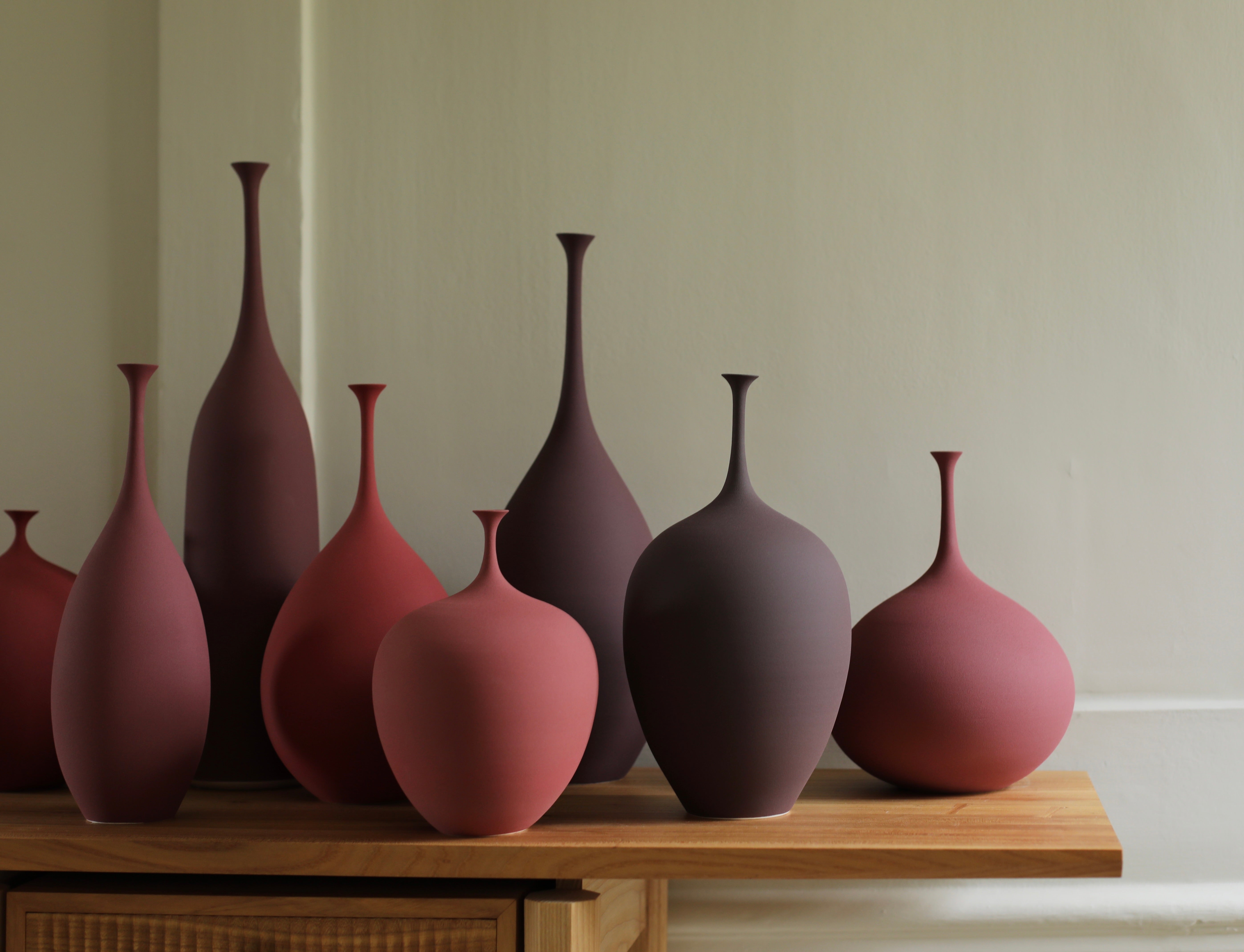 A poetic form finished with a characterful tone, Cook is continually influenced by the beautiful Suffolk landscape, through the kaleidoscope of colour surrounding her. She chooses the tone of the vessel is to align with its form, resulting in a completely unique piece. They require great skill to create, due to the delicate neck of the vessels, which Sophie has developed through her practice.