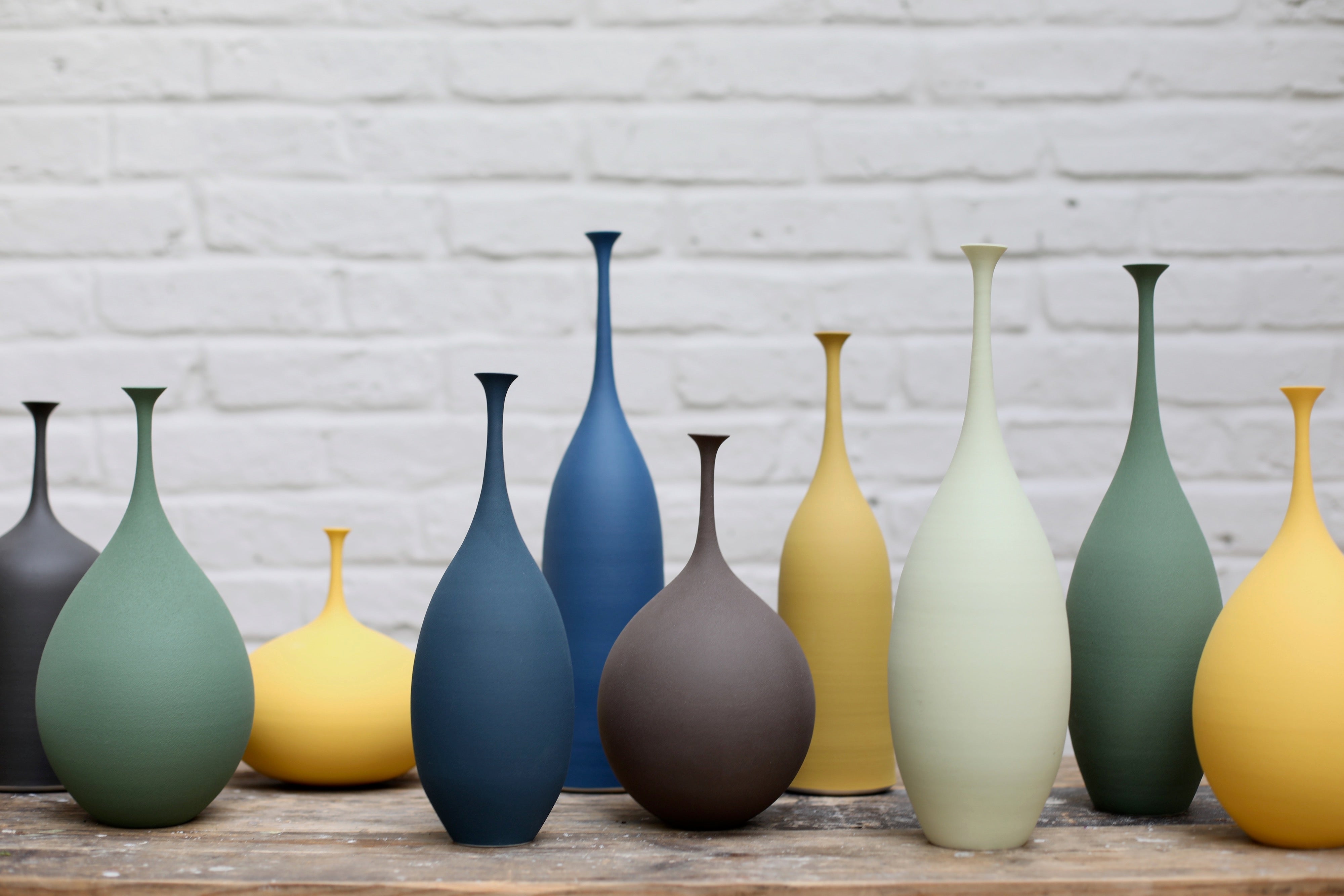 A poetic form finished with a characterful tone, Cook is continually influenced by the beautiful Suffolk landscape, through the kaleidoscope of colour surrounding her. She chooses the tone of the vessel is to align with its form, resulting in a completely unique piece. They require great skill to create, due to the delicate neck of the vessels, which Sophie has developed through her practice.