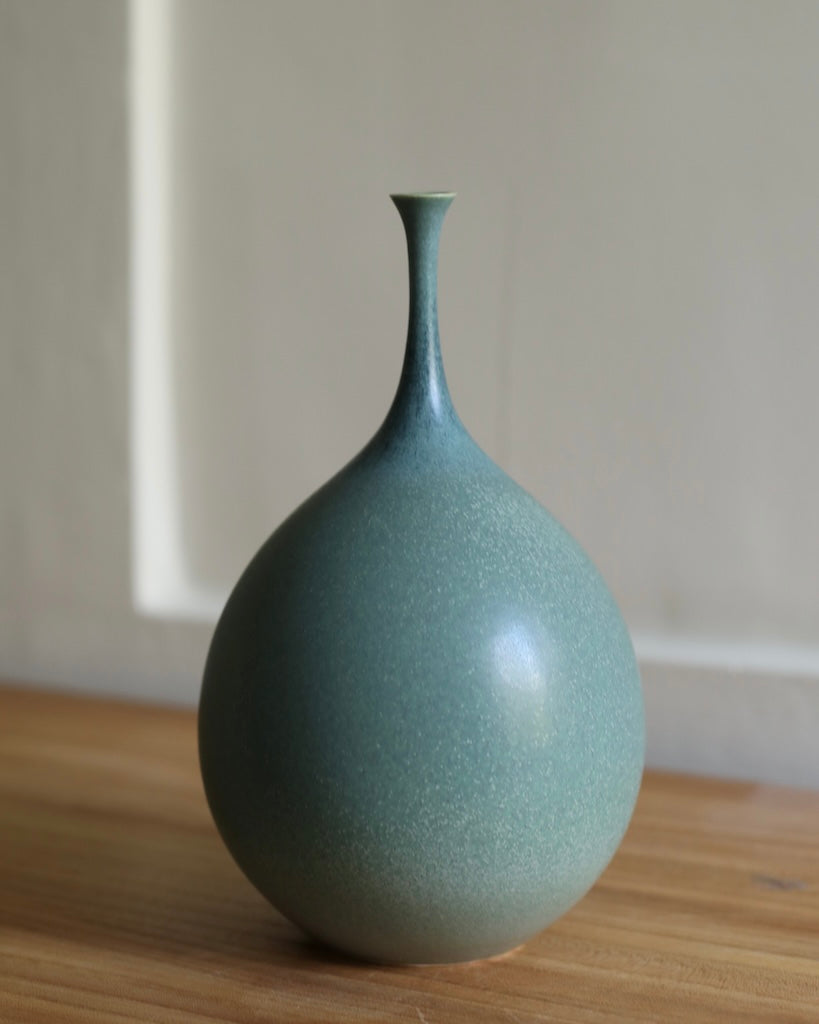 A poetic form finished with a characterful tone, Cook is continually influenced by the beautiful Suffolk landscape, through the kaleidoscope of colour surrounding her. She chooses the tone of the vessel is to align with its form, resulting in a completely unique piece. They require great skill to create, due to the delicate neck of the vessels, which Sophie has developed through her practice.