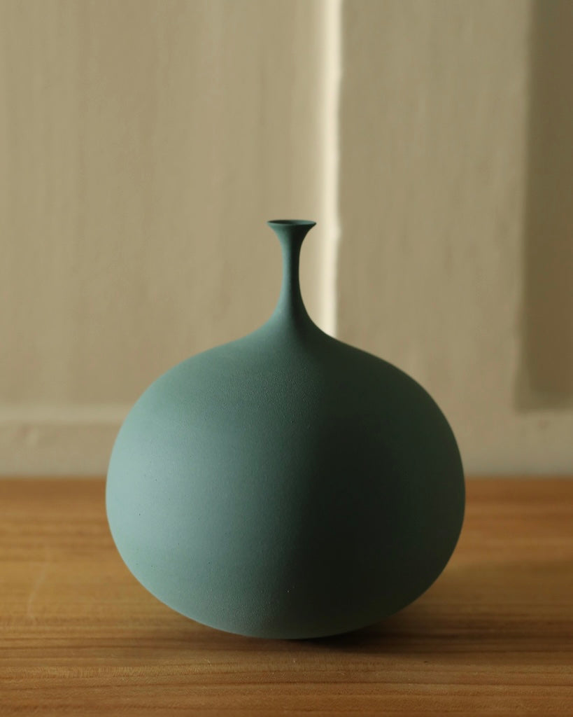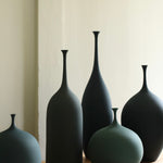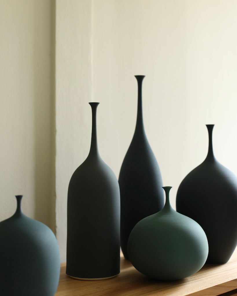 A poetic form finished with a characterful tone, Cook is continually influenced by the beautiful Suffolk landscape, through the kaleidoscope of colour surrounding her. She chooses the tone of the vessel is to align with its form, resulting in a completely unique piece. They require great skill to create, due to the delicate neck of the vessels, which Sophie has developed through her practice.