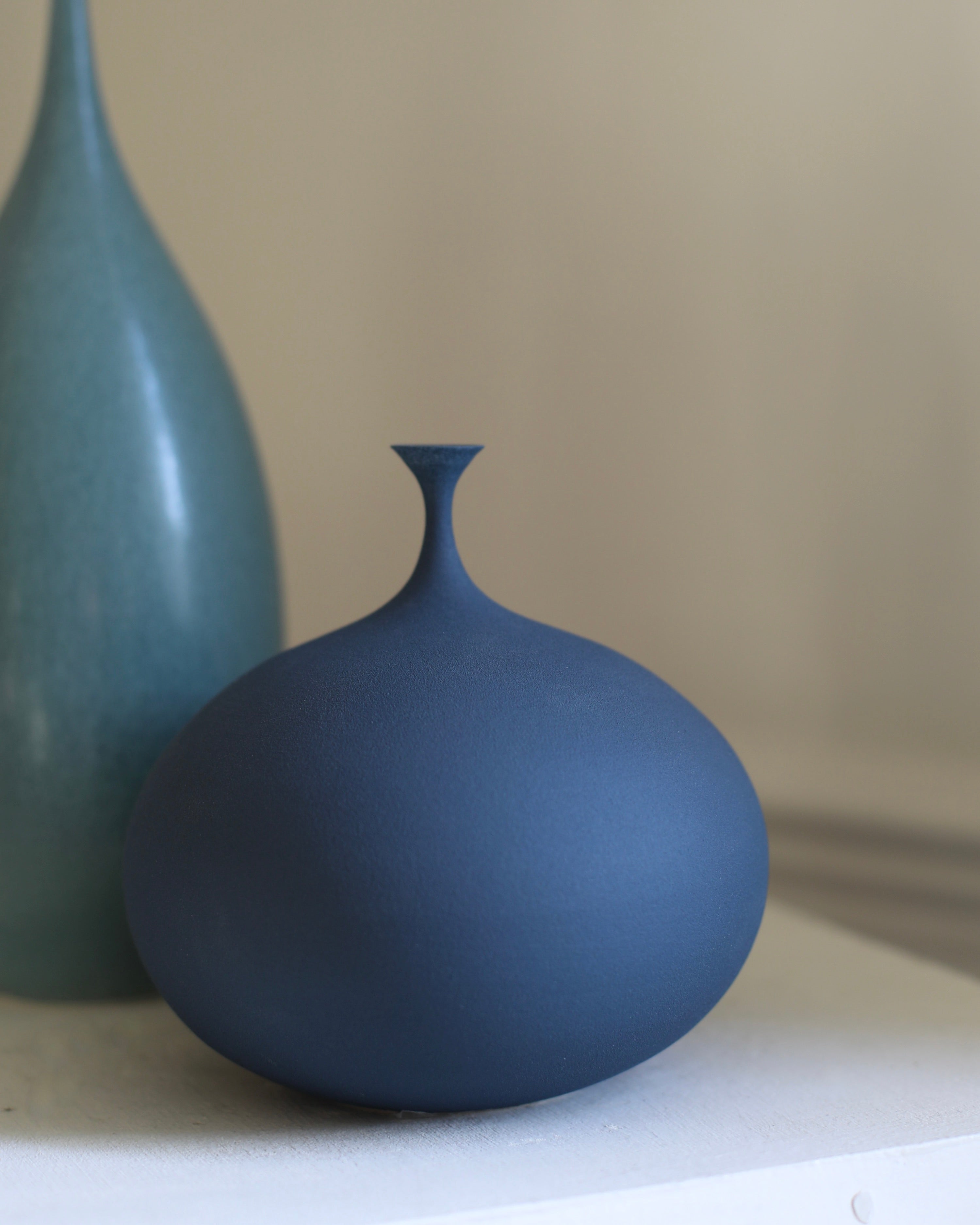 A poetic form finished with a characterful tone, Cook is continually influenced by the beautiful Suffolk landscape, through the kaleidoscope of colour surrounding her. She chooses the tone of the vessel is to align with its form, resulting in a completely unique piece. They require great skill to create, due to the delicate neck of the vessels, which Sophie has developed through her practice.
