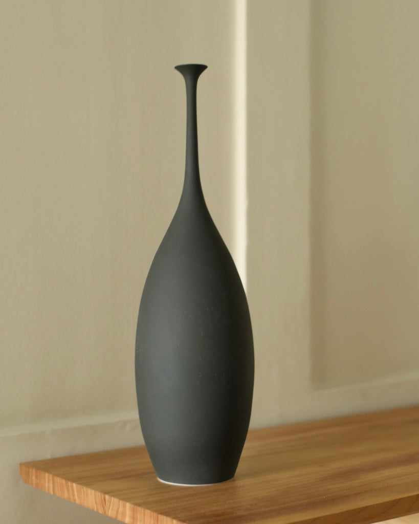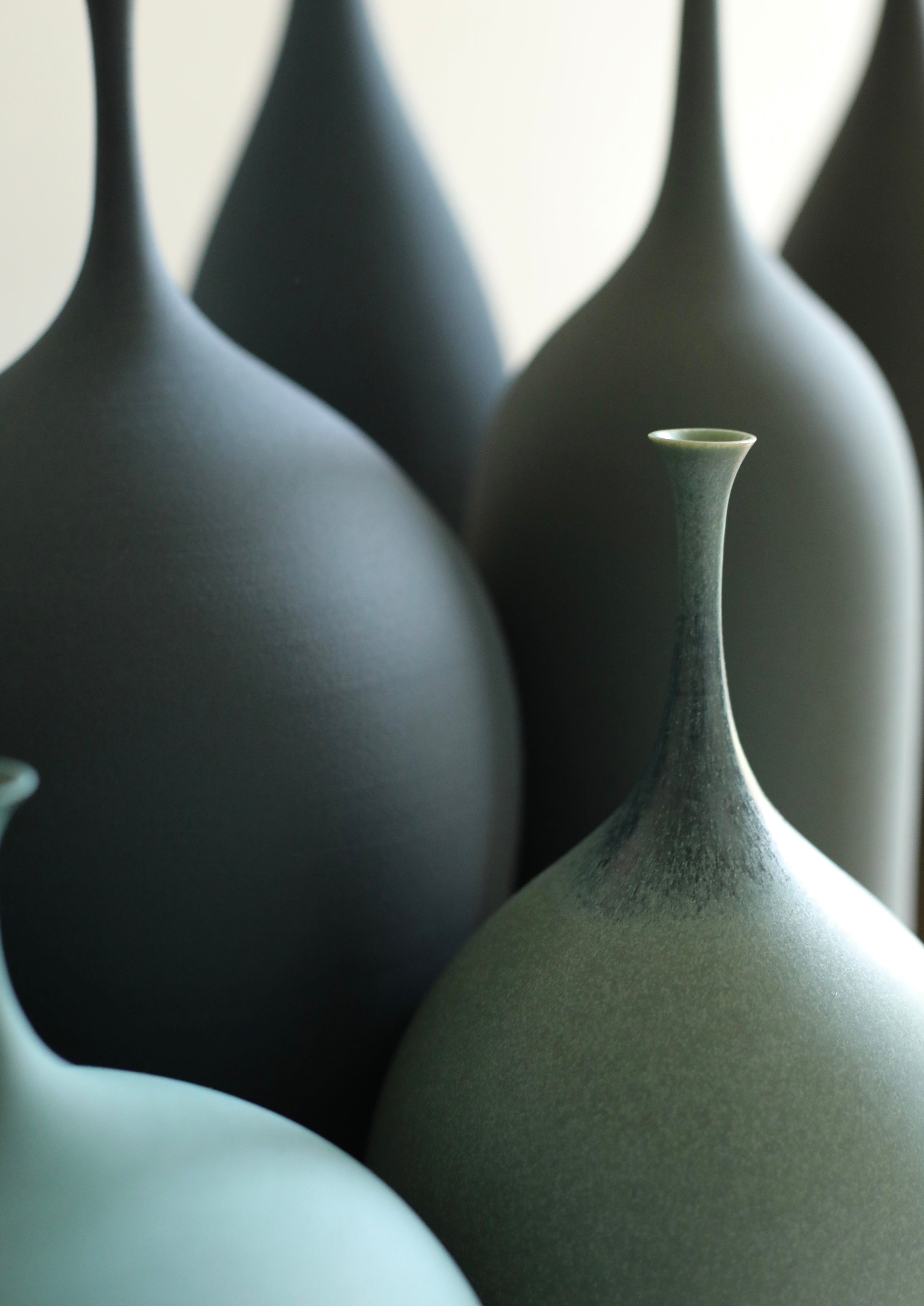 A poetic form finished with a characterful tone, Cook is continually influenced by the beautiful Suffolk landscape, through the kaleidoscope of colour surrounding her. She chooses the tone of the vessel is to align with its form, resulting in a completely unique piece. They require great skill to create, due to the delicate neck of the vessels, which Sophie has developed through her practice.