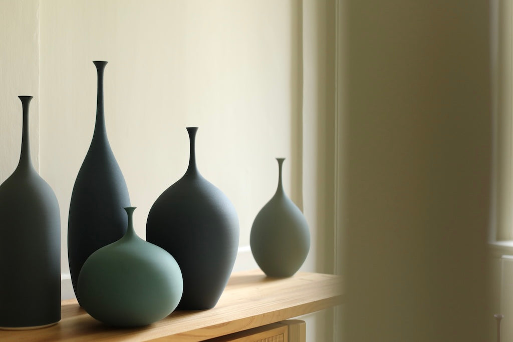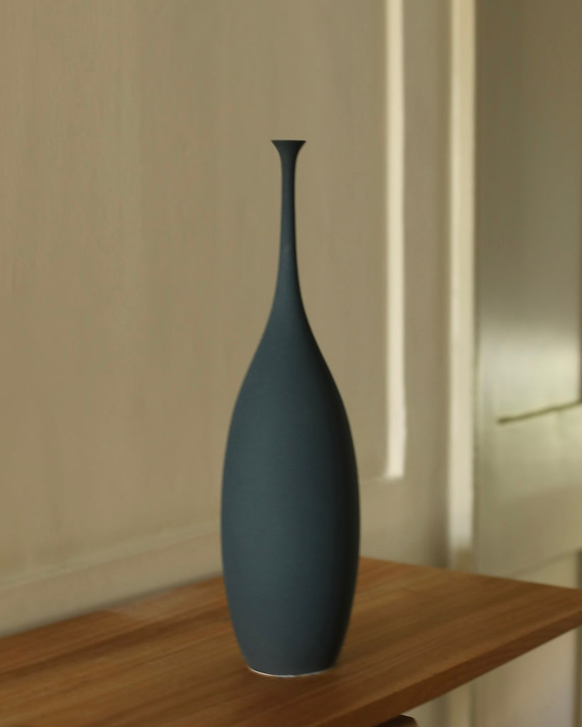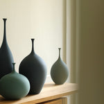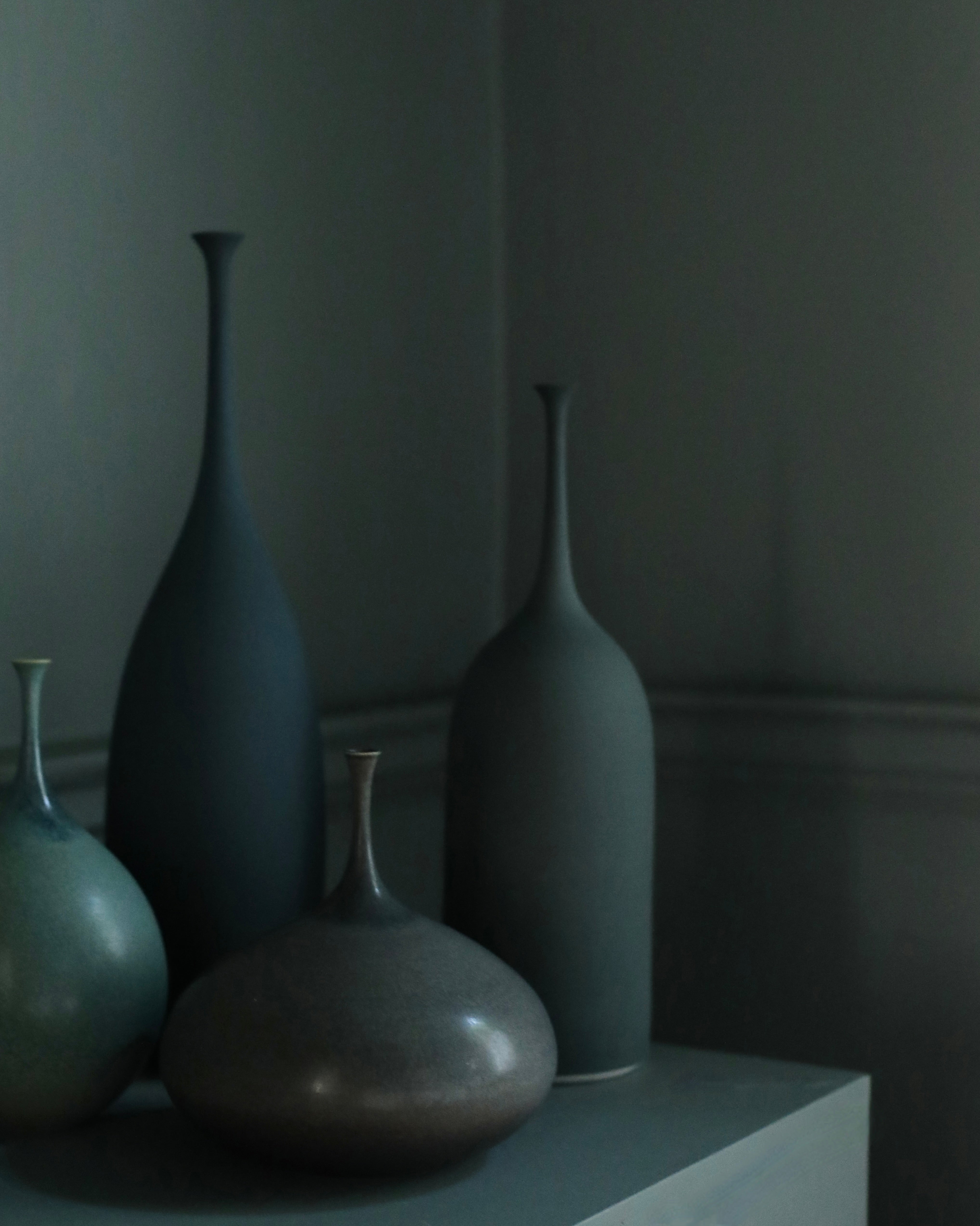 A poetic form finished with a characterful tone, Cook is continually influenced by the beautiful Suffolk landscape, through the kaleidoscope of colour surrounding her. She chooses the tone of the vessel is to align with its form, resulting in a completely unique piece. They require great skill to create, due to the delicate neck of the vessels, which Sophie has developed through her practice.