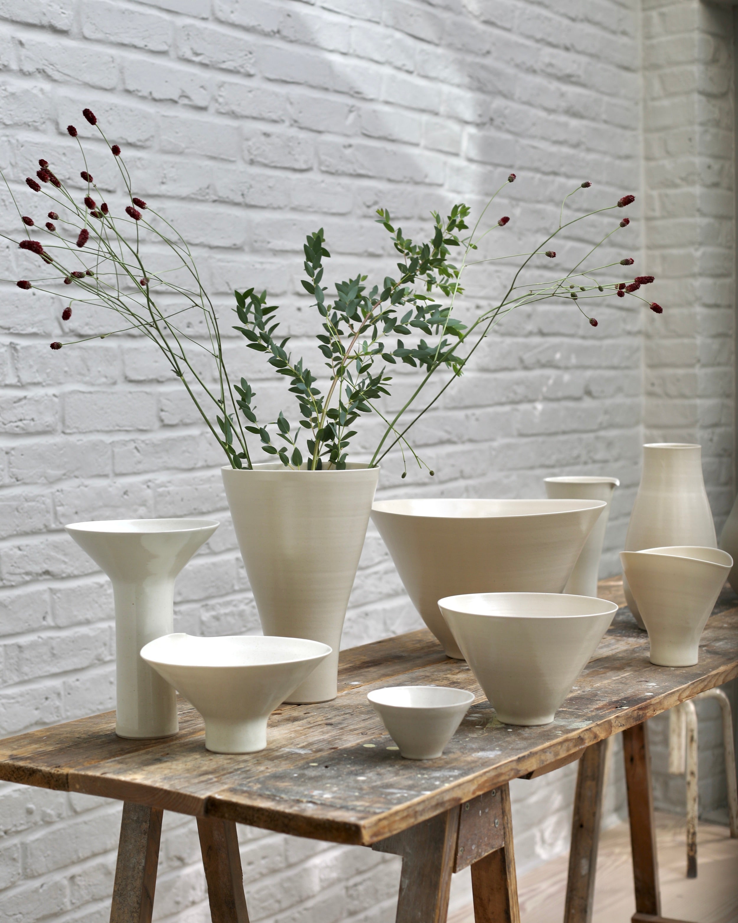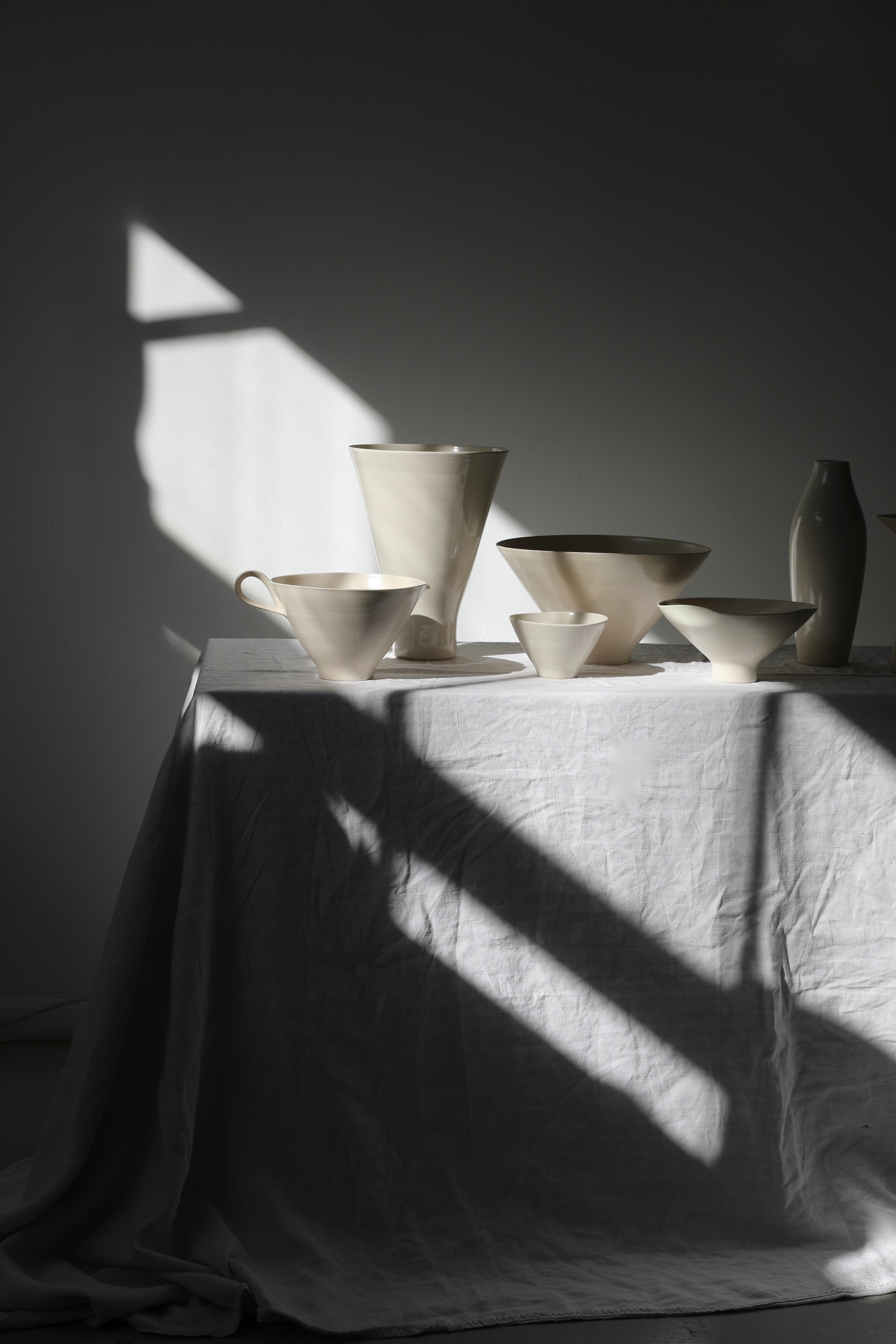 Stuart Carey’s latest collection, Return to Form, redefines elegance and simplicity in ceramic art. Each piece in this collection reflects Carey’s refined aesthetic, honed over a distinguished career and inspired by human gestures and natural forms. Crafted from fine white stoneware and porcelain, these vessels are meticulously thrown and subtly altered to capture frozen moments, inviting touch and interaction.