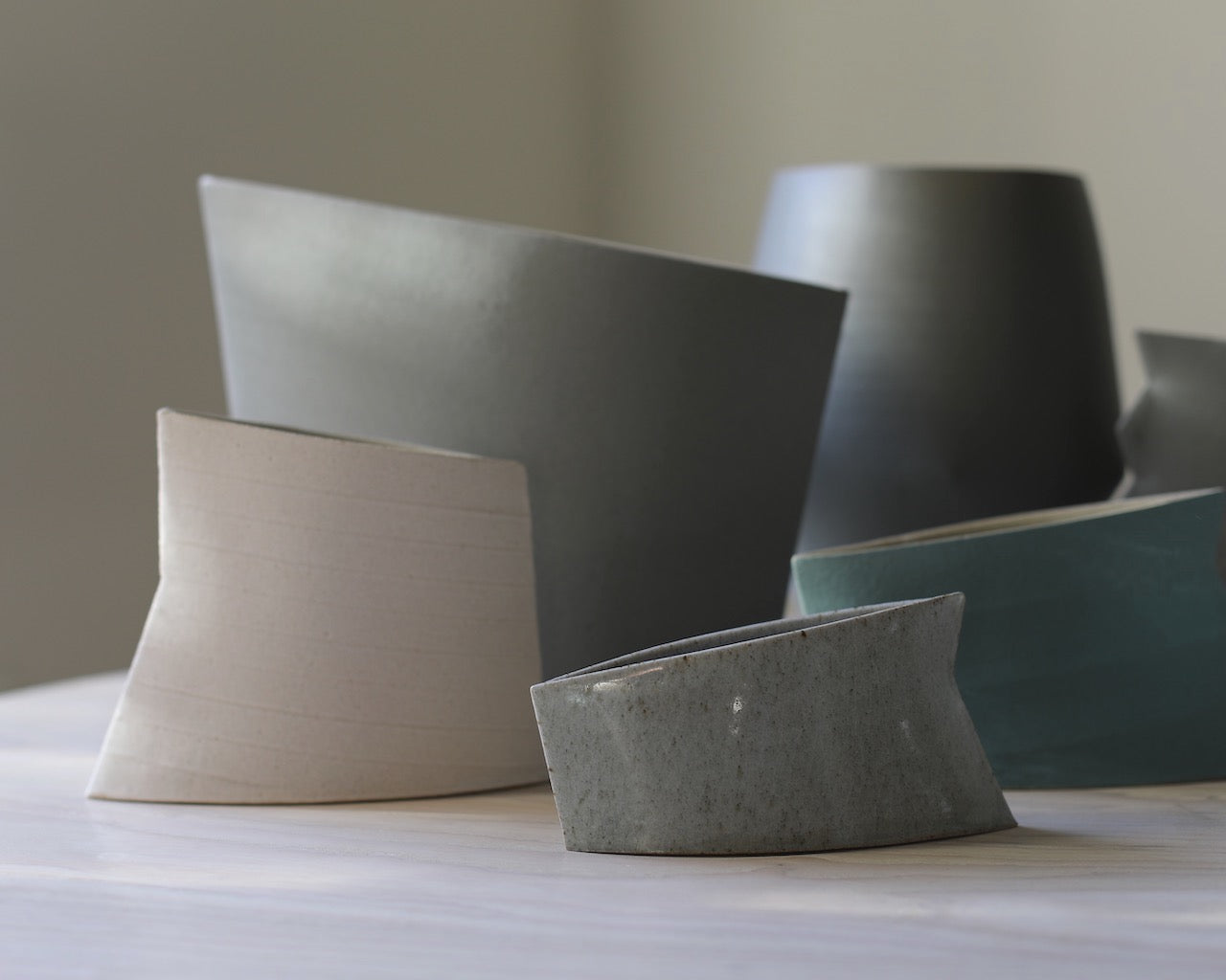 Sun’s distinctive functional ceramics explore and reconcile the different cultures, tastes and aesthetics which she was exposed to whilst growing up, as well as continually taking inspiration from her surroundings. With porcelain and stoneware Sun creates ceramics which combine both traditional and contemporary aesthetics. Her works originate on the potters wheel and are subsequently cut and assembled using hand building techniques. Sun is continually investigating form and shape through her making process.