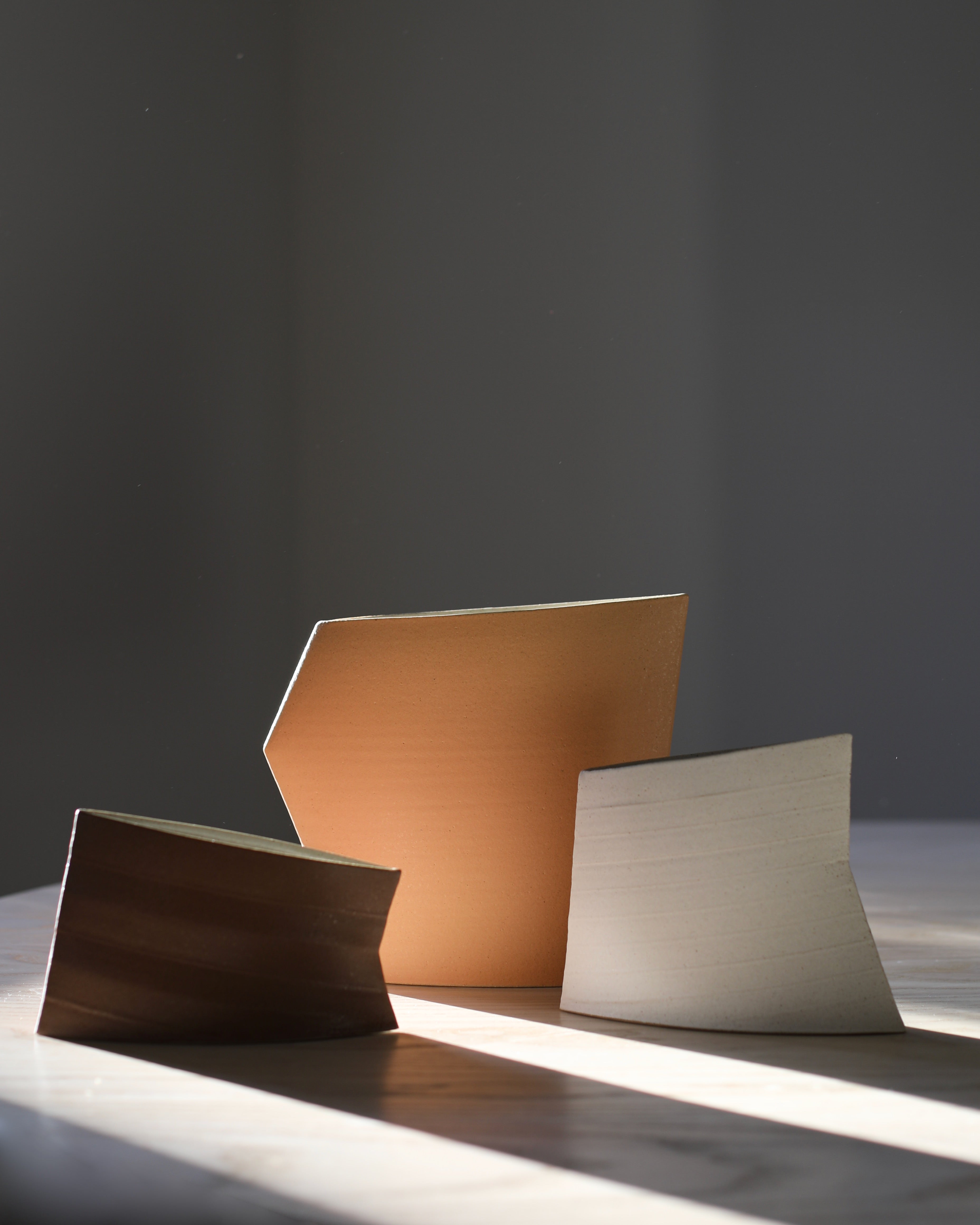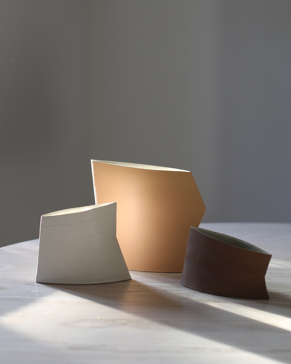 Sun’s distinctive functional ceramics explore and reconcile the different cultures, tastes and aesthetics which she was exposed to whilst growing up, as well as continually taking inspiration from her surroundings. With porcelain and stoneware Sun creates ceramics which combine both traditional and contemporary aesthetics. Her works originate on the potters wheel and are subsequently cut and assembled using hand building techniques. Sun is continually investigating form and shape through her making process.
