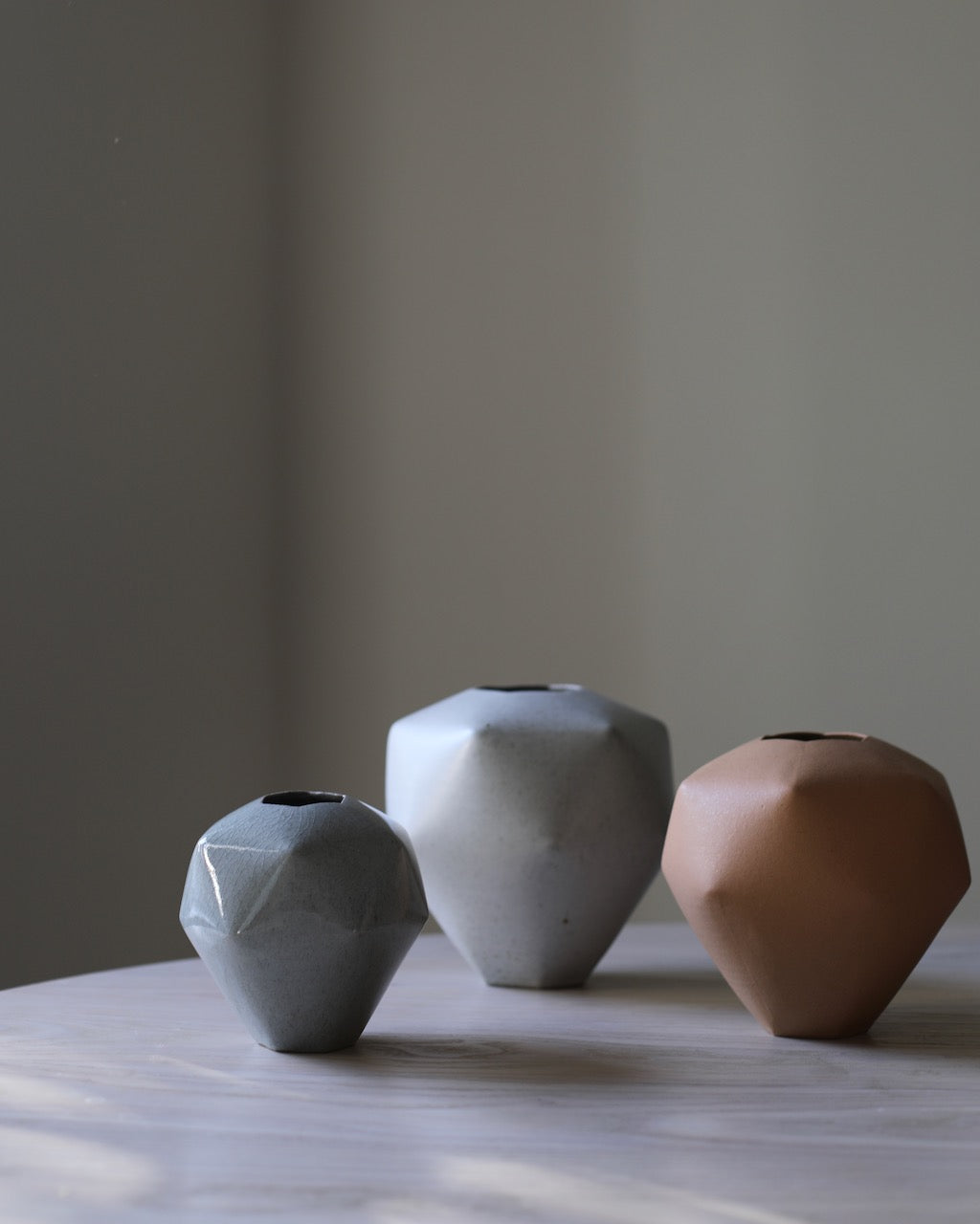 Sun’s distinctive functional ceramics explore and reconcile the different cultures, tastes and aesthetics which she was exposed to whilst growing up, as well as continually taking inspiration from her surroundings. With porcelain and stoneware Sun creates ceramics which combine both traditional and contemporary aesthetics. Her works originate on the potters wheel and are subsequently cut and assembled using hand building techniques. Sun is continually investigating form and shape through her making process.