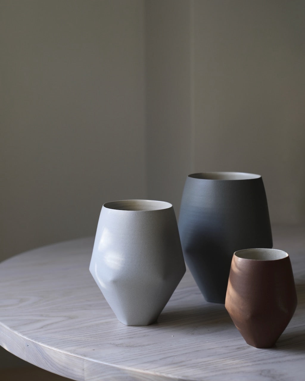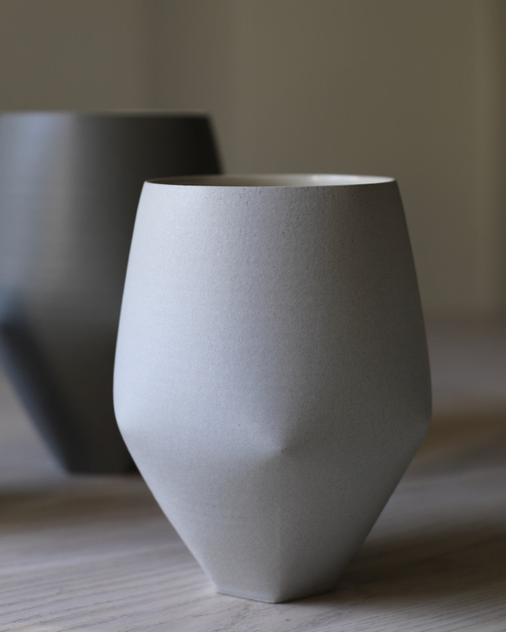 Sun’s distinctive functional ceramics explore and reconcile the different cultures, tastes and aesthetics which she was exposed to whilst growing up, as well as continually taking inspiration from her surroundings. With porcelain and stoneware Sun creates ceramics which combine both traditional and contemporary aesthetics. Her works originate on the potters wheel and are subsequently cut and assembled using hand building techniques. Sun is continually investigating form and shape through her making process.