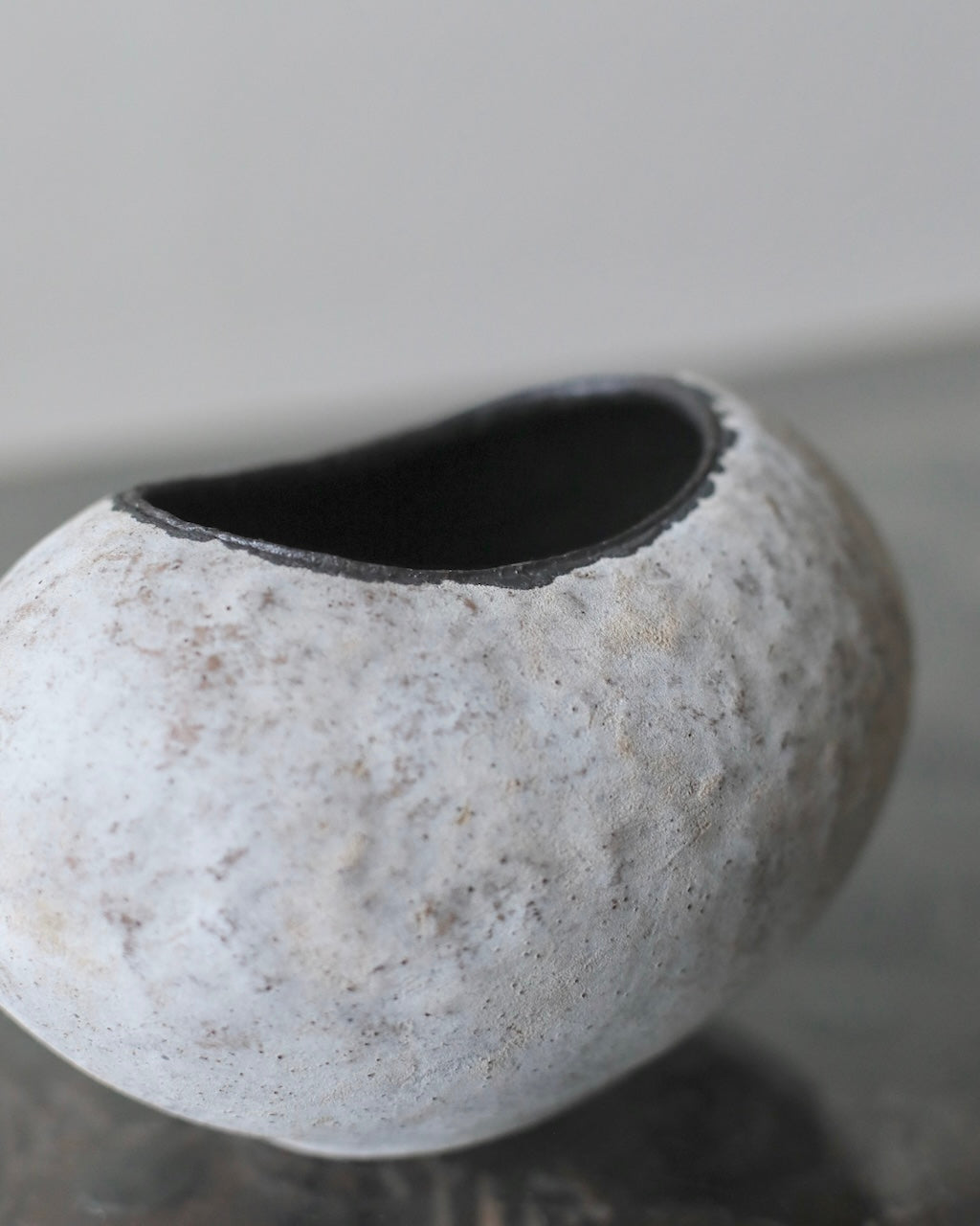 Takada Kae’s ceramic collection is shaped through a fully hand-built process, resulting in works with an organic, tactile presence and softly irregular surfaces. A restrained palette of earthy greens, browns, blues, and dusty creams unifies the group. The collection moves between precise geometric forms, defined by clean openings and architectural angles, and more rounded, enclosed shapes that feel pod-like and weathered, evoking objects shaped by time and nature.
