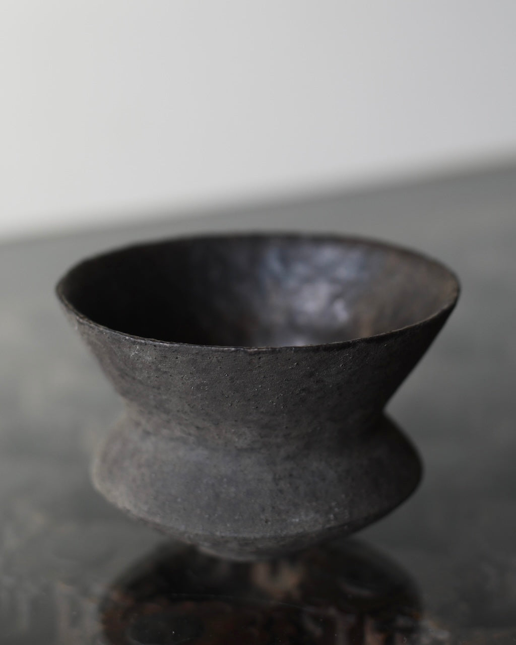 Takada Kae’s ceramic collection is shaped through a fully hand-built process, resulting in works with an organic, tactile presence and softly irregular surfaces. A restrained palette of earthy greens, browns, blues, and dusty creams unifies the group. The collection moves between precise geometric forms, defined by clean openings and architectural angles, and more rounded, enclosed shapes that feel pod-like and weathered, evoking objects shaped by time and nature.