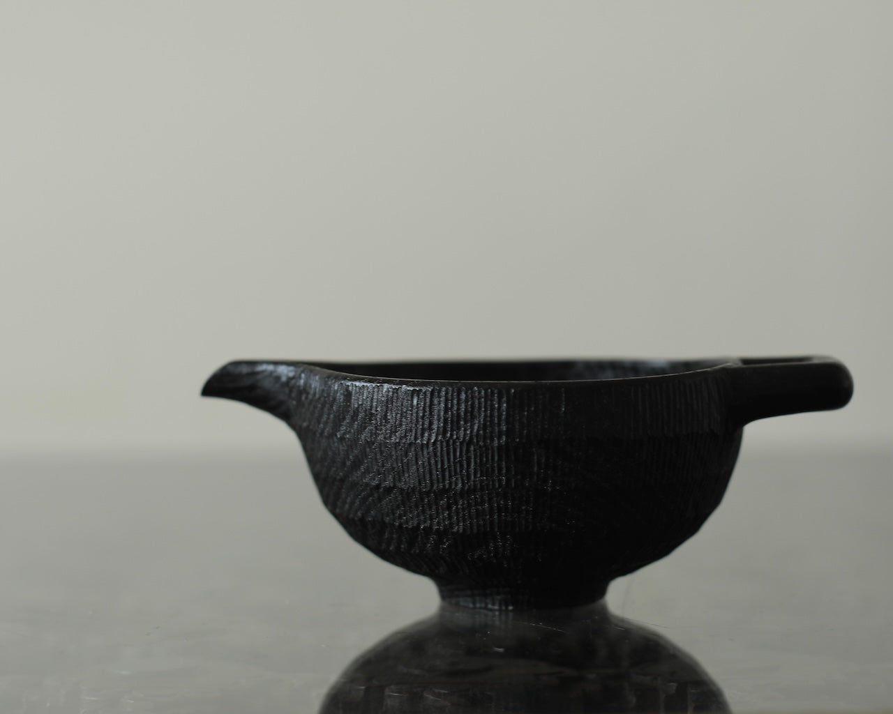 Takahashi McGil’s collection of sculptural vessels, containers, and spoons is crafted from locally sourced hardwoods including sycamore, cherry, ash, and beech. Drawing on both Japanese and Western traditions, the works feature carefully considered forms and distinctive surface finishes, with traditional materials such as tonoko, urushi, and jinoko used throughout. Fine rows of vertical notches introduce rhythm and tactility, while natural characteristics of the wood, knots, grain variation, and subtle cracks, are intentionally preserved, making each piece quietly individual.