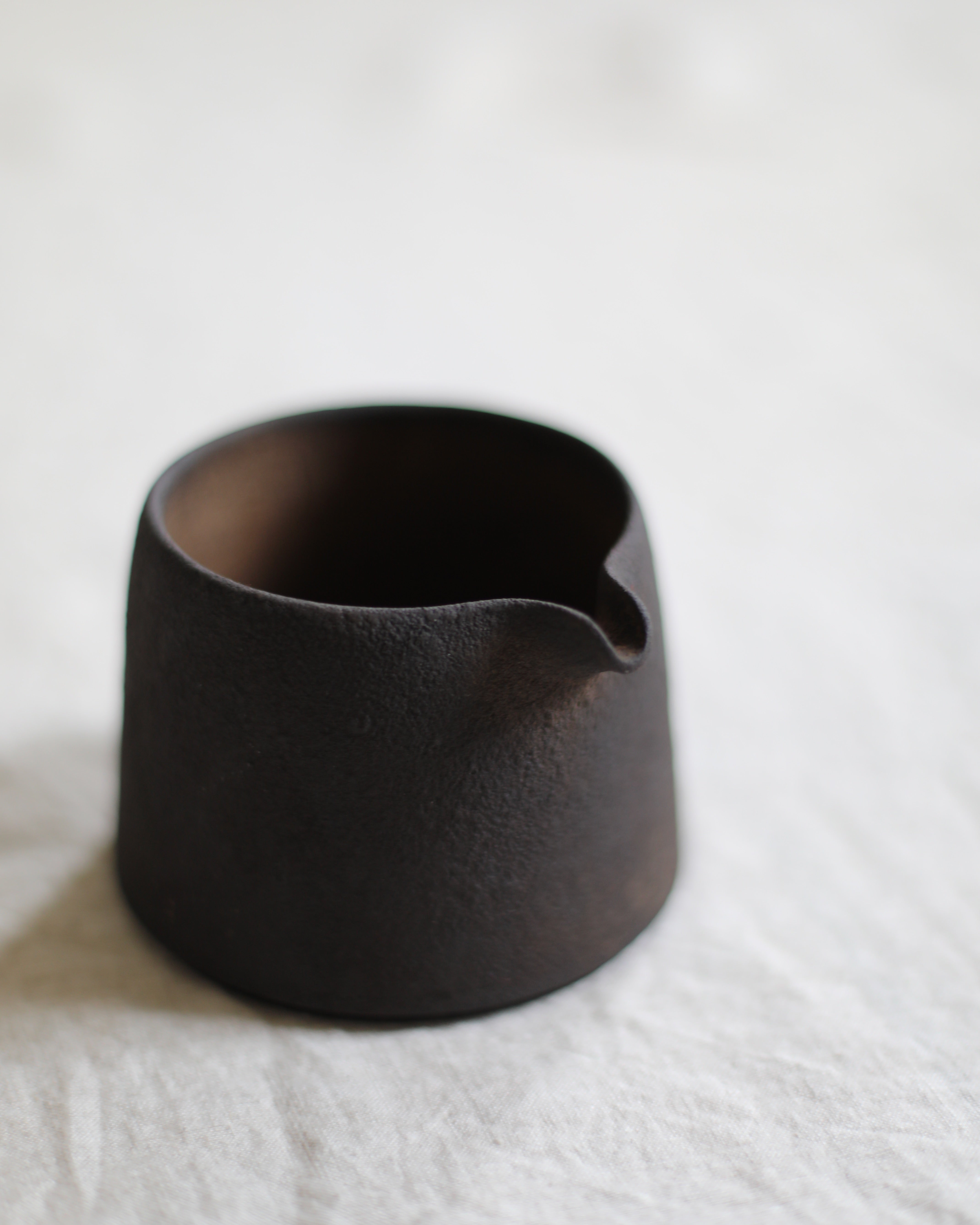 A hand-turned ‘katakuchi’ made from beech wood. Here, Takahashi McGil balances the contemporary with tradition to create pieces that highlight the beauty in the natural character of the wood. Minimal in form, these traditional Japanese wares are texturally dynamic and finished in a sabi-urushi lacquer, the result is a deep, rich rusted texture.