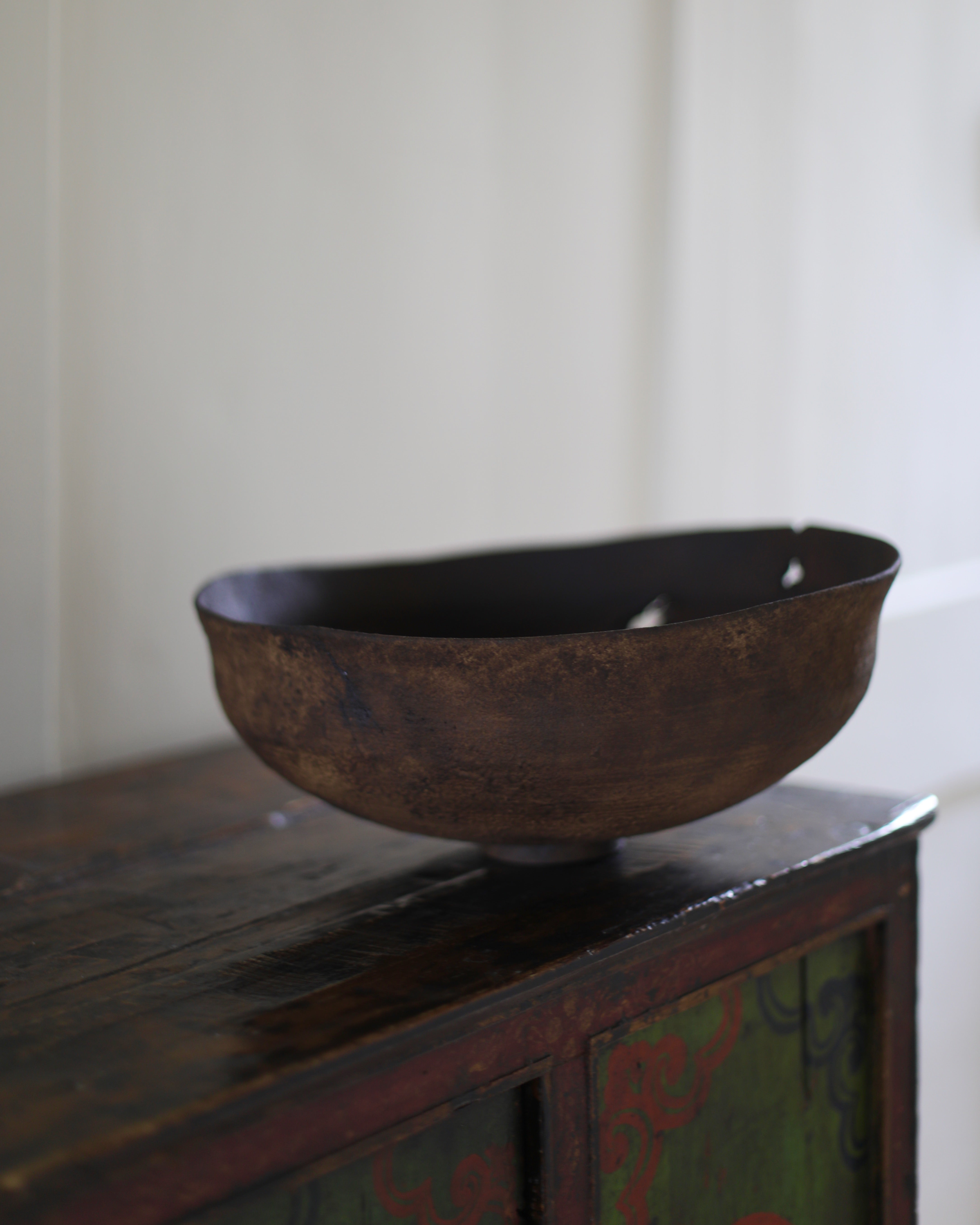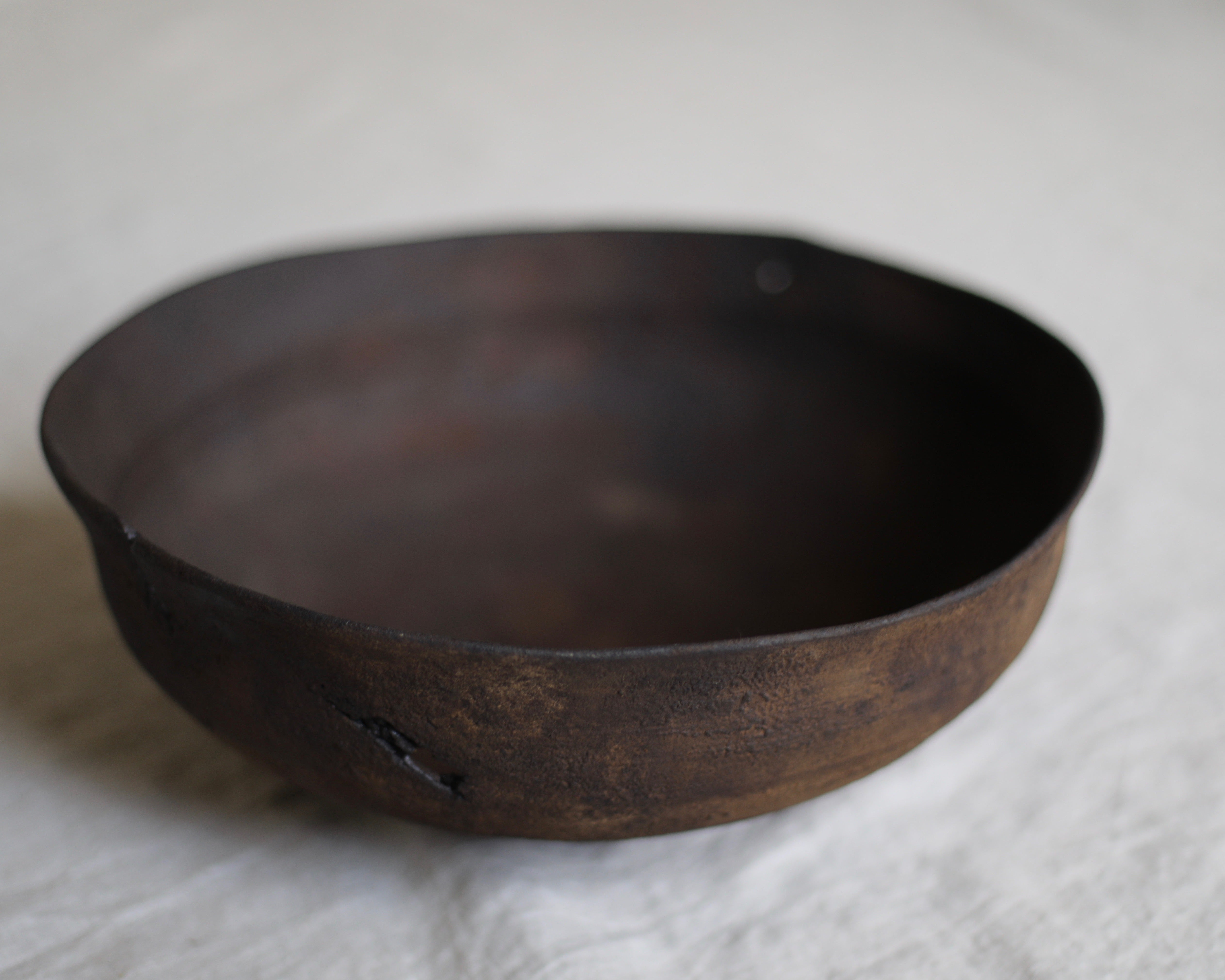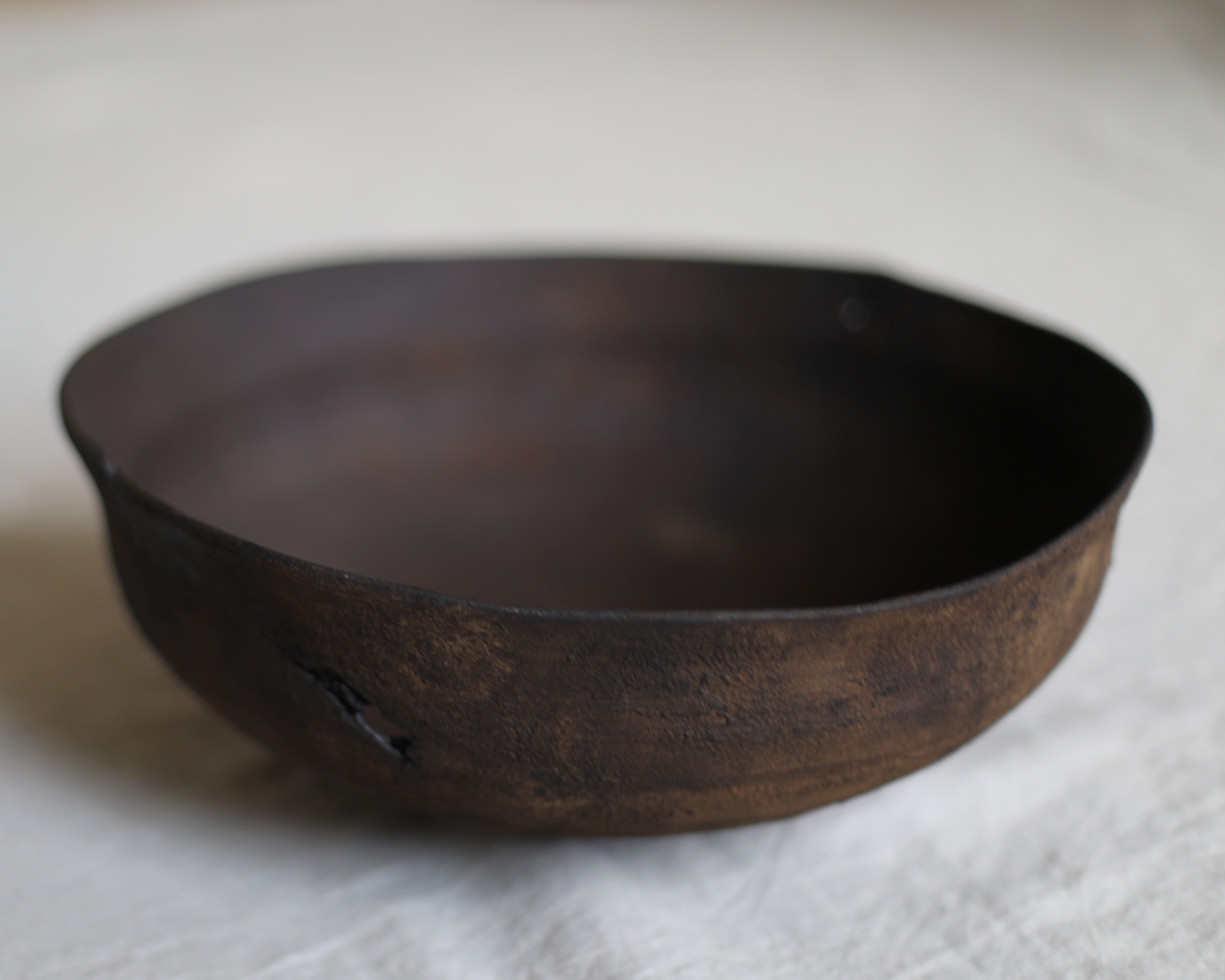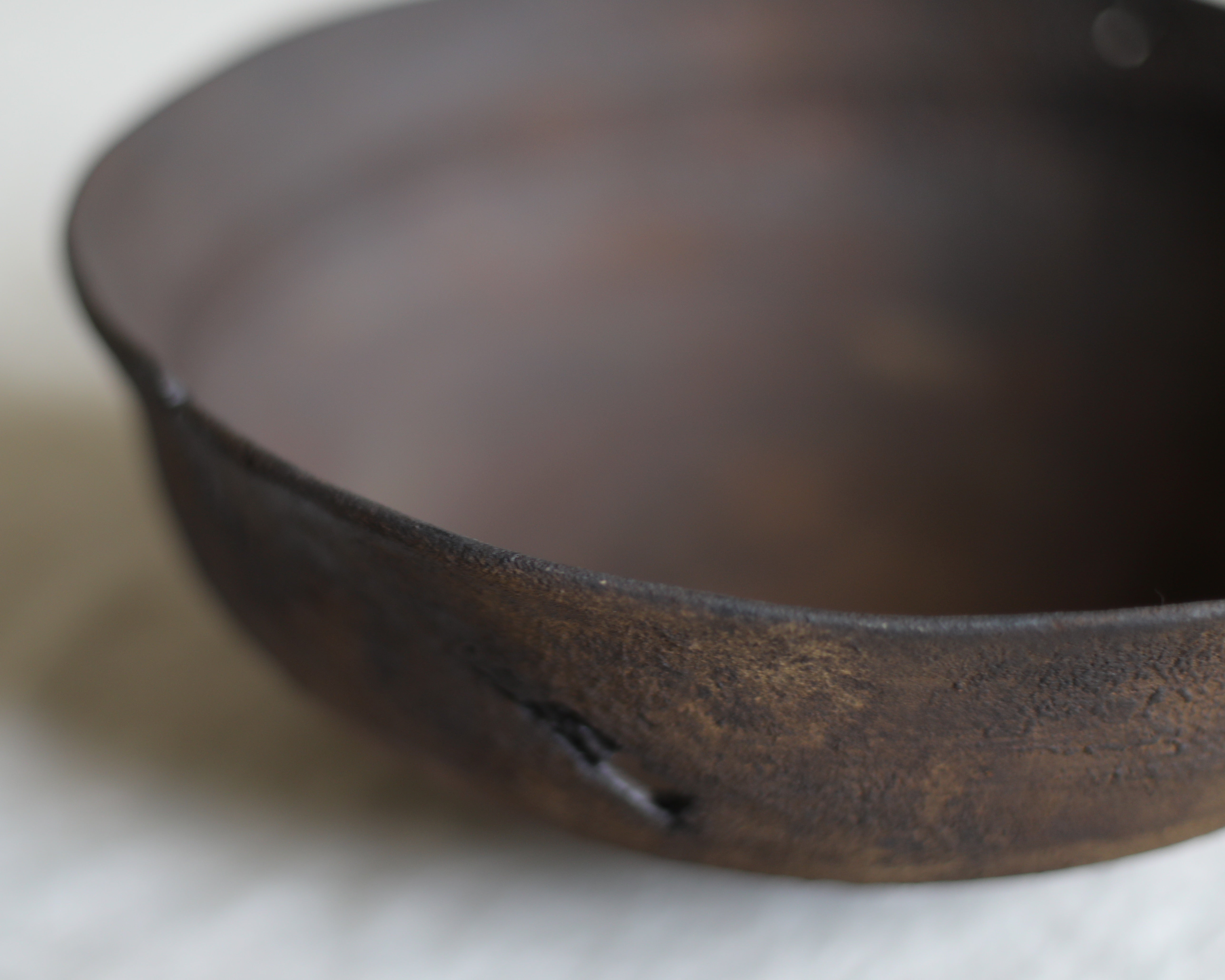 Simultaneously grand and delicate, this hand-turned cherry wood bowl showcases Takahashi McGil’s ability to combine traditional craft methods with a contemporary sensibility. Finished in a sabi-urushi lacquer, the result is a deep, rich rusted texture that reveals a new beauty in the natural character of the wood.
