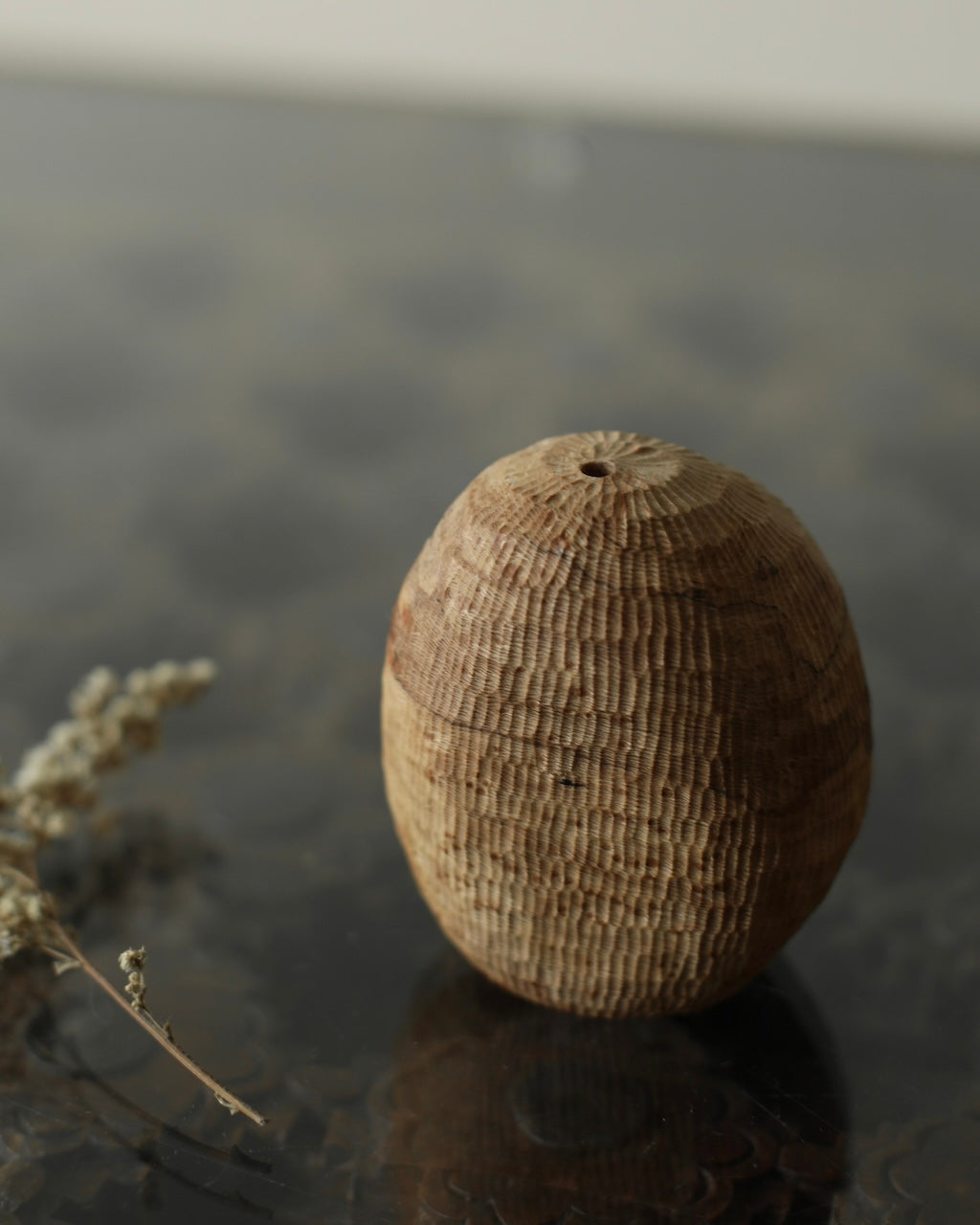 Takahashi McGil’s collection of sculptural vessels, containers, and spoons is crafted from locally sourced hardwoods including sycamore, cherry, ash, and beech. Drawing on both Japanese and Western traditions, the works feature carefully considered forms and distinctive surface finishes, with traditional materials such as tonoko, urushi, and jinoko used throughout. Fine rows of vertical notches introduce rhythm and tactility, while natural characteristics of the wood, knots, grain variation, and subtle cracks, are intentionally preserved, making each piece quietly individual.