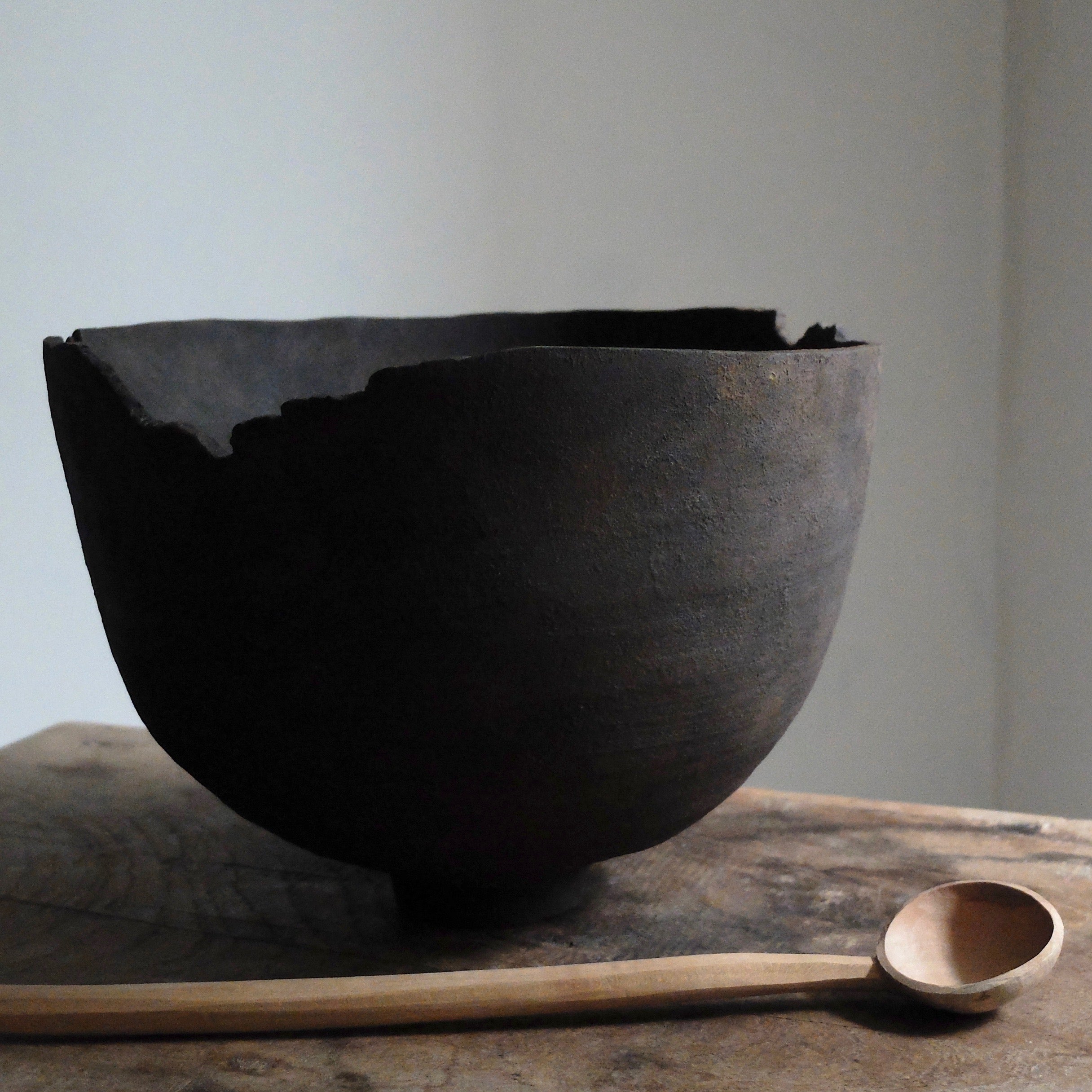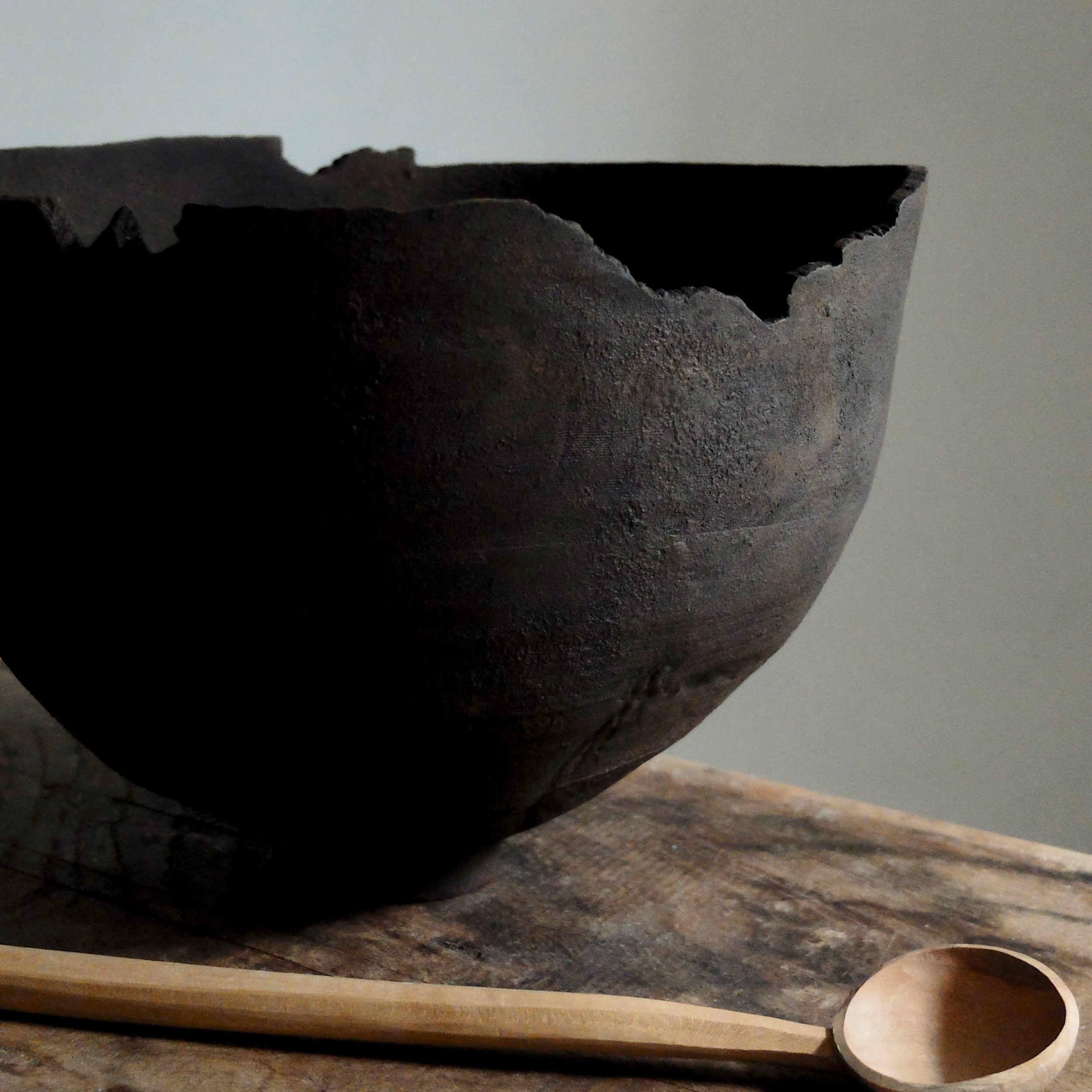 The textured exterior is finished with a ‘whitened’ shiro-urush, a traditional Japanese technique. Urushi originates from tree sap, and makes objects waterproof as well as adding strength. The smooth interior is in contrast to the pinched surface, which emphasises the original markings on the wood, protecting its natural beauty.