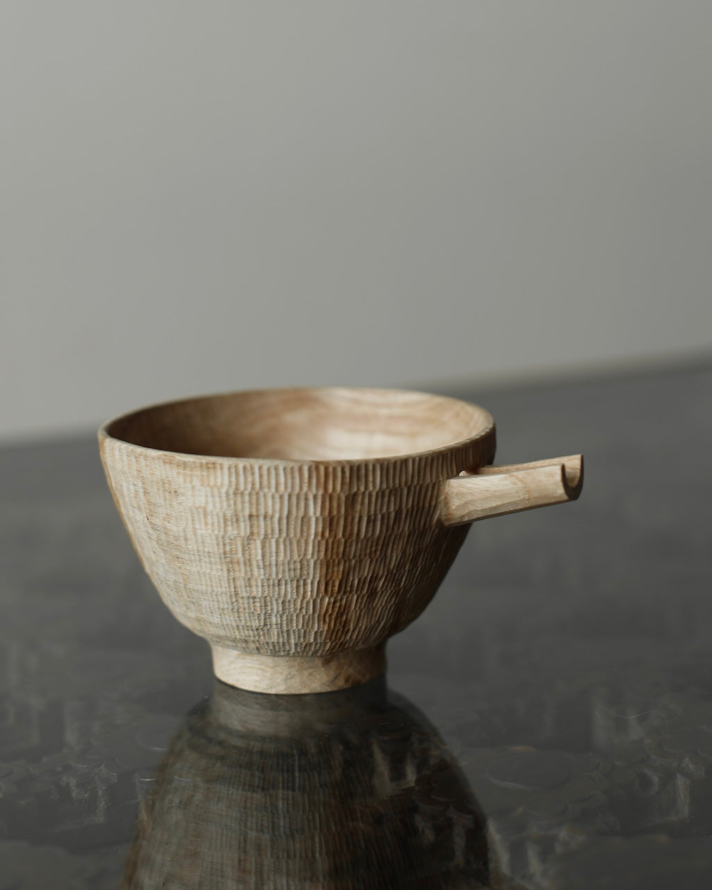 Takahashi McGil’s collection of sculptural vessels, containers, and spoons is crafted from locally sourced hardwoods including sycamore, cherry, ash, and beech. Drawing on both Japanese and Western traditions, the works feature carefully considered forms and distinctive surface finishes, with traditional materials such as tonoko, urushi, and jinoko used throughout. Fine rows of vertical notches introduce rhythm and tactility, while natural characteristics of the wood, knots, grain variation, and subtle cracks, are intentionally preserved, making each piece quietly individual.