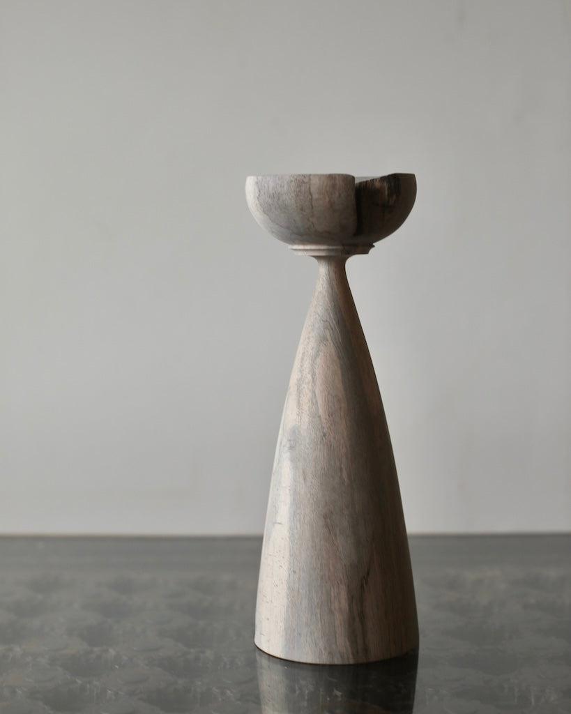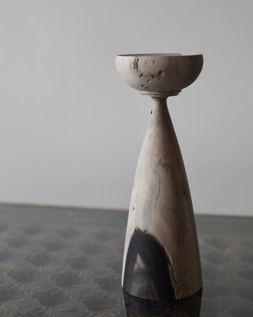 Ichikawa is known for vessels and vases that celebrate the natural character of wood: grain, tonal variation, and gradual transformation over time. He works with a wide range of species, often selecting spalted or richly figured woods, allowing the grain to guide the form and atmosphere of each piece.