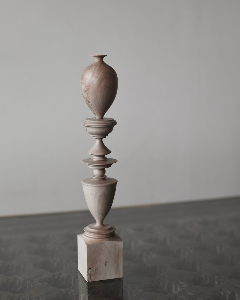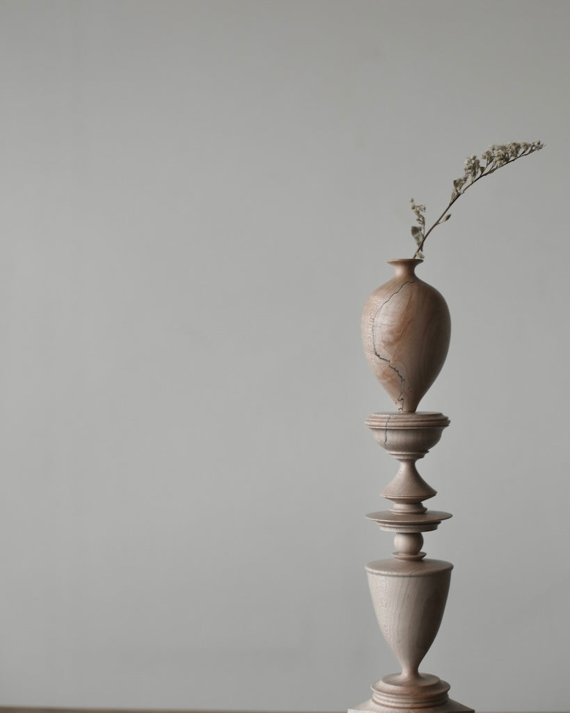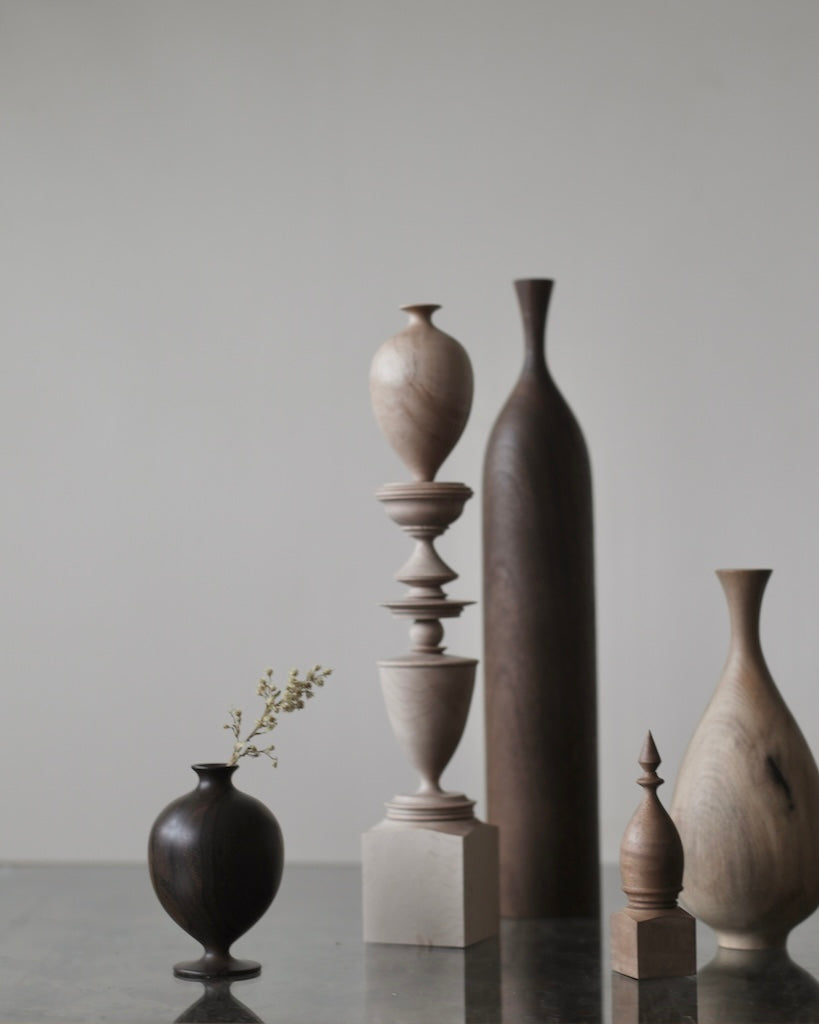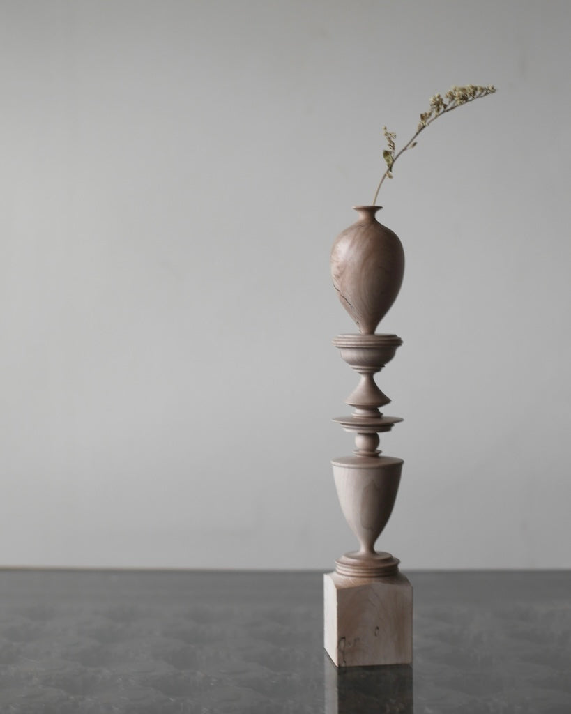 Ichikawa is known for vessels and vases that celebrate the natural character of wood: grain, tonal variation, and gradual transformation over time. He works with a wide range of species, often selecting spalted or richly figured woods, allowing the grain to guide the form and atmosphere of each piece.