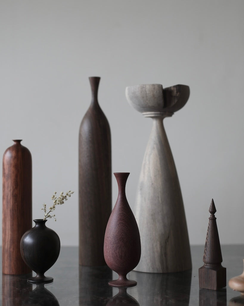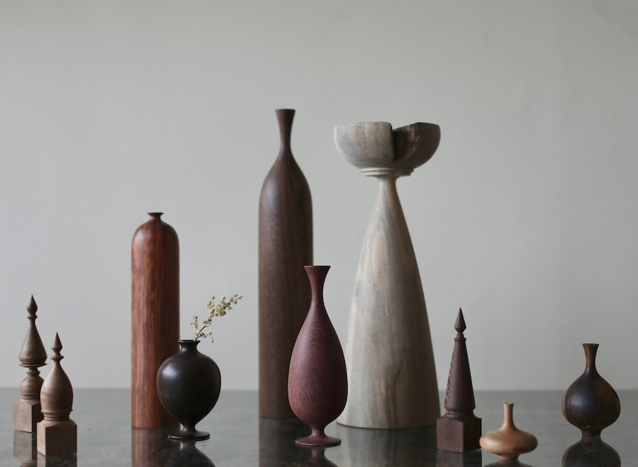 Ichikawa is known for vessels and vases that celebrate the natural character of wood: grain, tonal variation, and gradual transformation over time. He works with a wide range of species, often selecting spalted or richly figured woods, allowing the grain to guide the form and atmosphere of each piece.