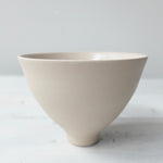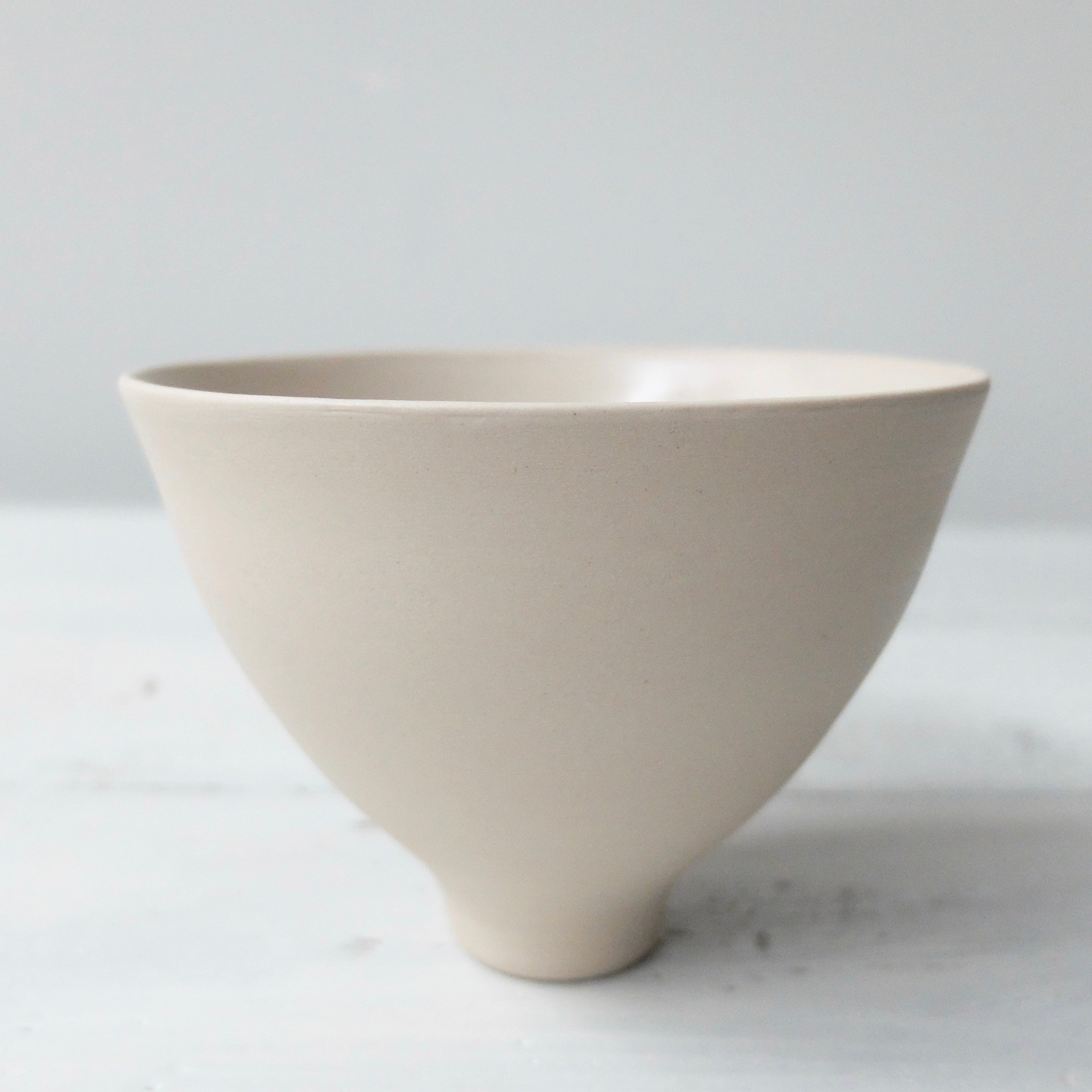 Wheel thrown pale buff stoneware vessel. Fired at 1260c the bowls exterior is sanded to a smooth finished and the interior is finished with a pale buff glaze.
