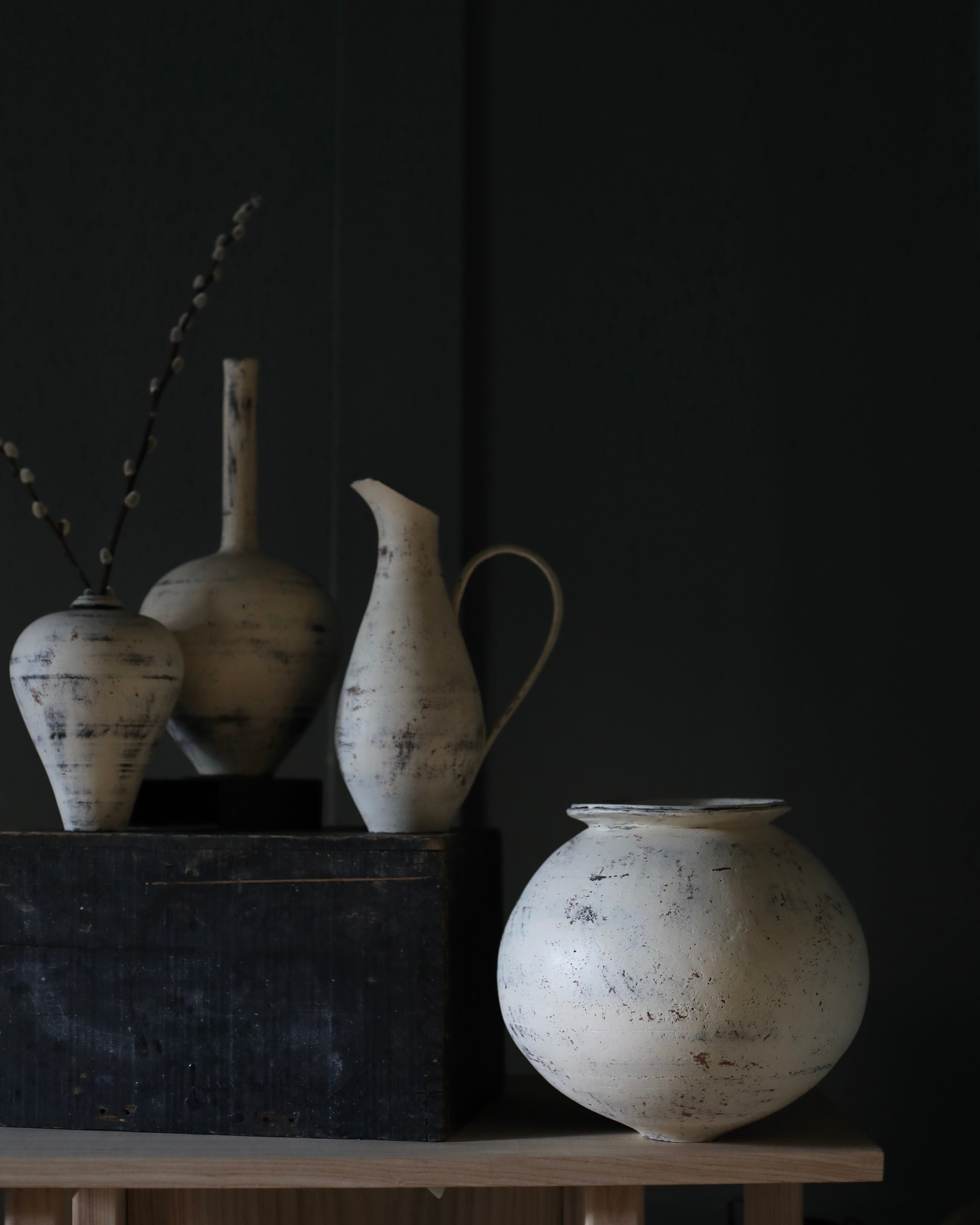 Method: The body of this elegant vessel is made from black clay, sourced locally to Ozawa in his home town, Tokomame. A traditional Japanese glaze is then applied, Chara, and 'kofuki', a dusting technique, to create his interesting and uneven surfaces. Following the firing process, white soil is applied in a thin layer, enhancing the rough texture of the piece.