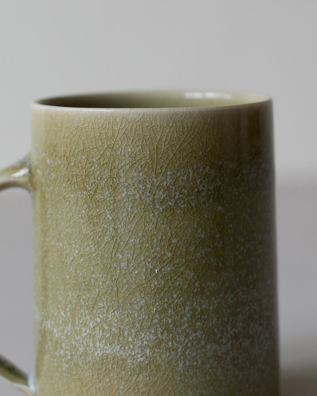 Materials - Stoneware clay with a green snowflake crackle glaze