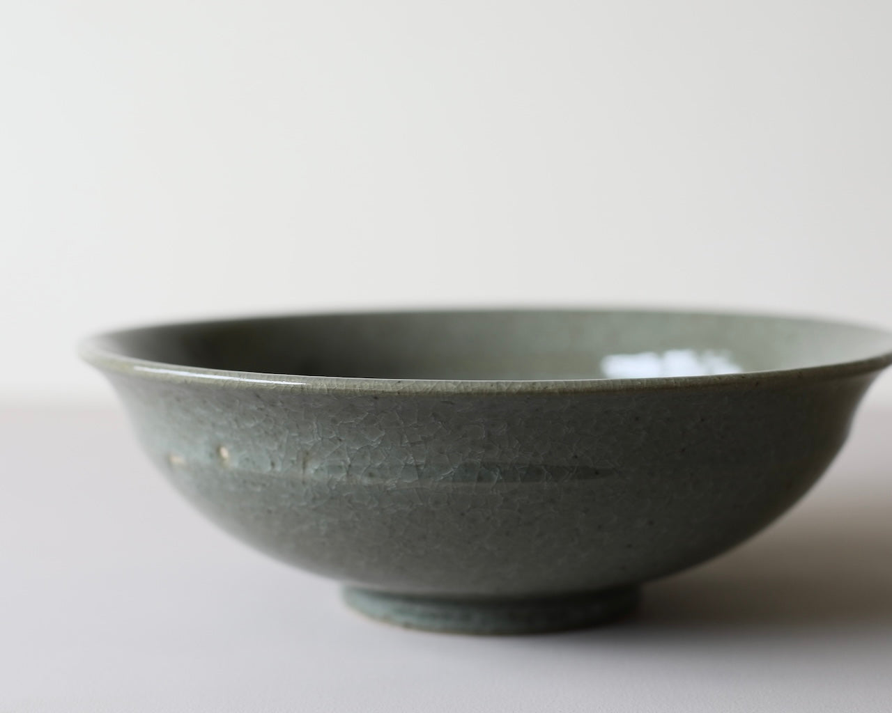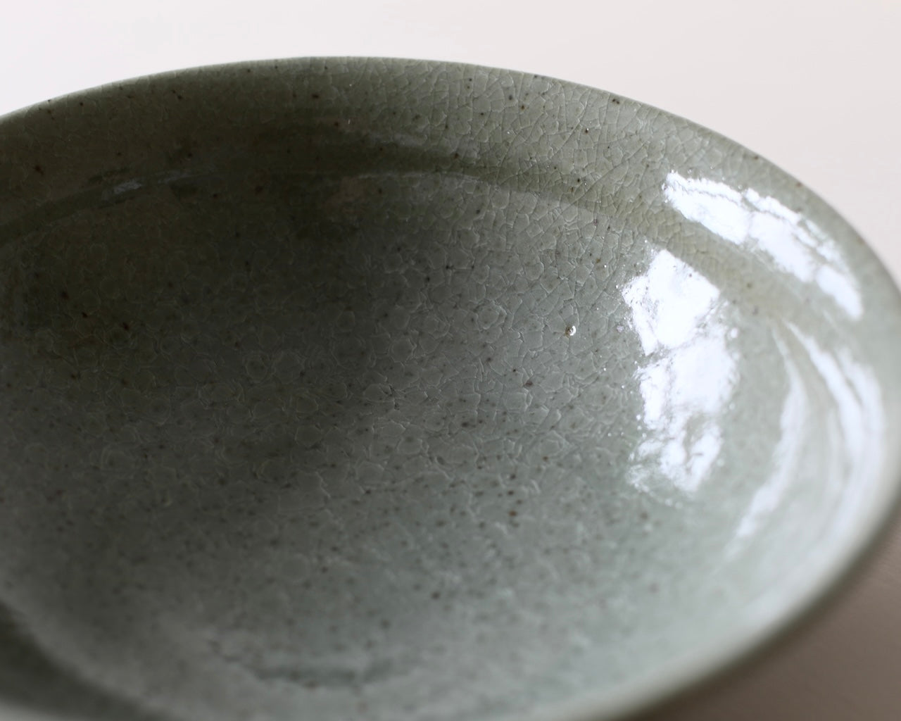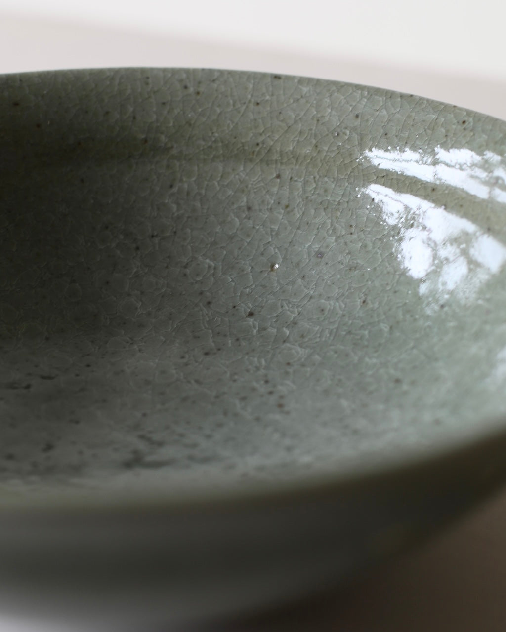 Materials - Stoneware clay with a green snowflake crackle glaze