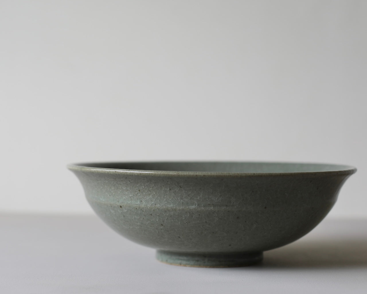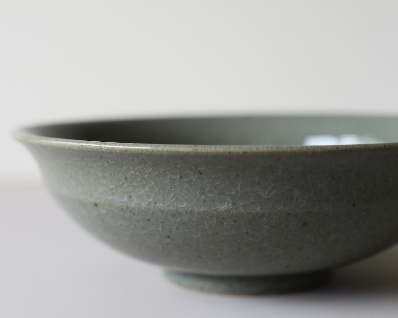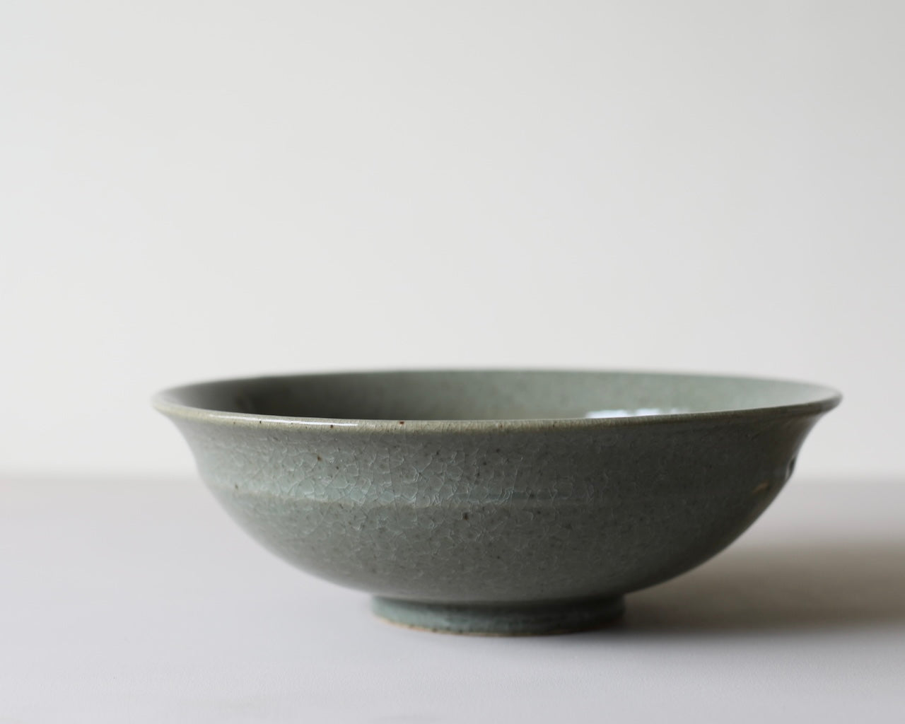 Materials - Stoneware clay with a green snowflake crackle glaze
