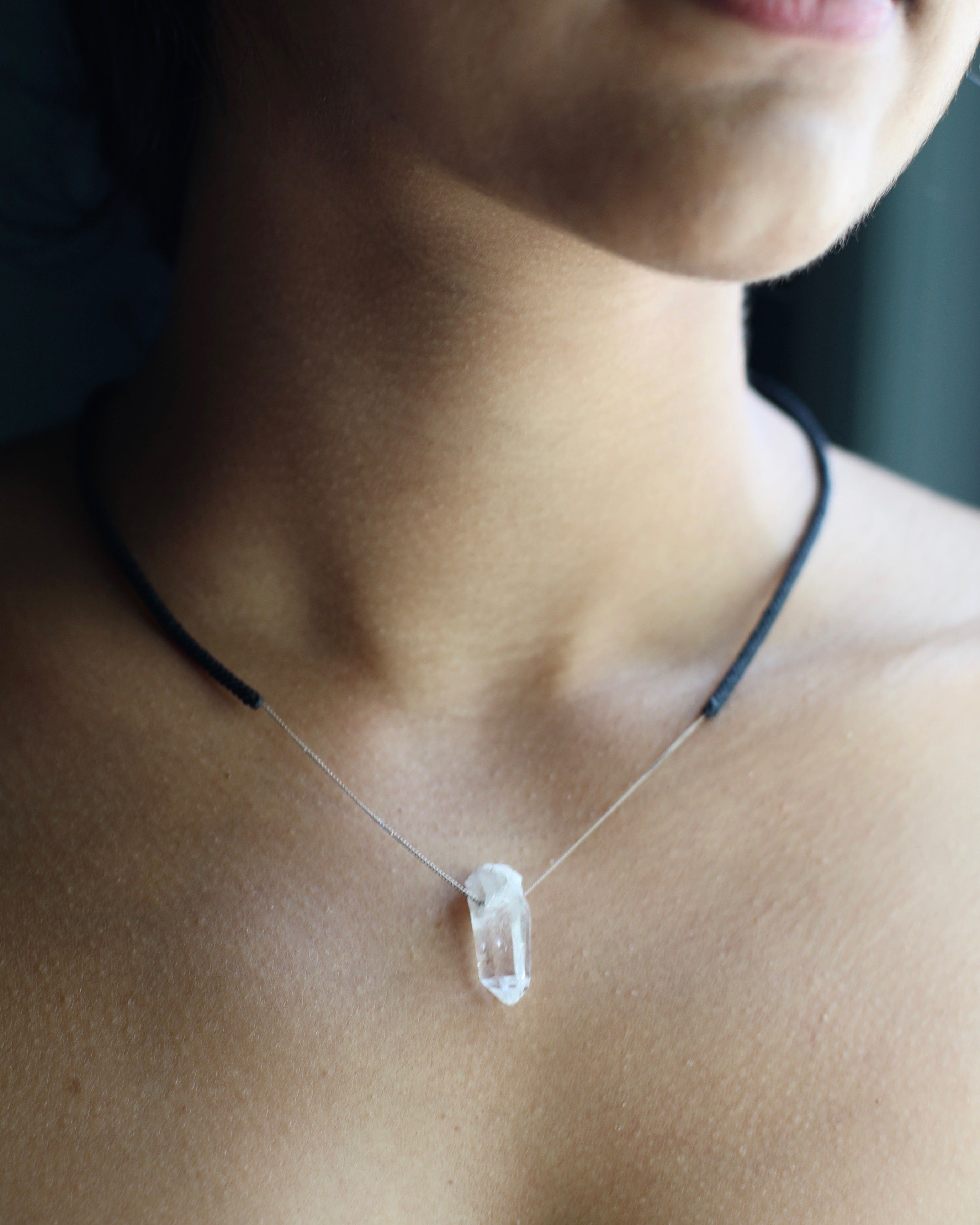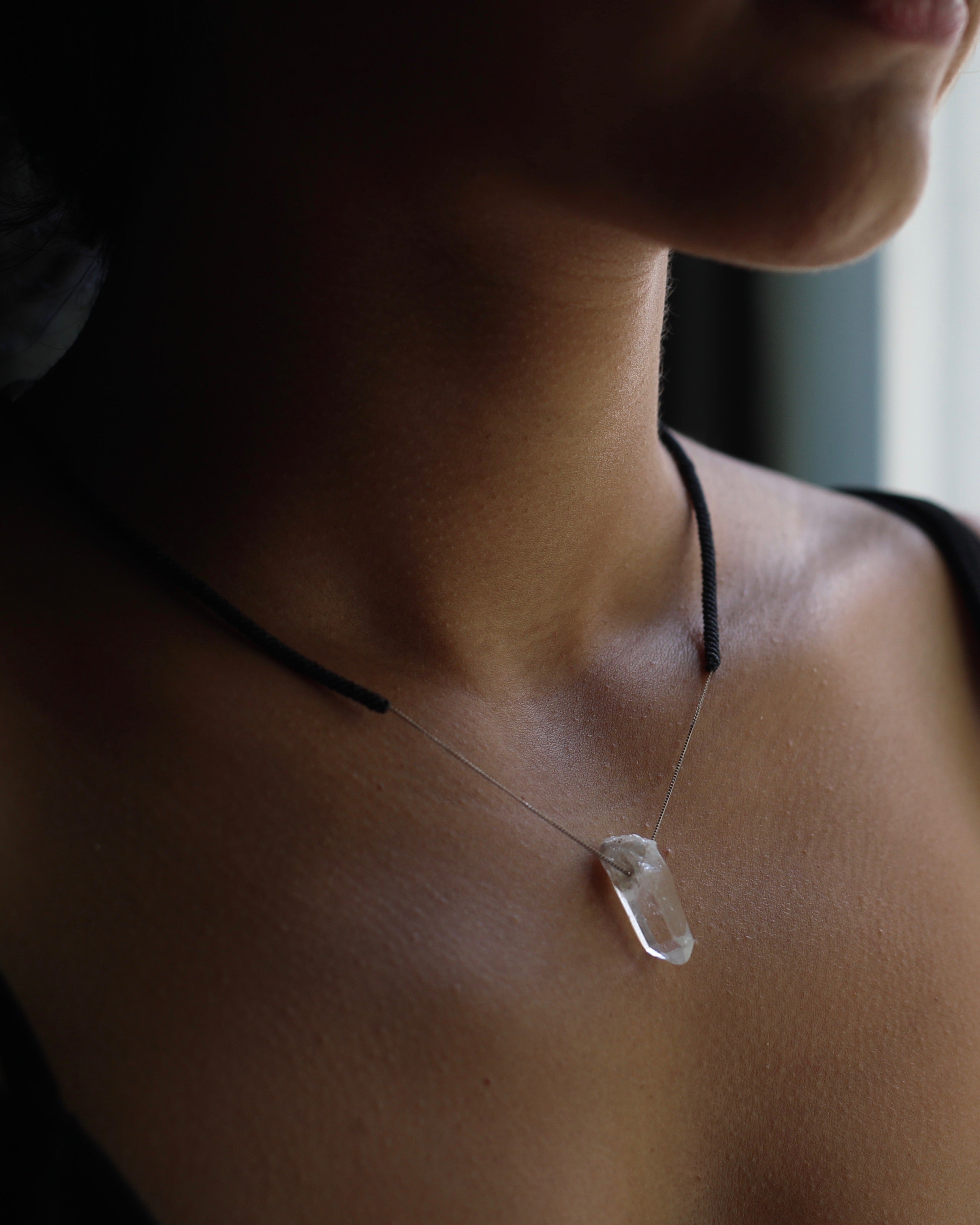 Materials: Macrame and 18K white gold, Quartz pendant