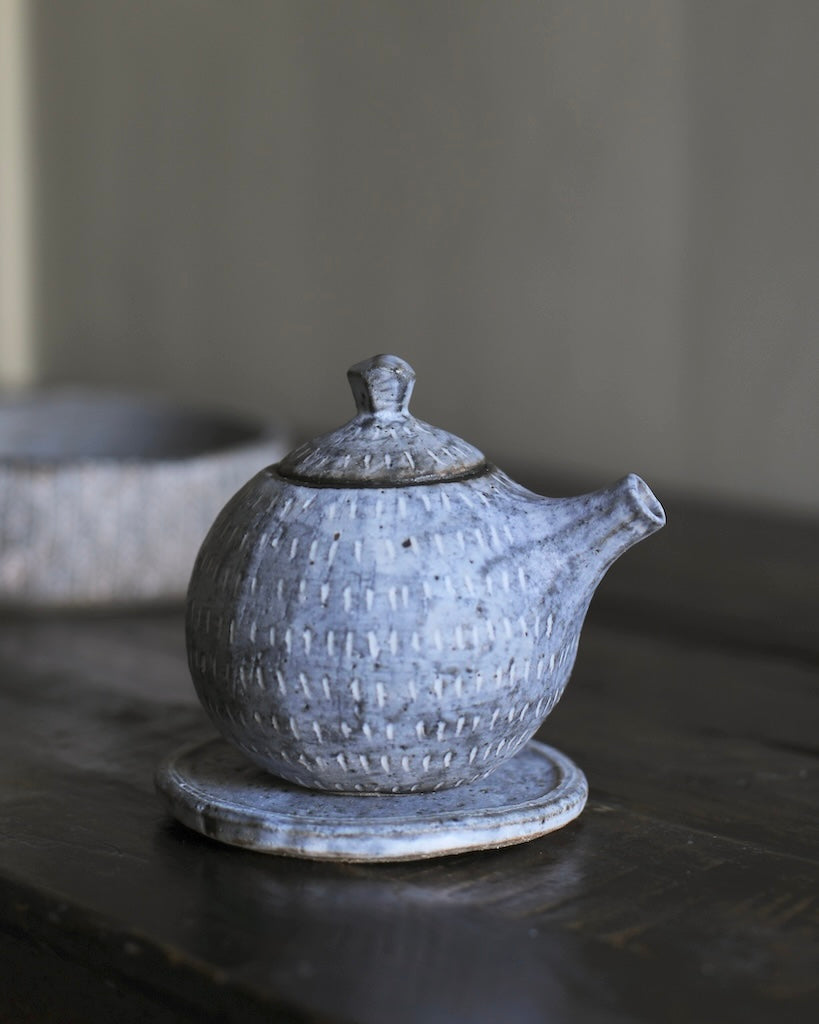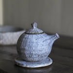 This handcrafted soy pot carries a quiet, contemplative beauty. The rounded body feels balanced in the hands, while the gently tapered spout allows for smooth, deliberate pouring. The artists signature hand-painted surface, and subtle variation in glaze and form speaks to the maker’s touch, ensuring no two pieces are exactly alike.